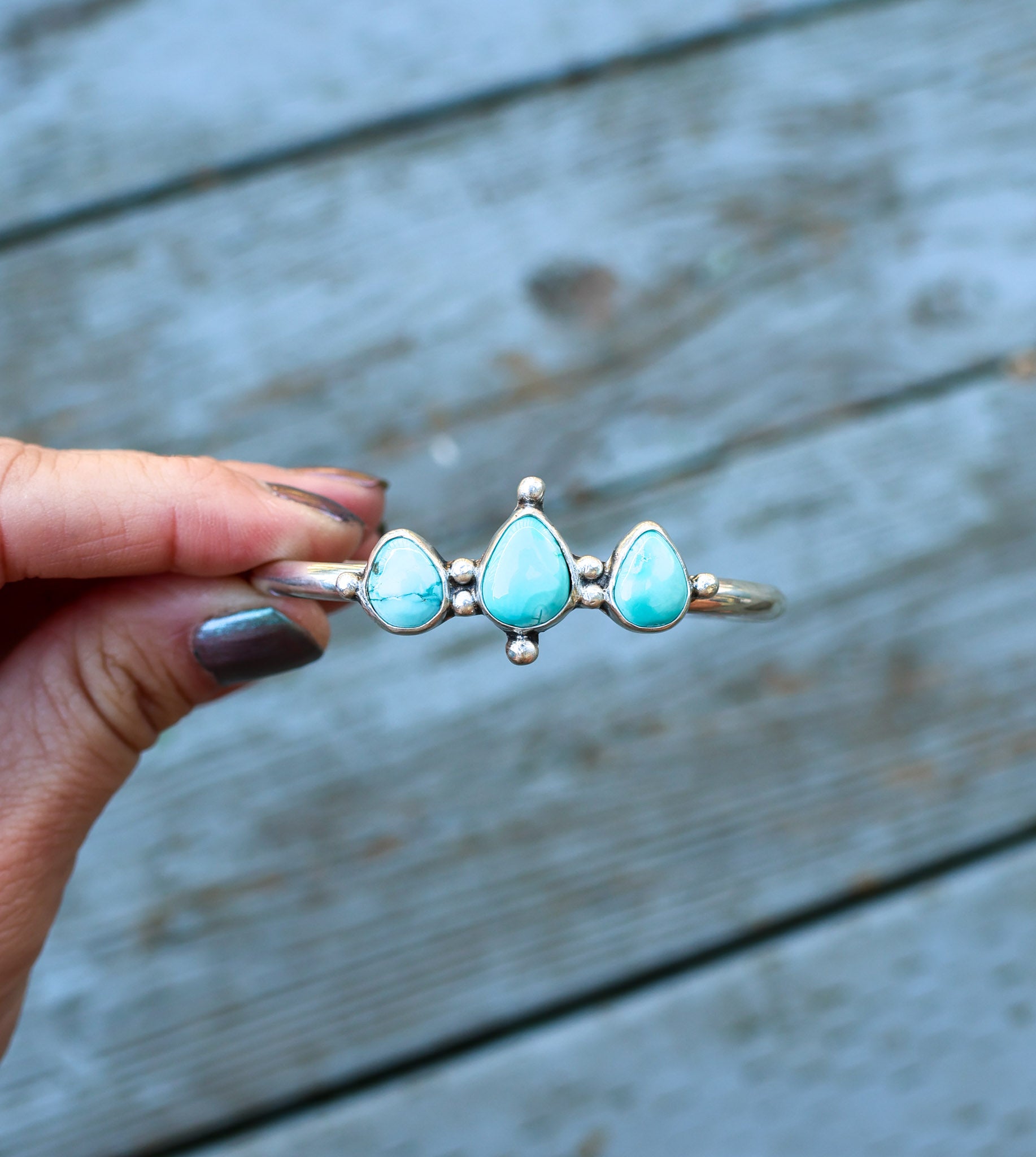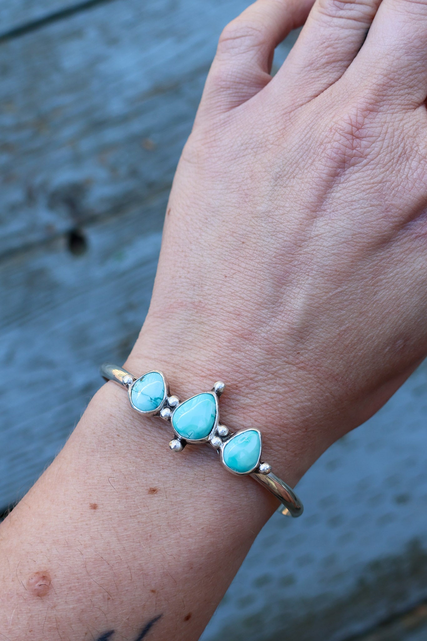Made from 925 Sterling Silver and a 6 gauge thick sterling silver band. This cuff is a size medium , measuring 5.5” with a 1.5” gap. This will fit an ‘average’ typical women’s wrist size, and is slightly adjustable for a comfort fit.
