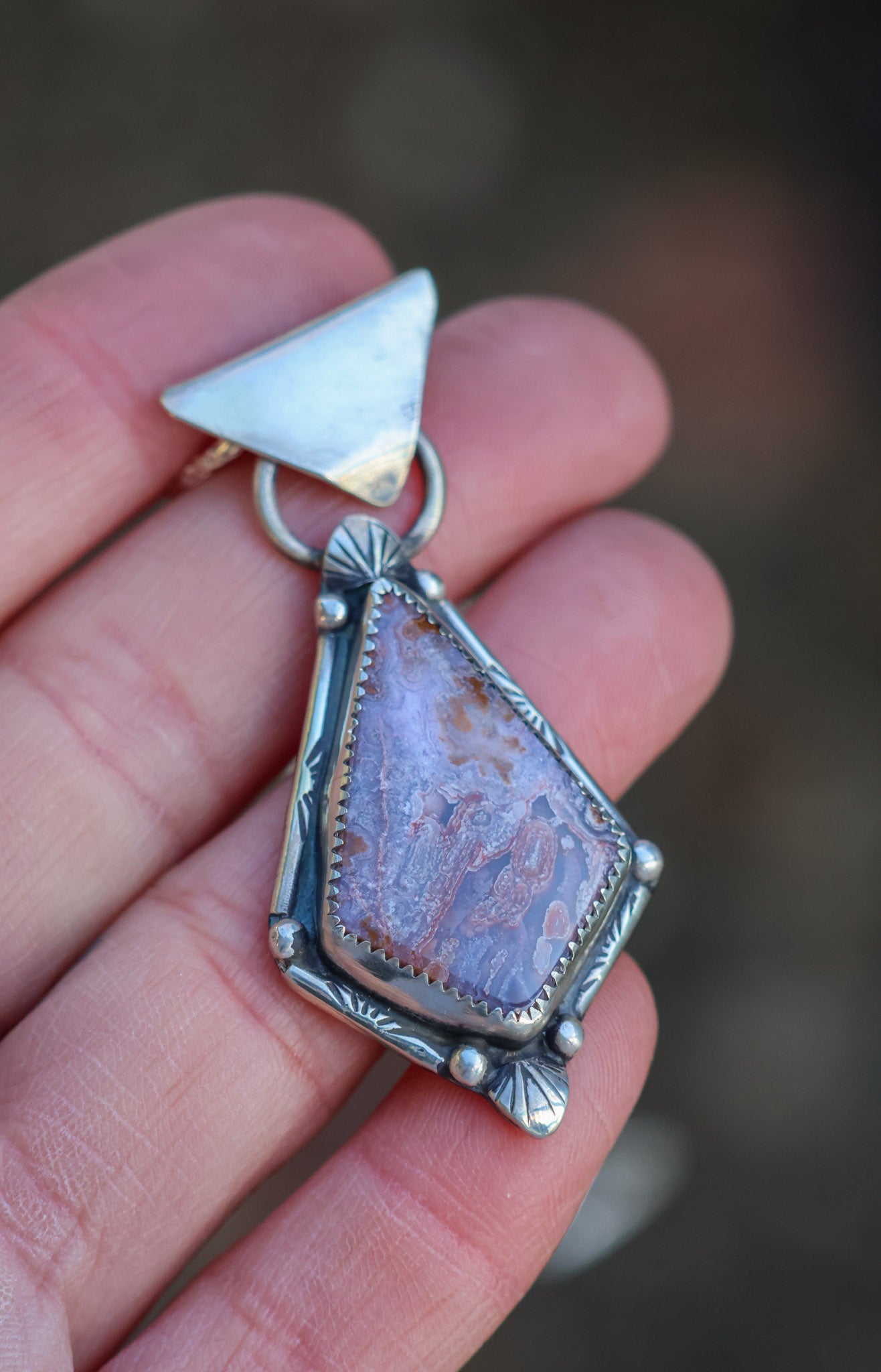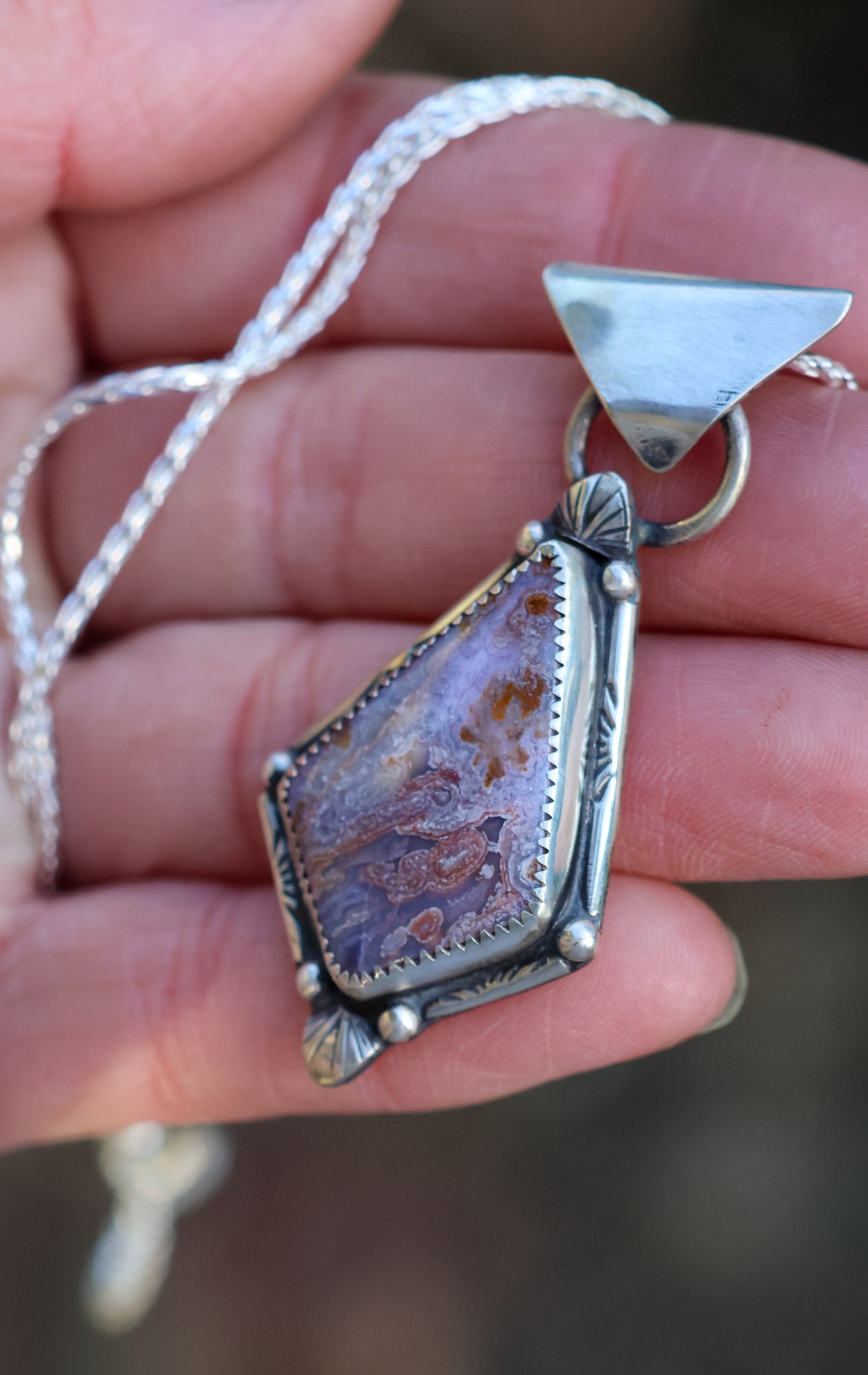 Handmade from sterling silver sheet and wire using traditional silversmithing methods. Products are not perfect, you may see a tool mark, and solder lines here and there, but that is what gives each piece its own unique charm.