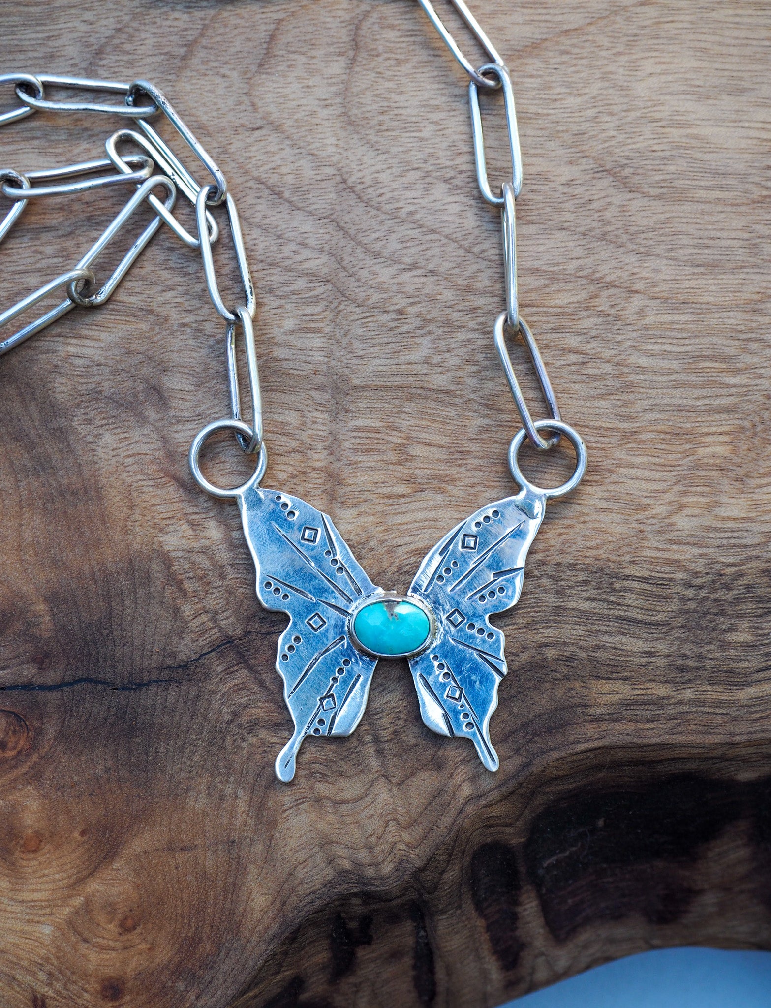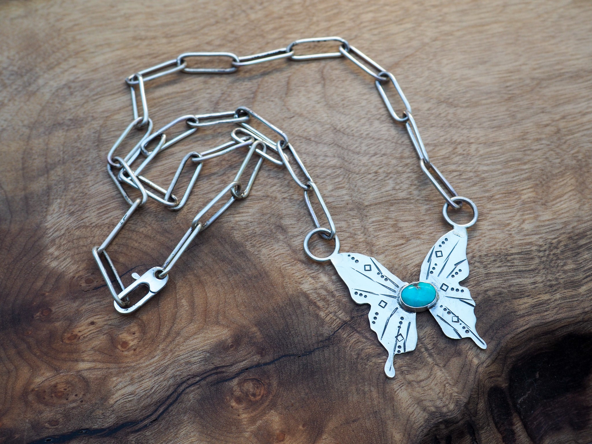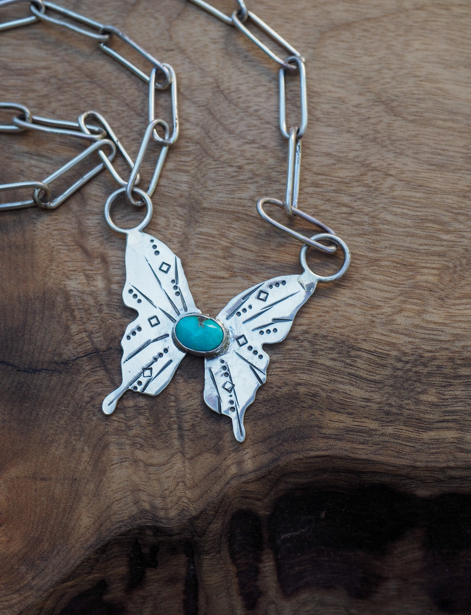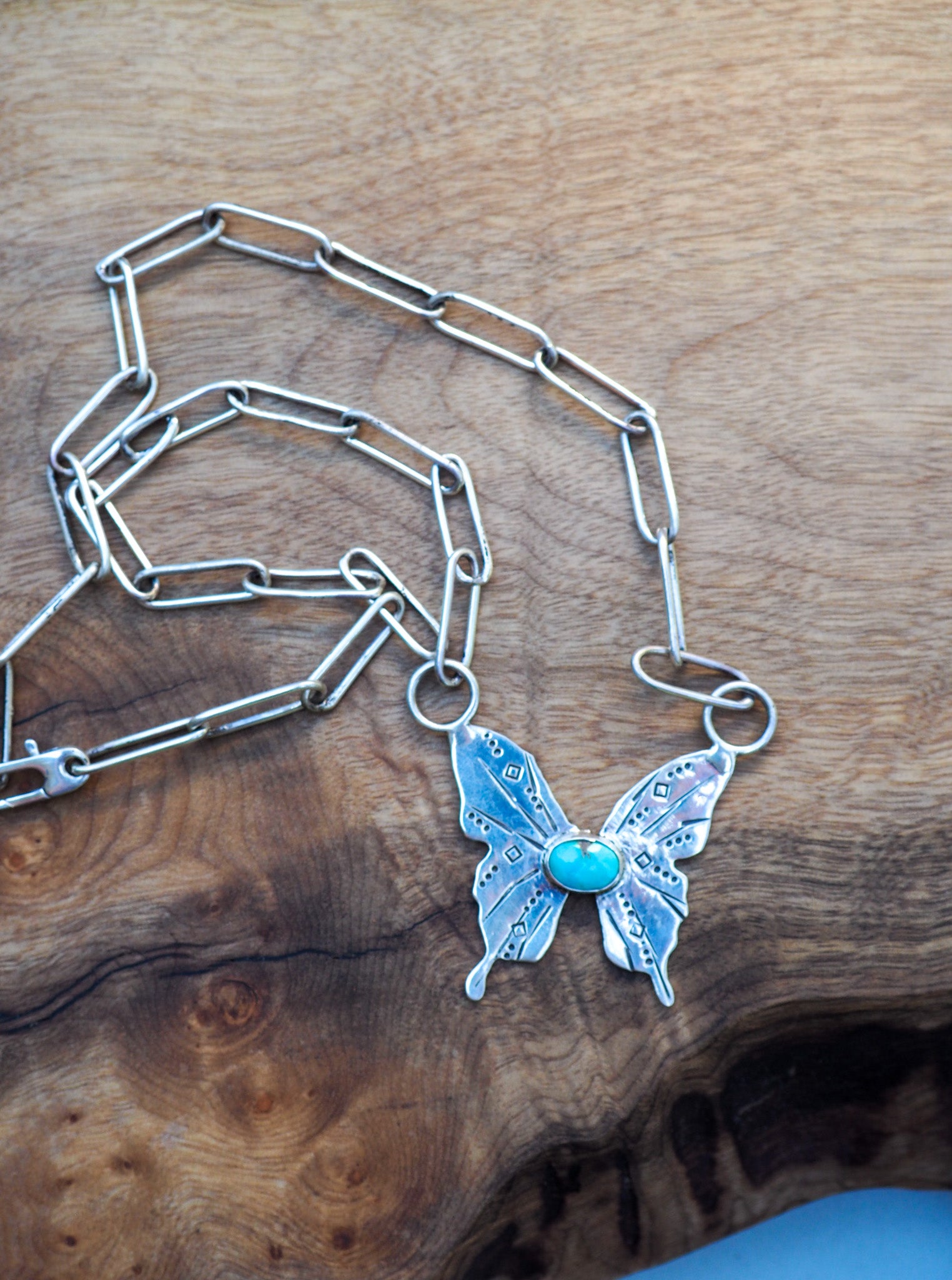 Turquoise Butterfly | Paperclip Chain| Necklace | 19 Inches