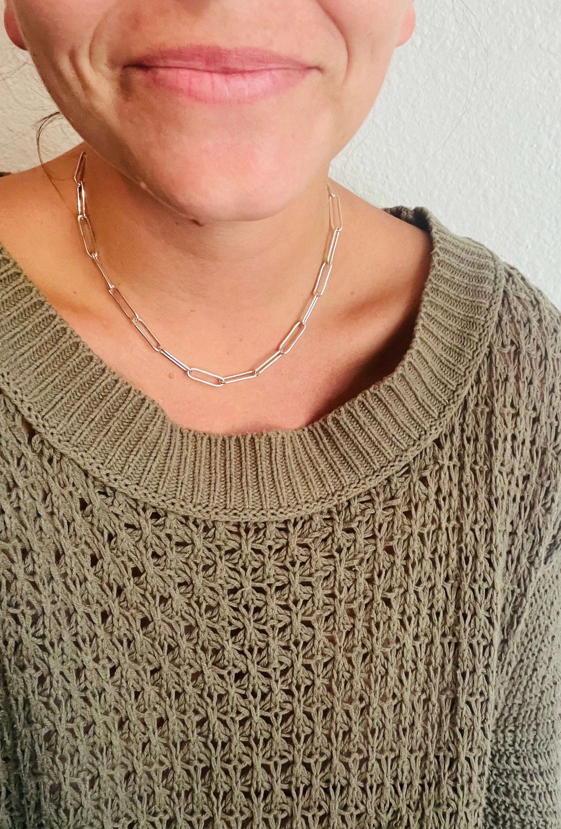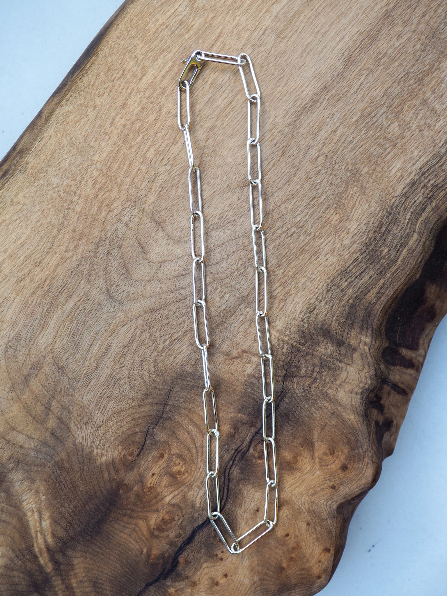 Paperclip chain is completely hand fabricated by me, with a dark patina and a matte finish.