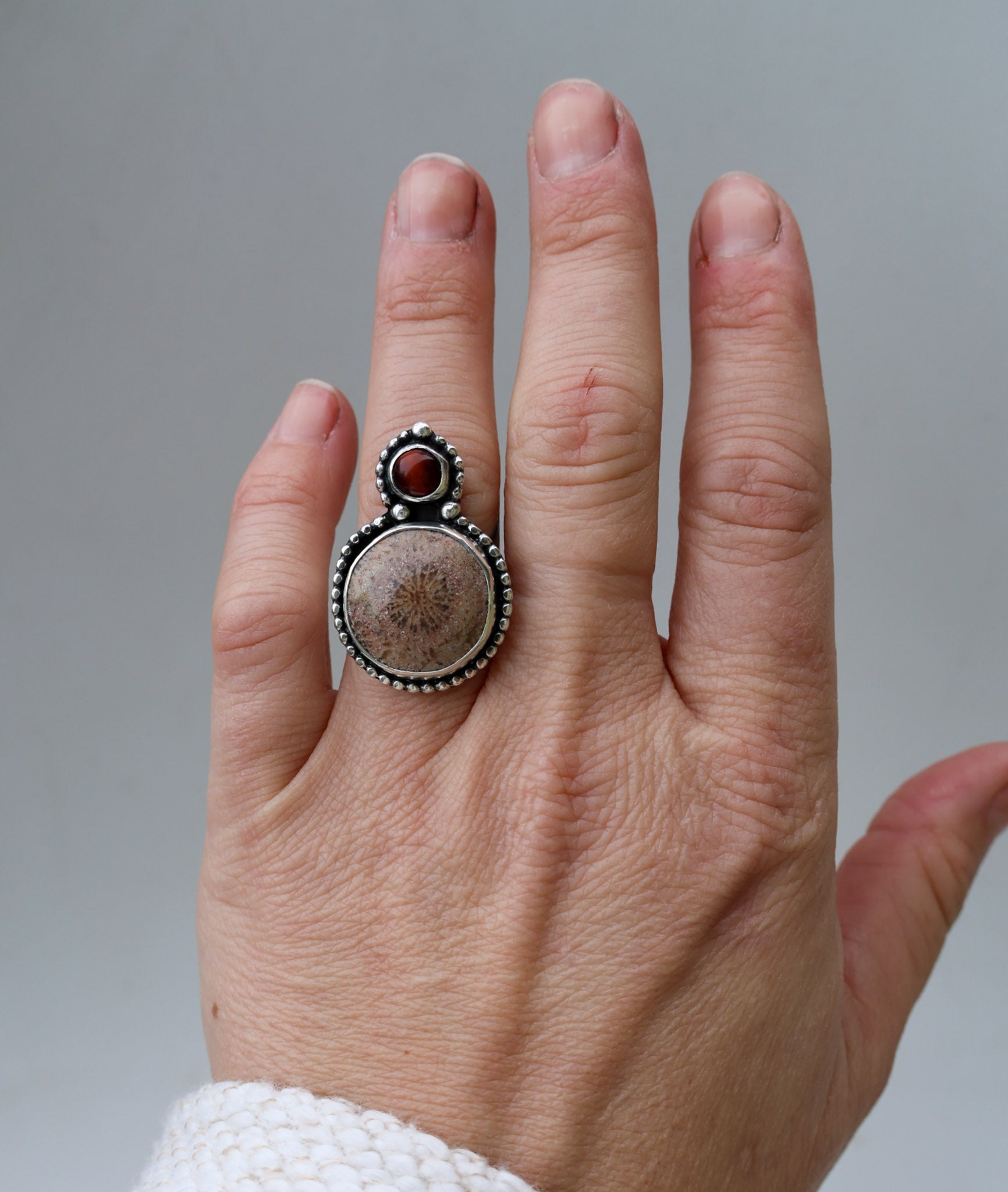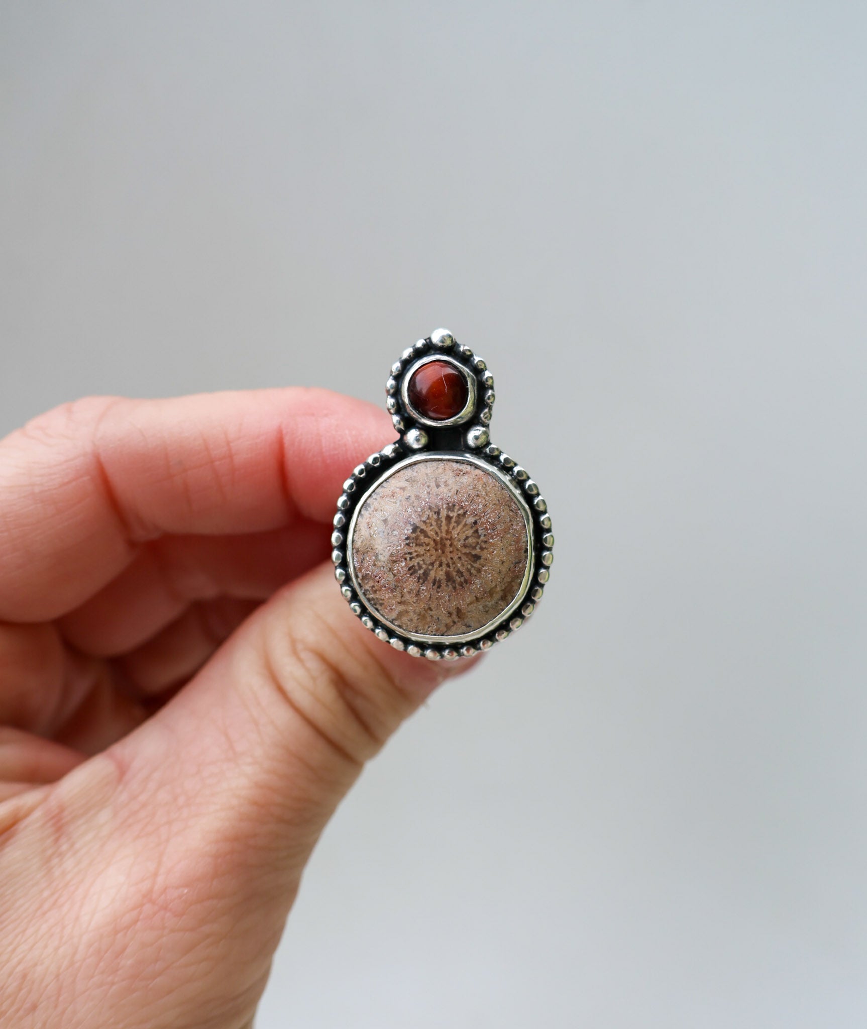 Made with a Coral Fossil, Tigers Eye & Sterling Silver
