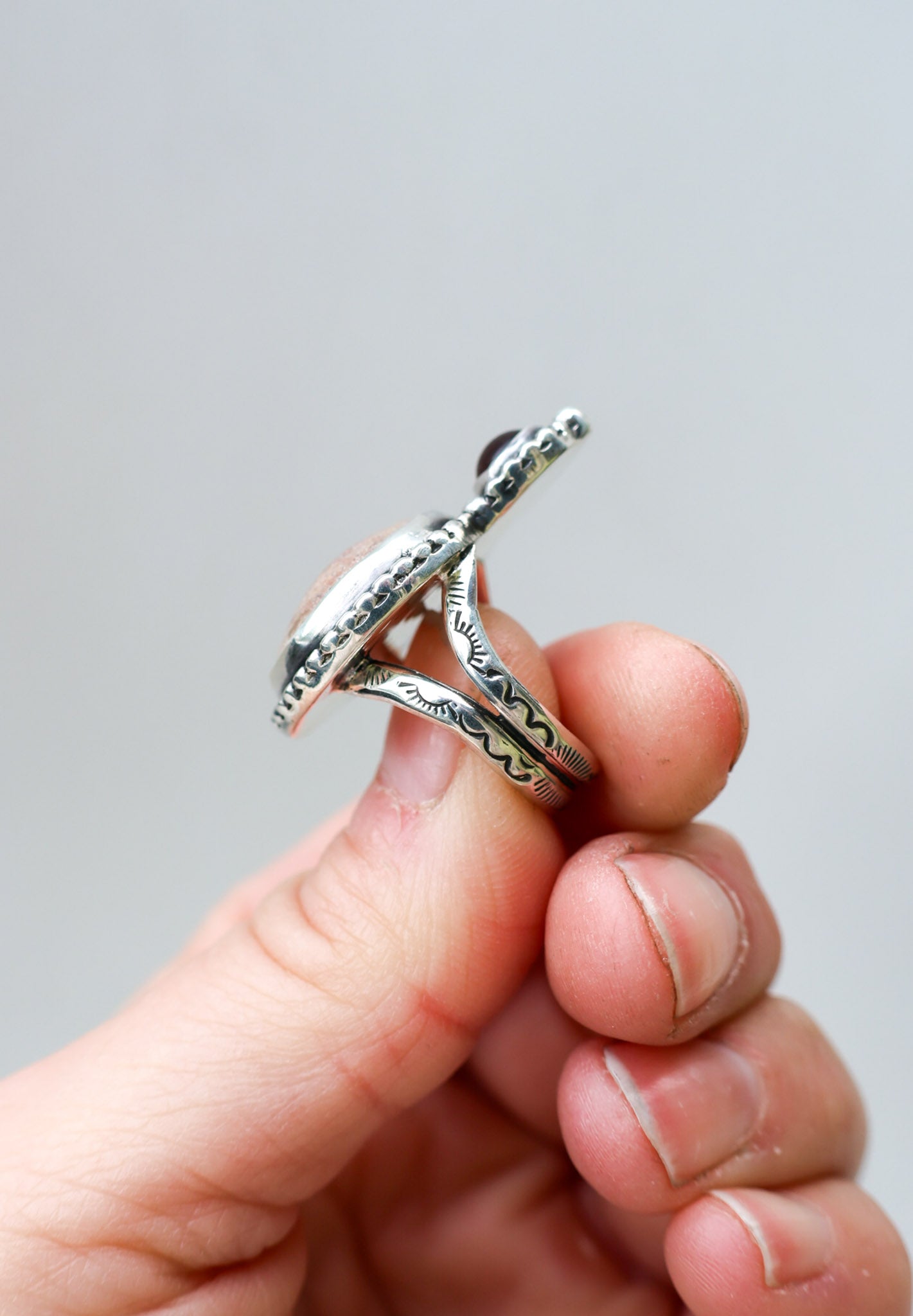 Handmade from sterling silver sheet and wire using traditional silversmithing methods. Products are not perfect, you may see a tool mark, and solder lines here and there, but that is what gives each piece its own unique charm.