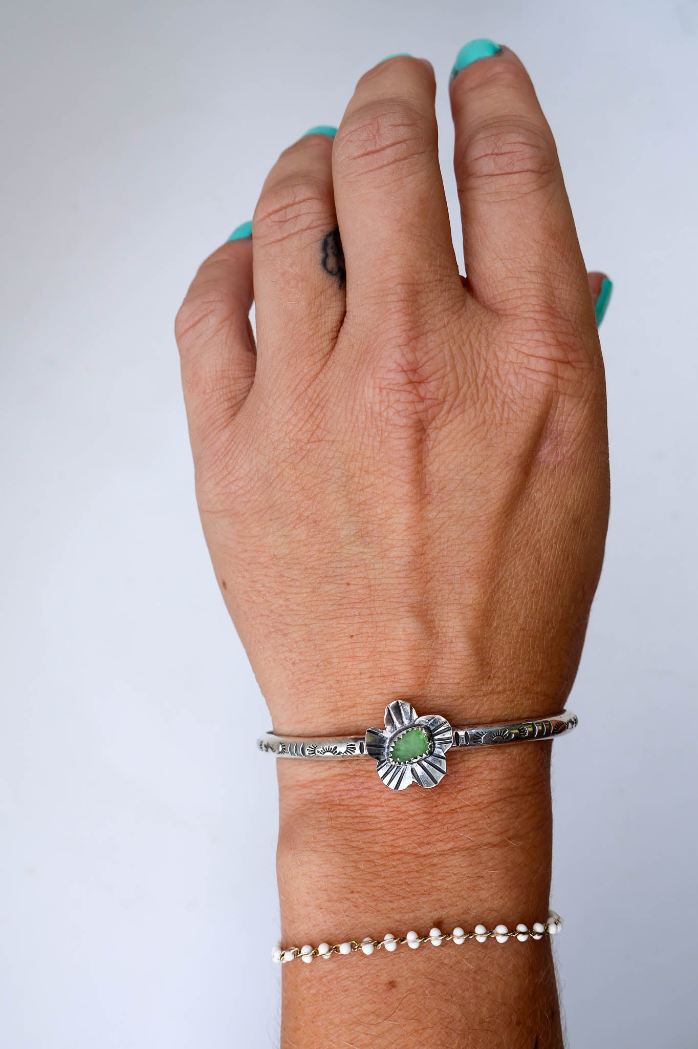 Handmade from sterling silver sheet and wire using traditional silversmithing methods. Products are not perfect, you may see a tool mark, and solder lines here and there, but that is what gives each piece its own unique charm.