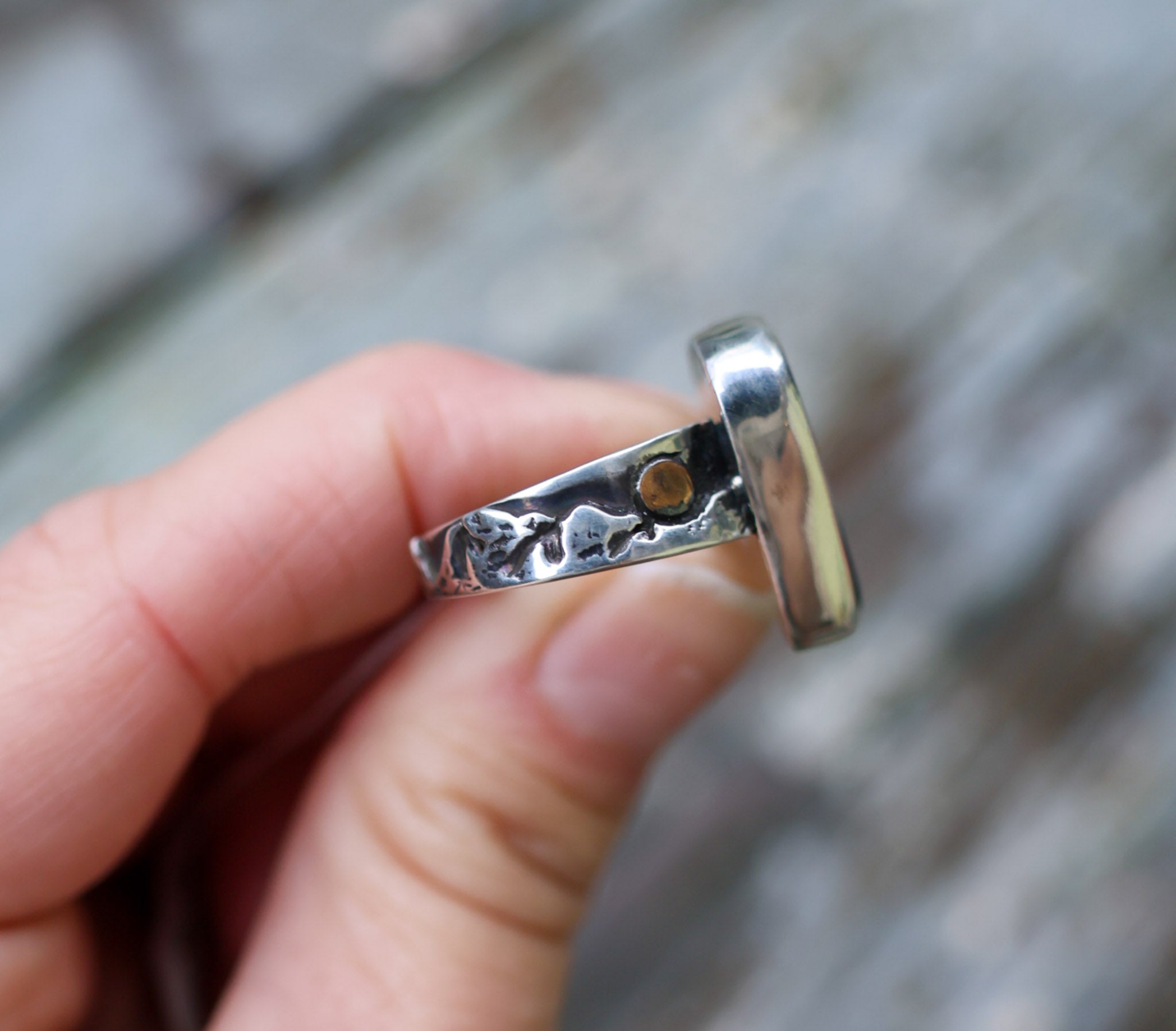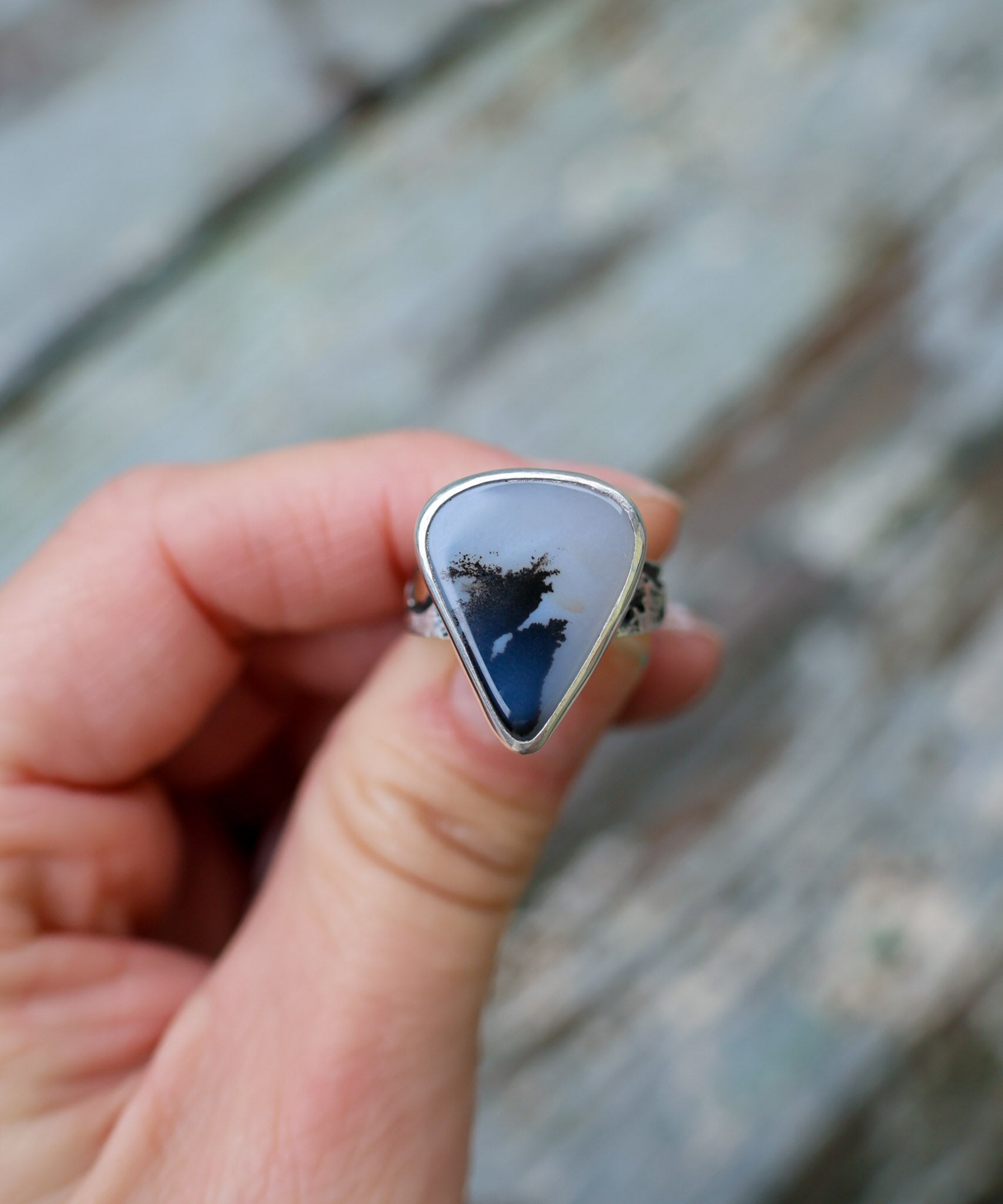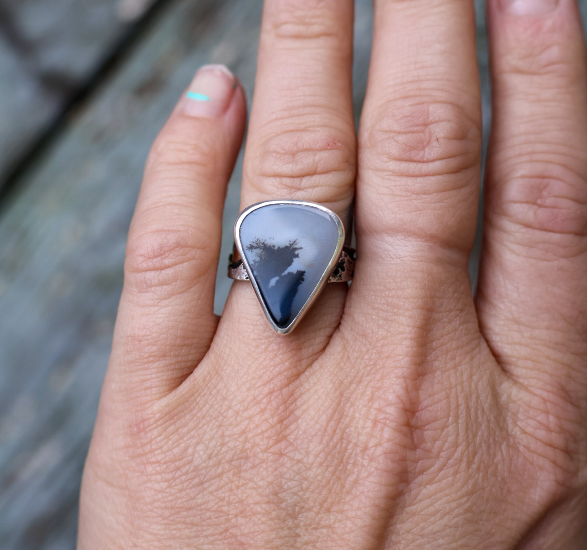 Dendritic Agate| Mountain Band Ring| Size 6.5
