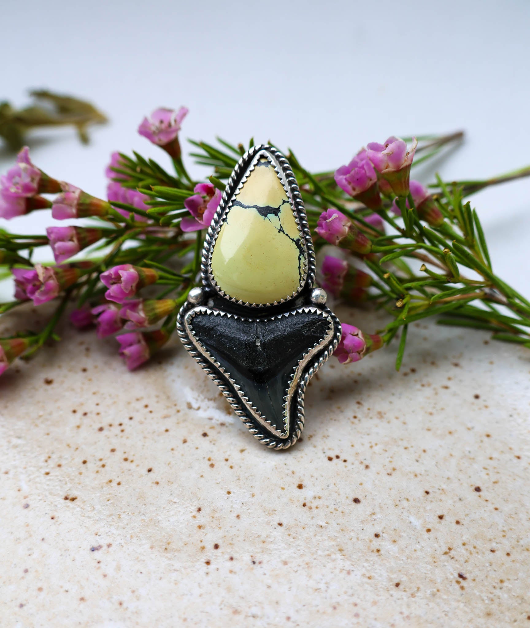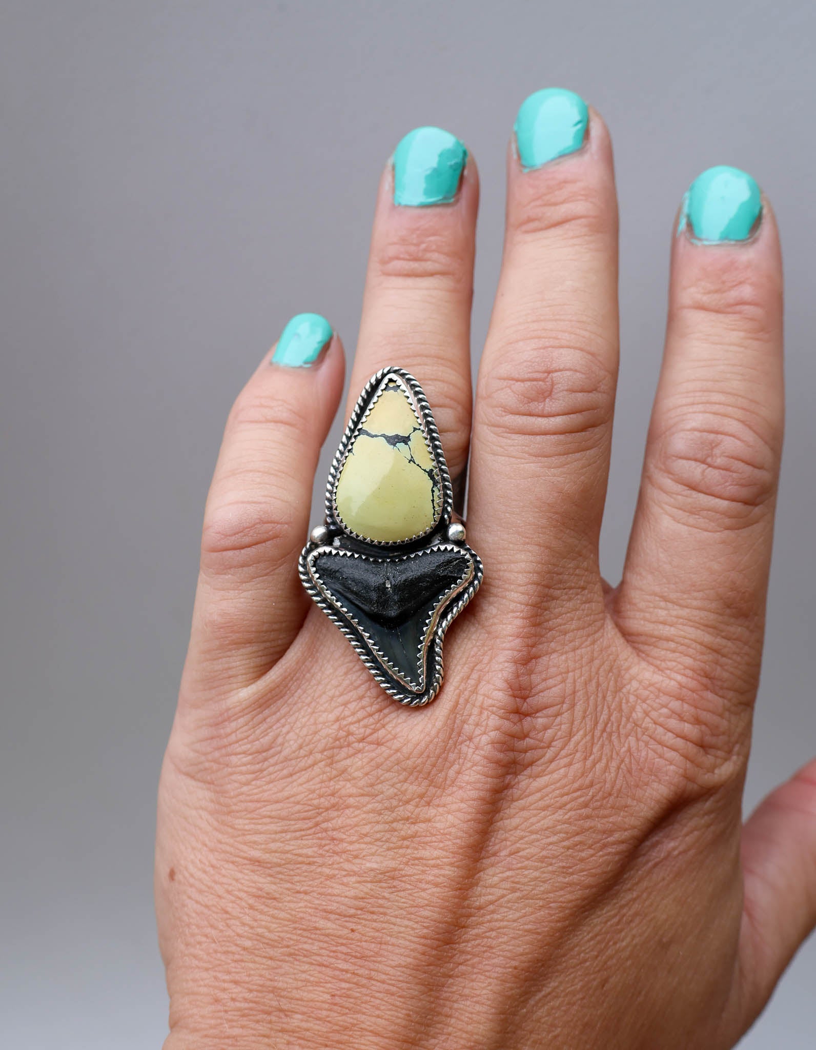 Made with a Cloud Mountain Turquoise, Real Shark Tooth  & Sterling Silver