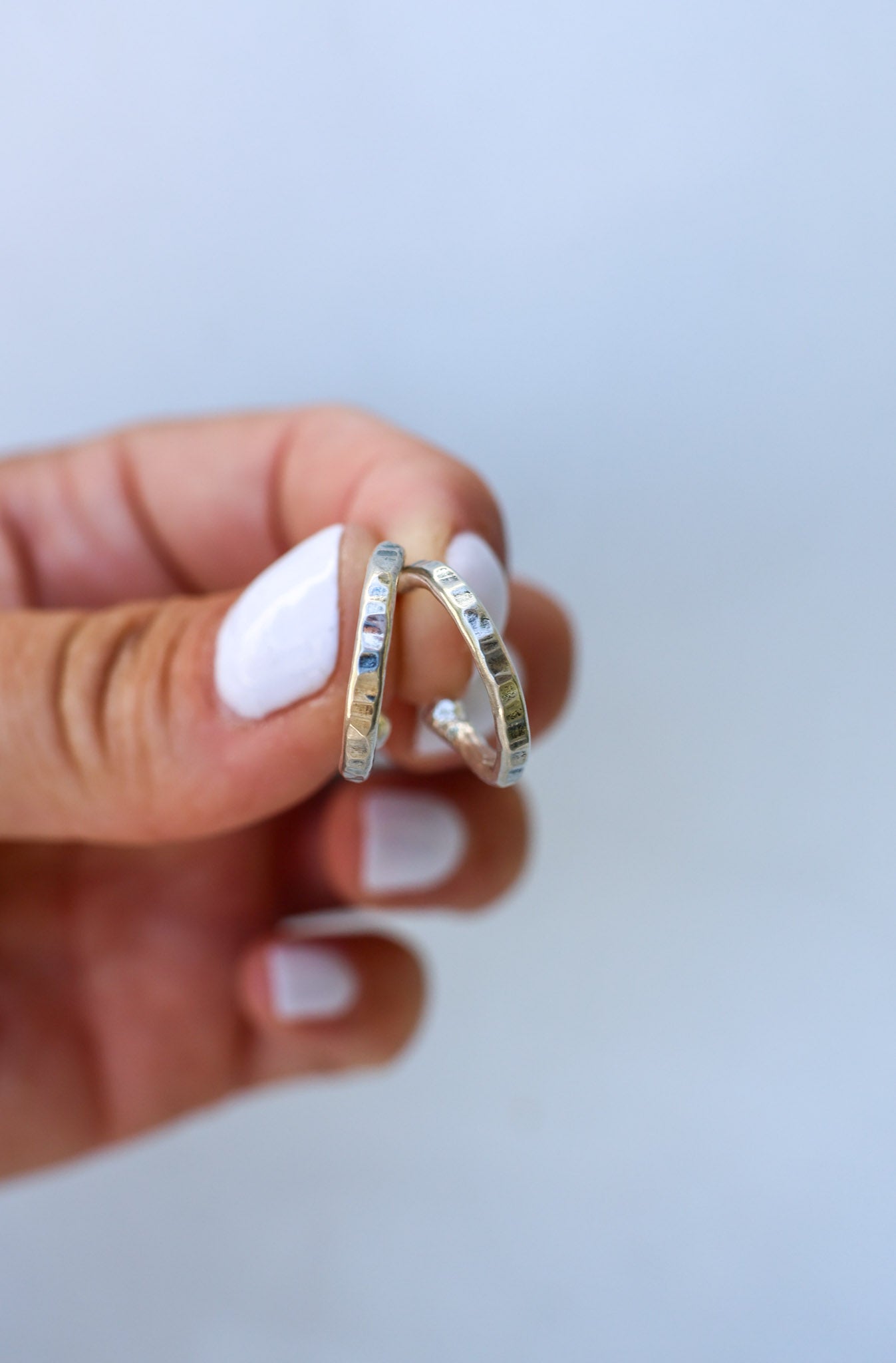 Handmade from sterling silver sheet and wire using traditional silversmithing methods. Products are not perfect, you may see a tool mark, and solder lines here and there, but that is what gives each piece its own unique charm.