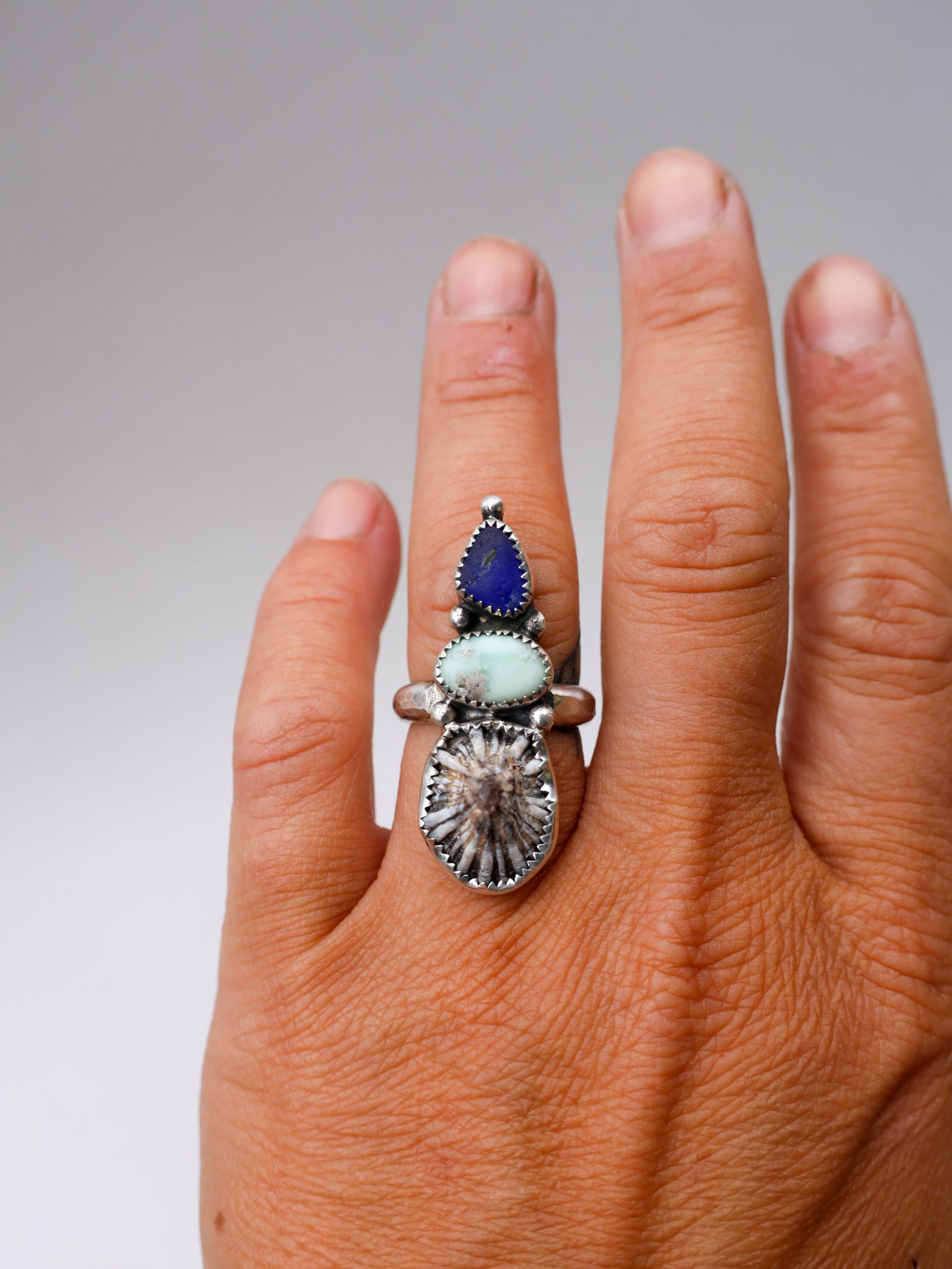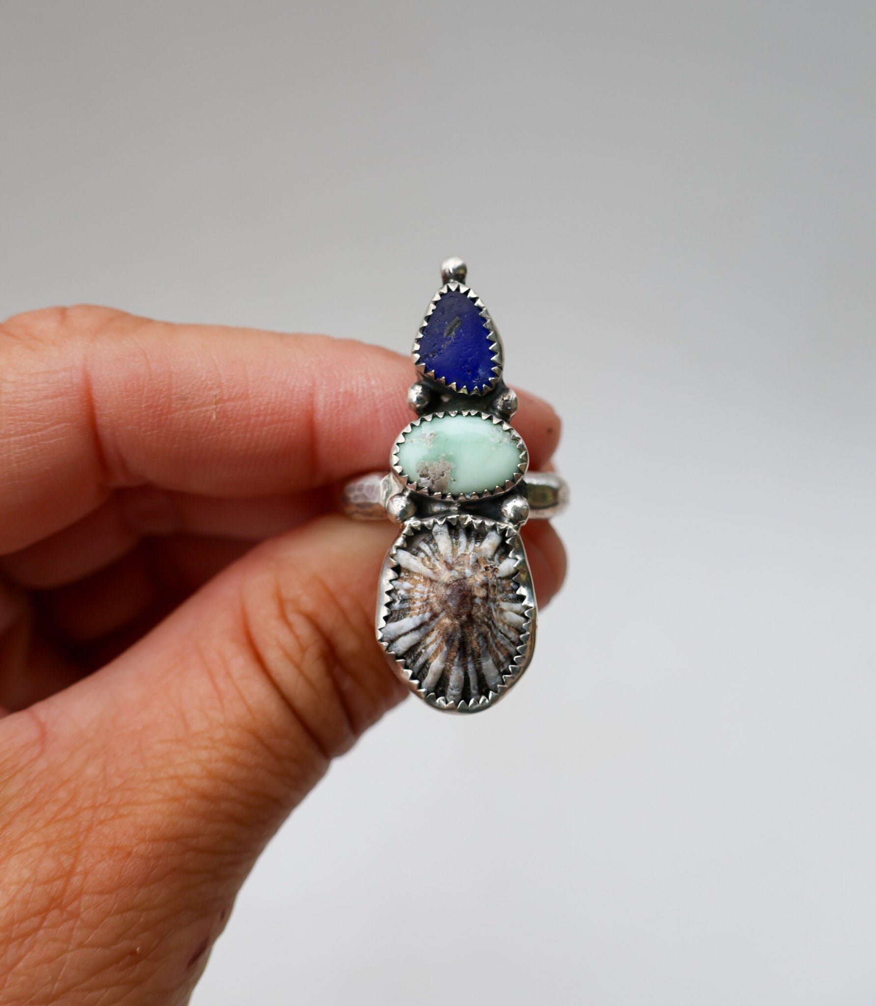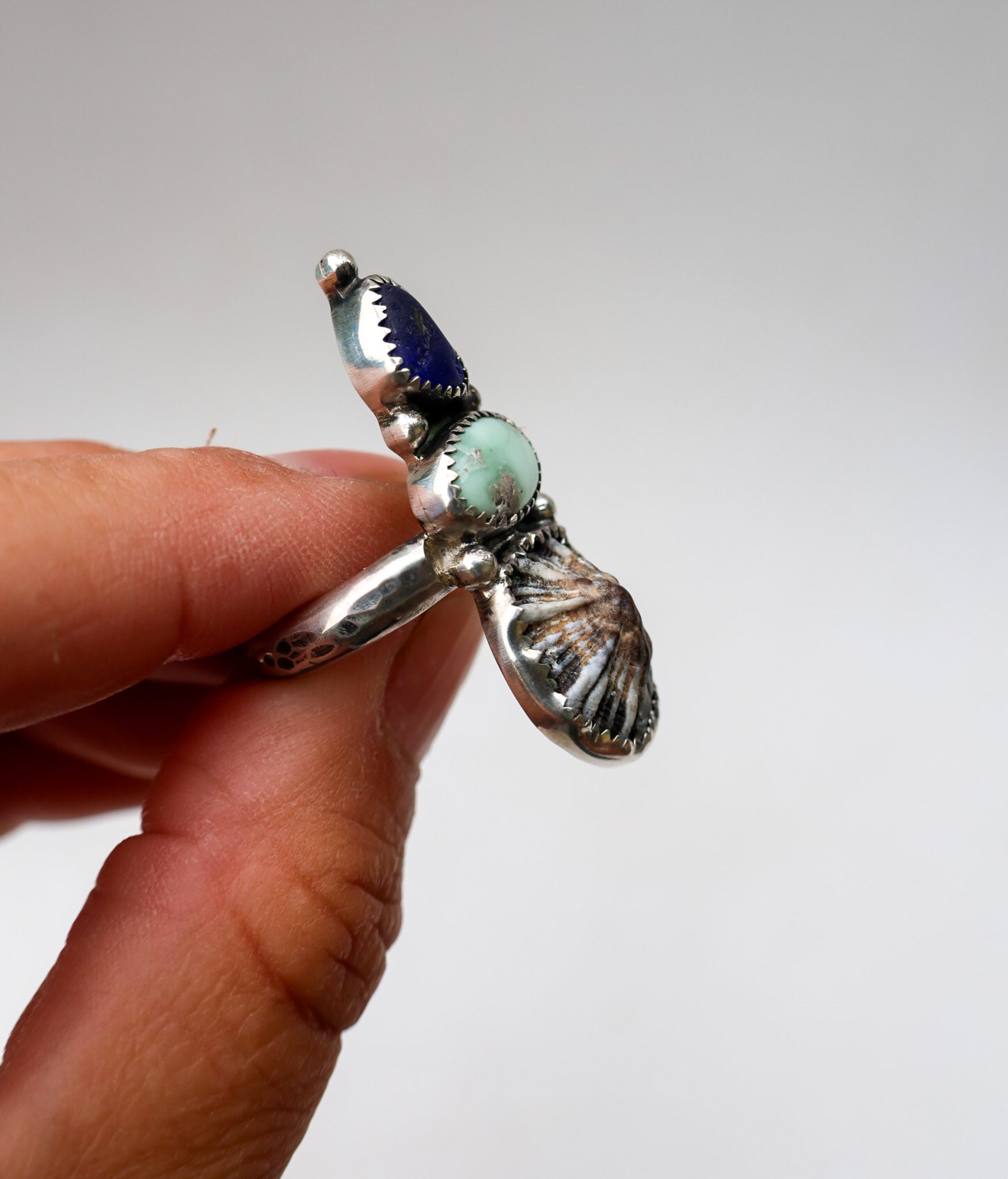 Handmade from sterling silver sheet and wire using traditional silversmithing methods. Products are not perfect, you may see a tool mark, and solder lines here and there, but that is what gives each piece its own unique charm.