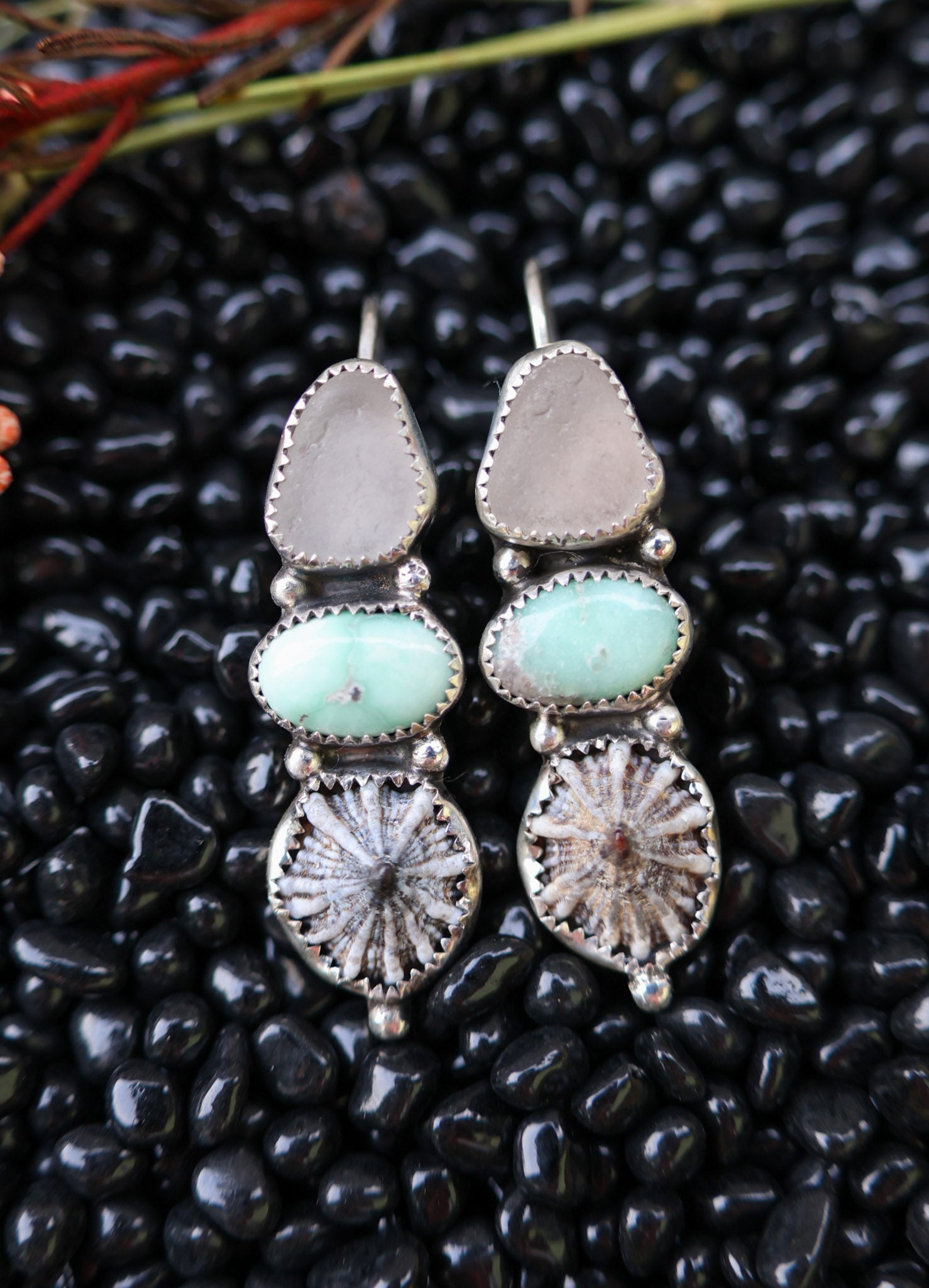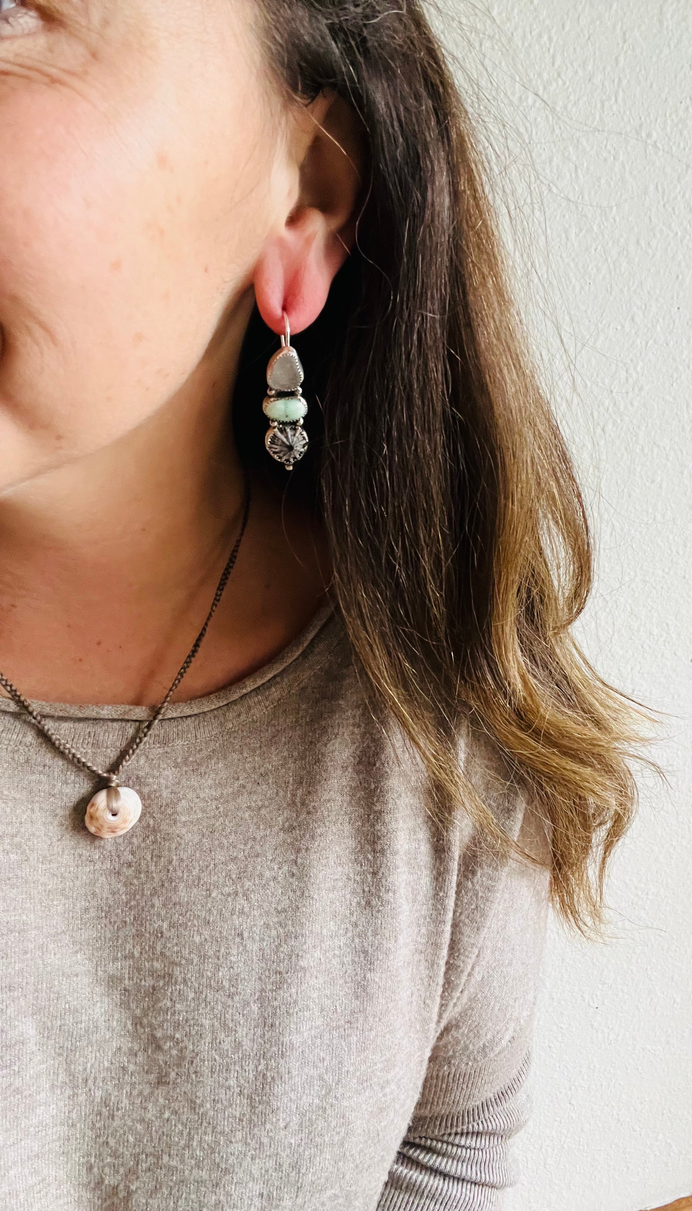 Made with Sea Glass, Turquoise, Real shell from Kauai & Sterling Silver