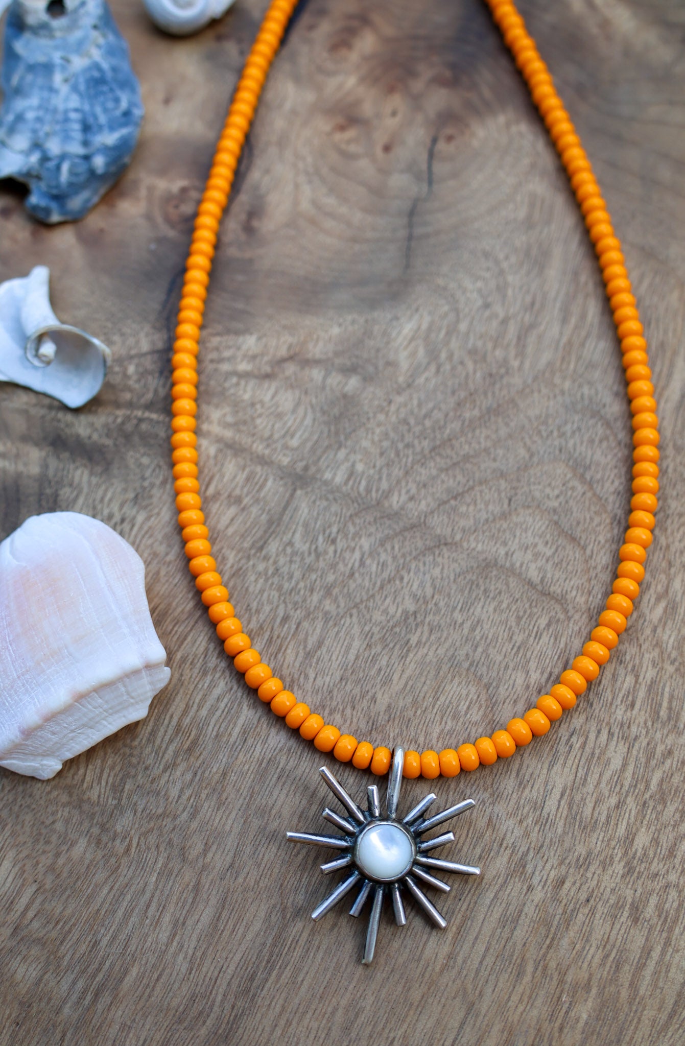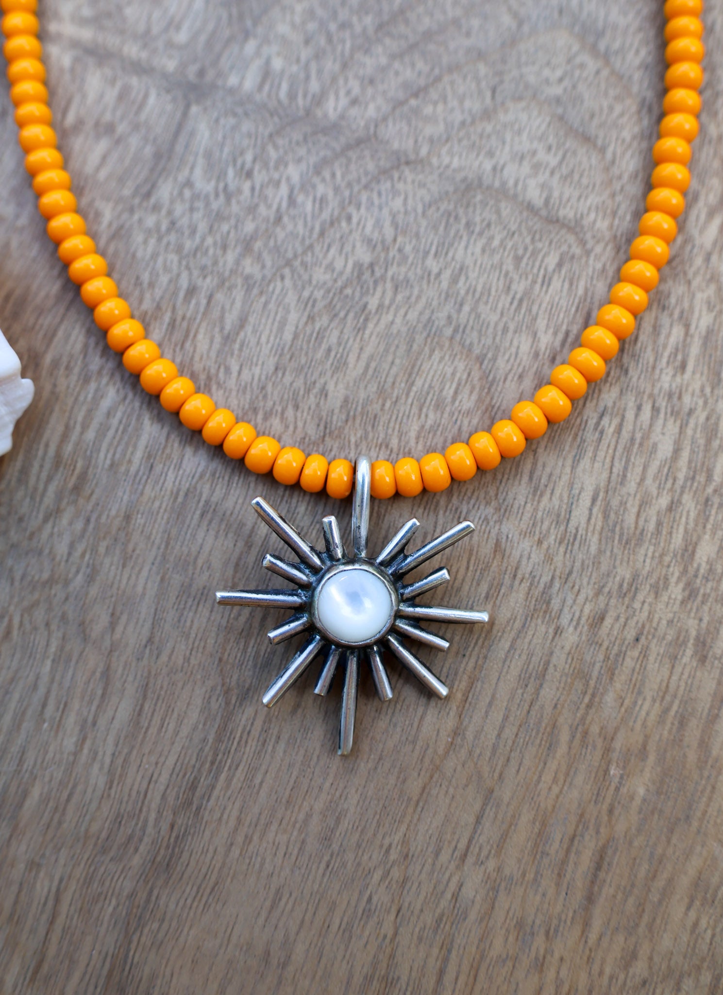 Beaded Necklace 9 | Mother of Pearl Sun | 17 inches