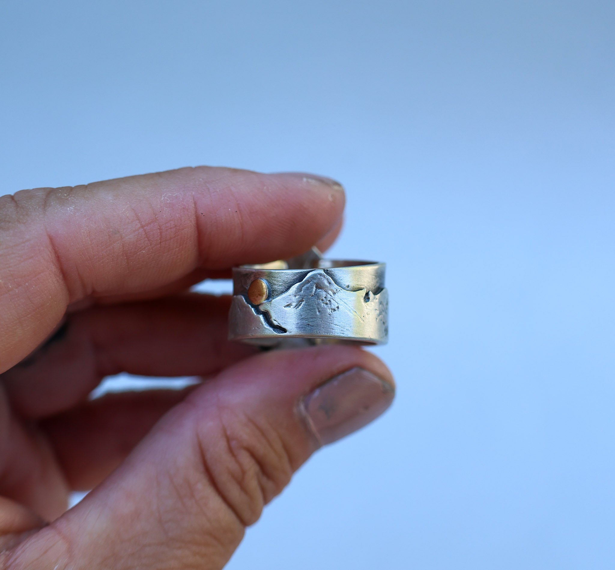 Handmade from sterling silver sheet and wire using traditional silversmithing methods. Products are not perfect, you may see a tool mark, and solder lines here and there, but that is what gives each piece its own unique charm.