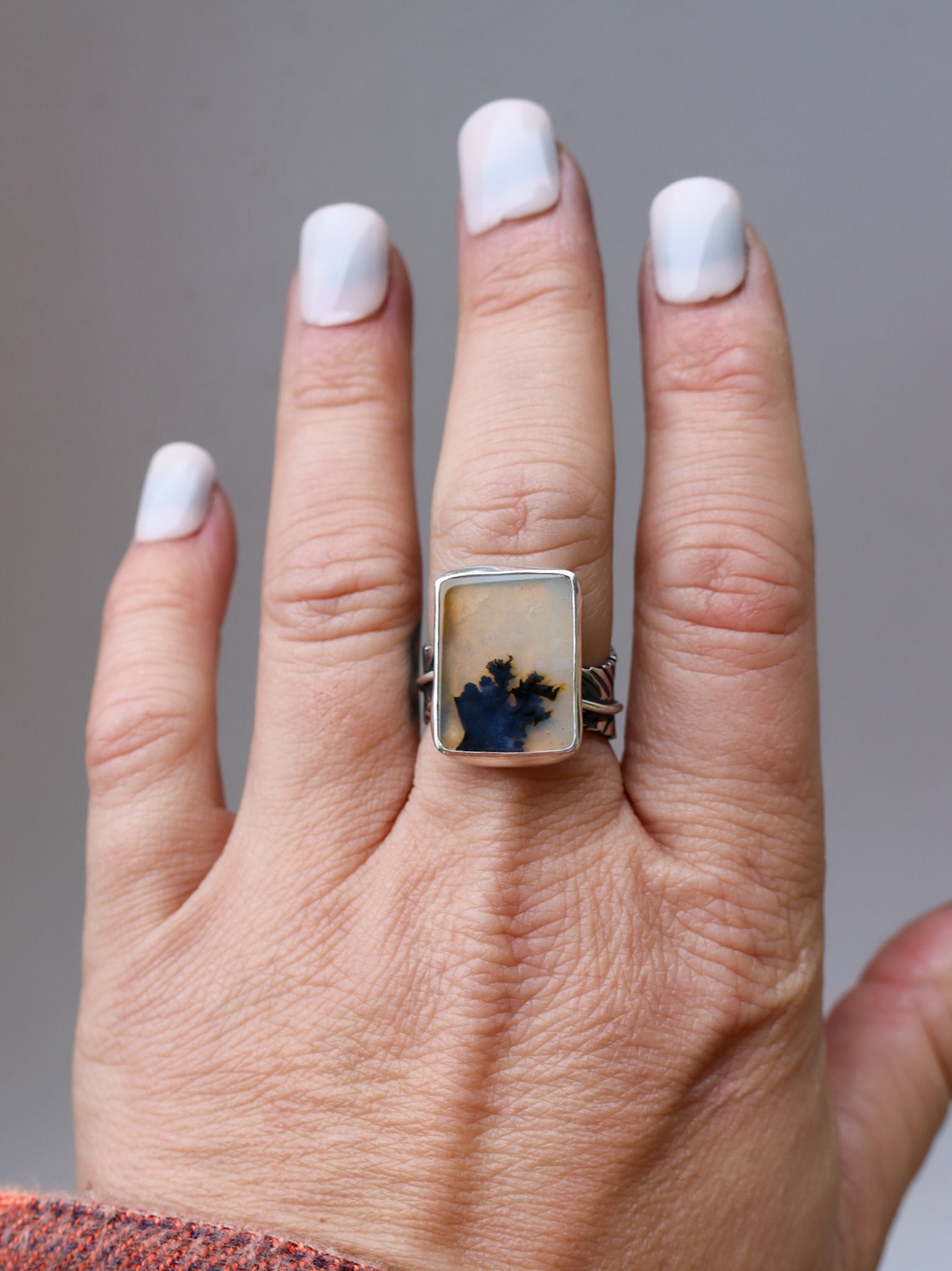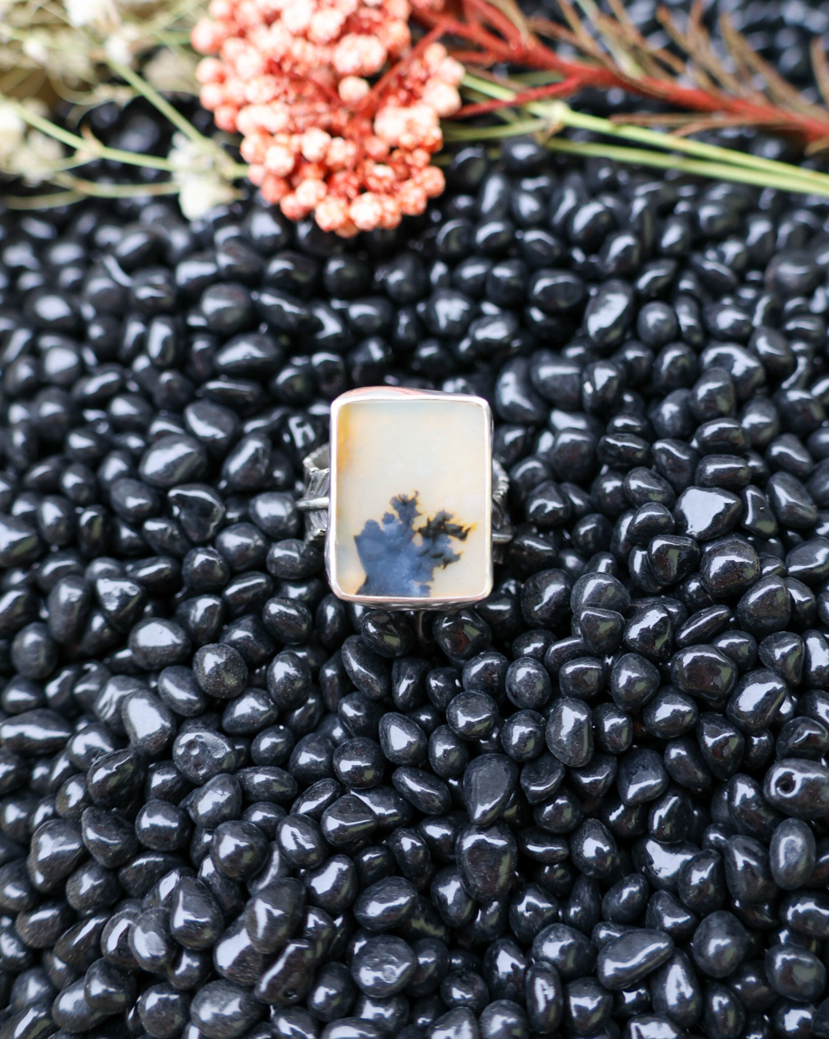 Dendritic Agate | Leaf Ring #1 | Size 7.5 (fits more like 7.25)