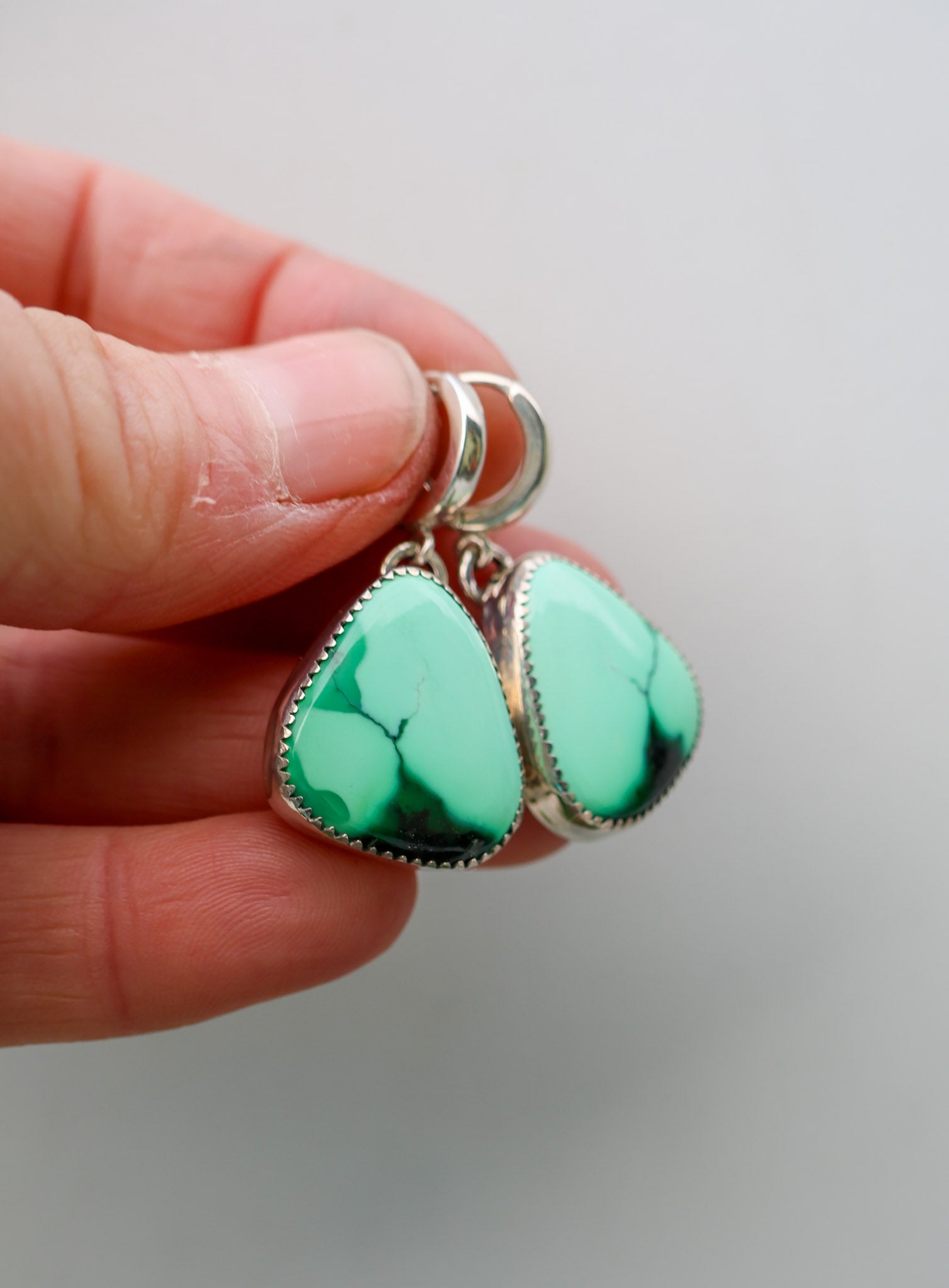 Made with Two Sister Emerald Turquoise Stones & Sterling Silver