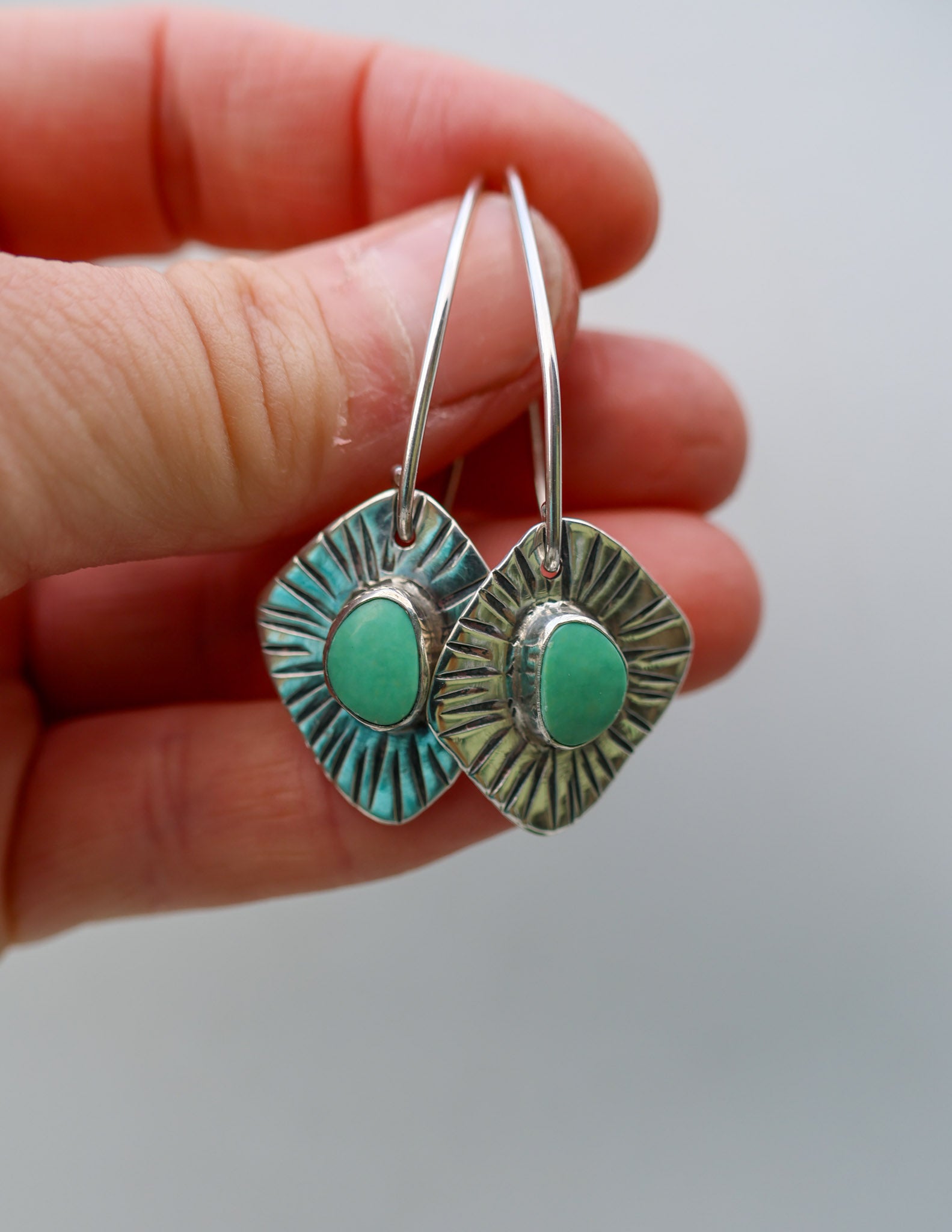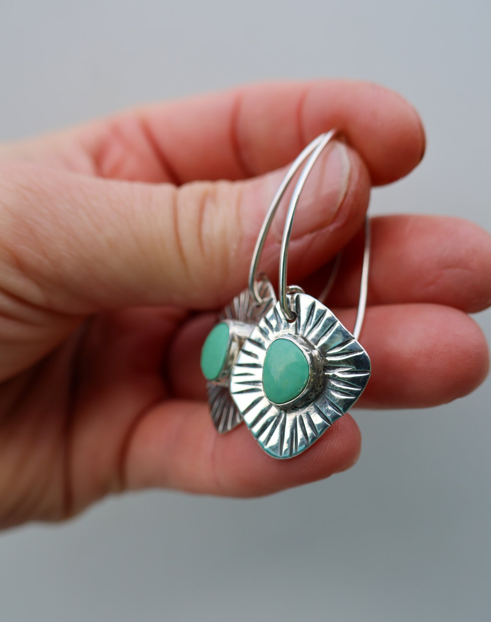 Handmade from sterling silver sheet and wire using traditional silversmithing methods. Products are not perfect, you may see a tool mark, and solder lines here and there, but that is what gives each piece its own unique charm.