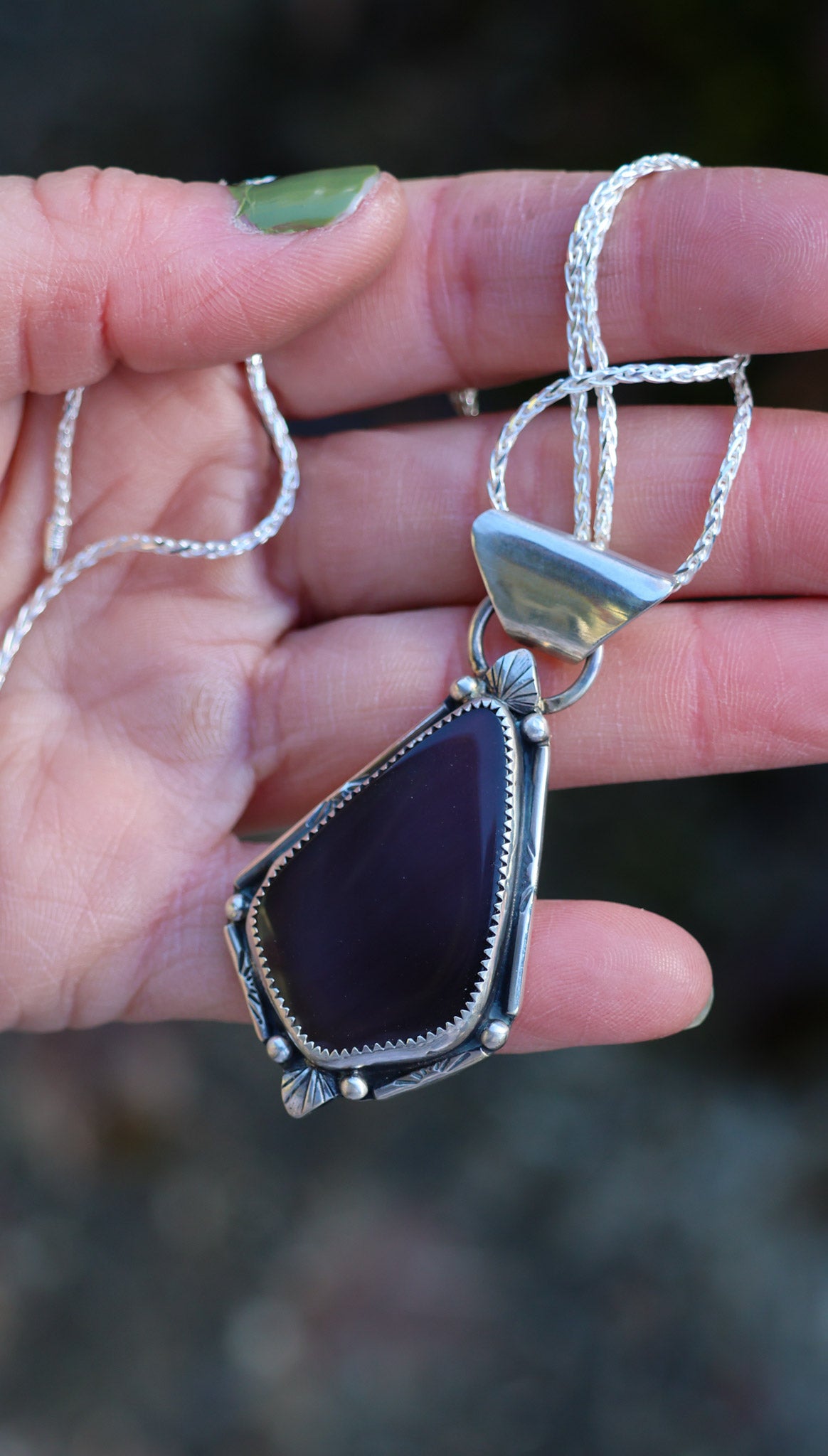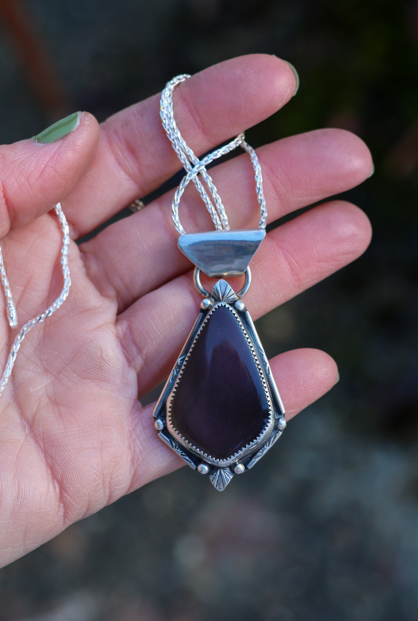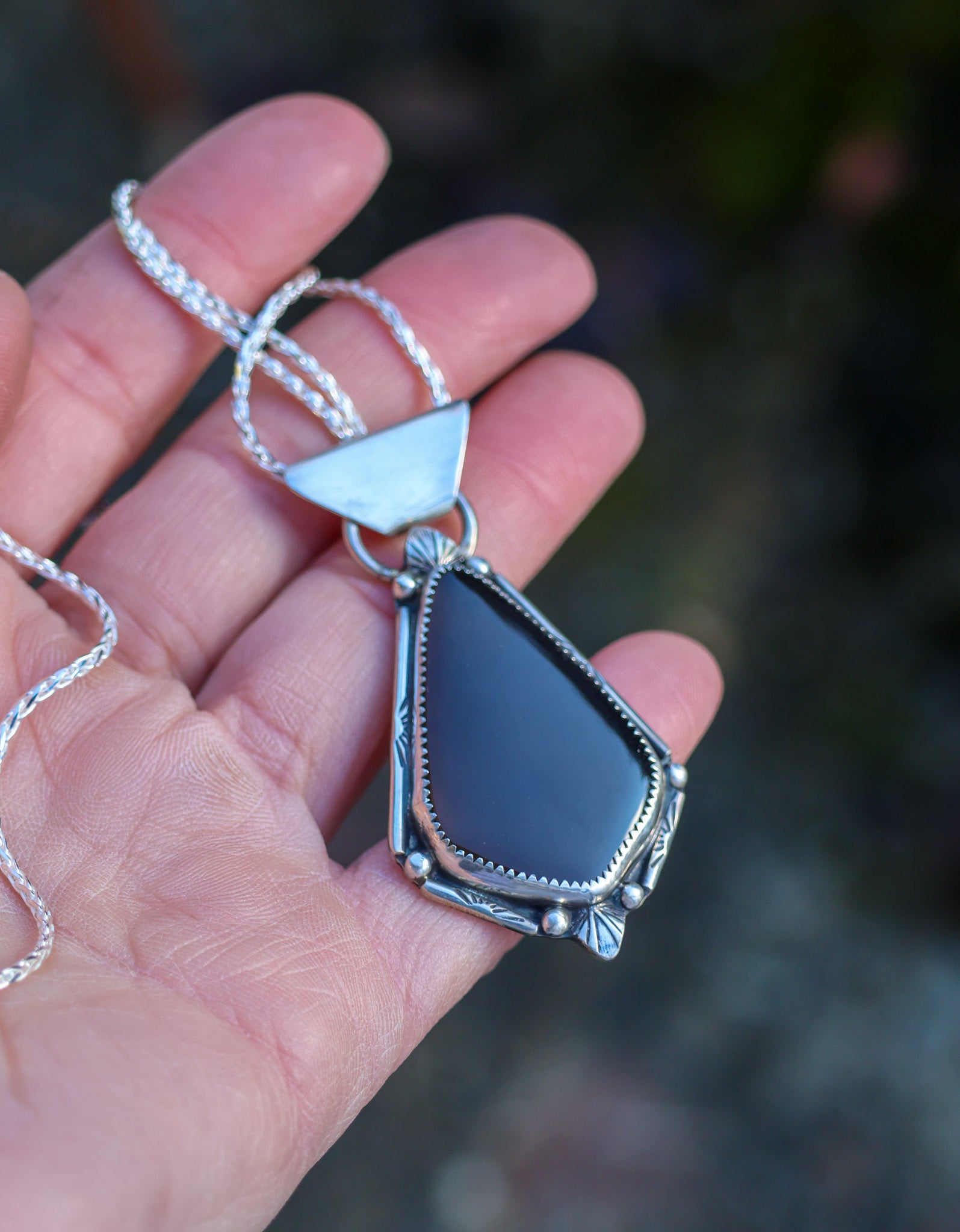 Handmade from sterling silver sheet and wire using traditional silversmithing methods. Products are not perfect, you may see a tool mark, and solder lines here and there, but that is what gives each piece its own unique charm.