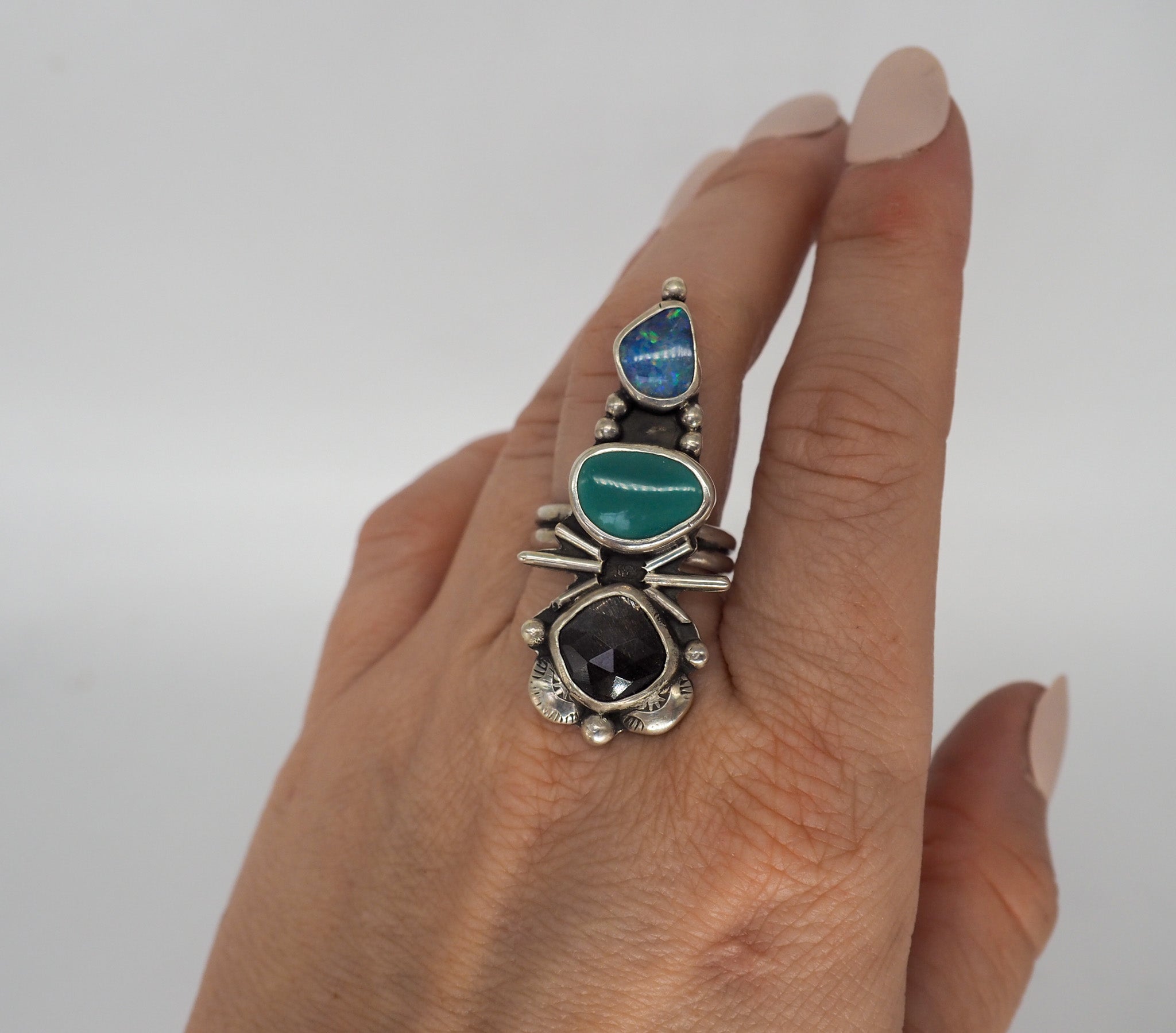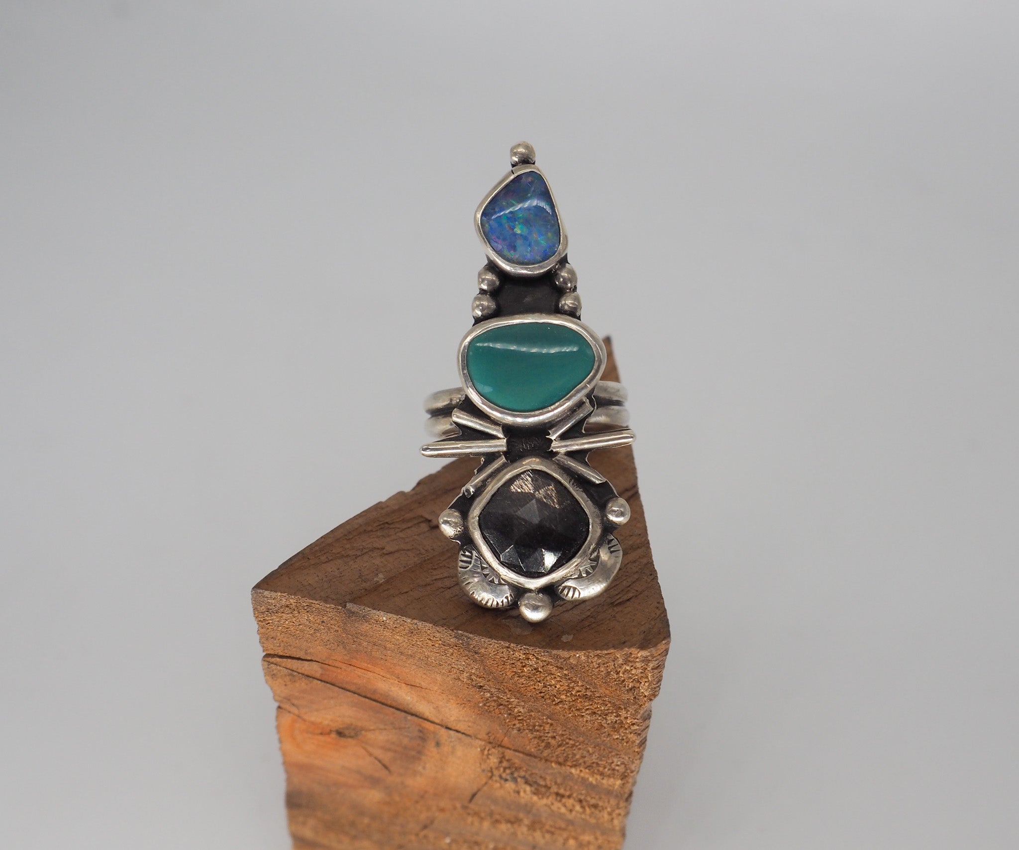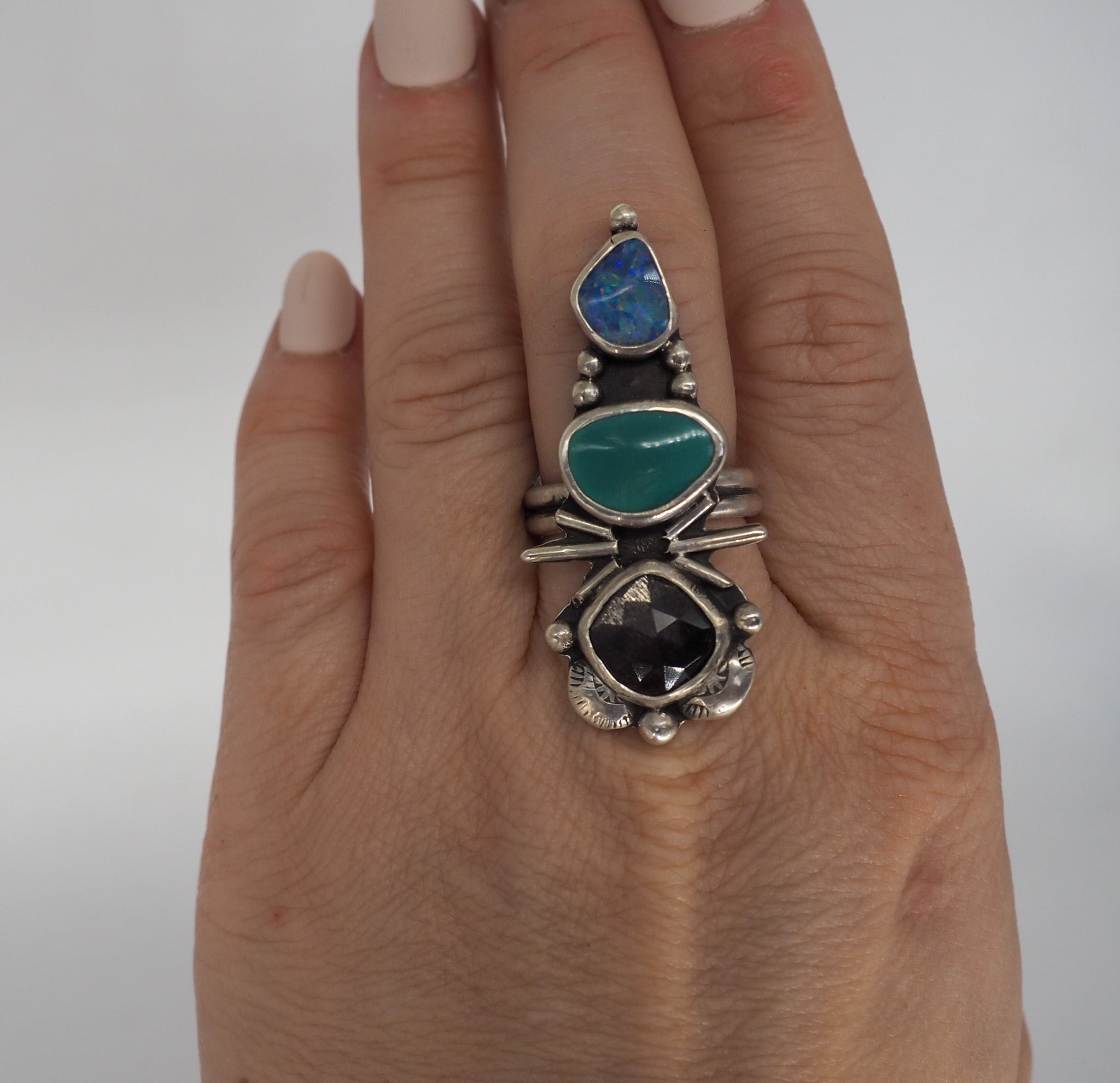 Made with a Natural Coober Pedy Opal, Turquoise, Chocolate Moonstone & Sterling Silver