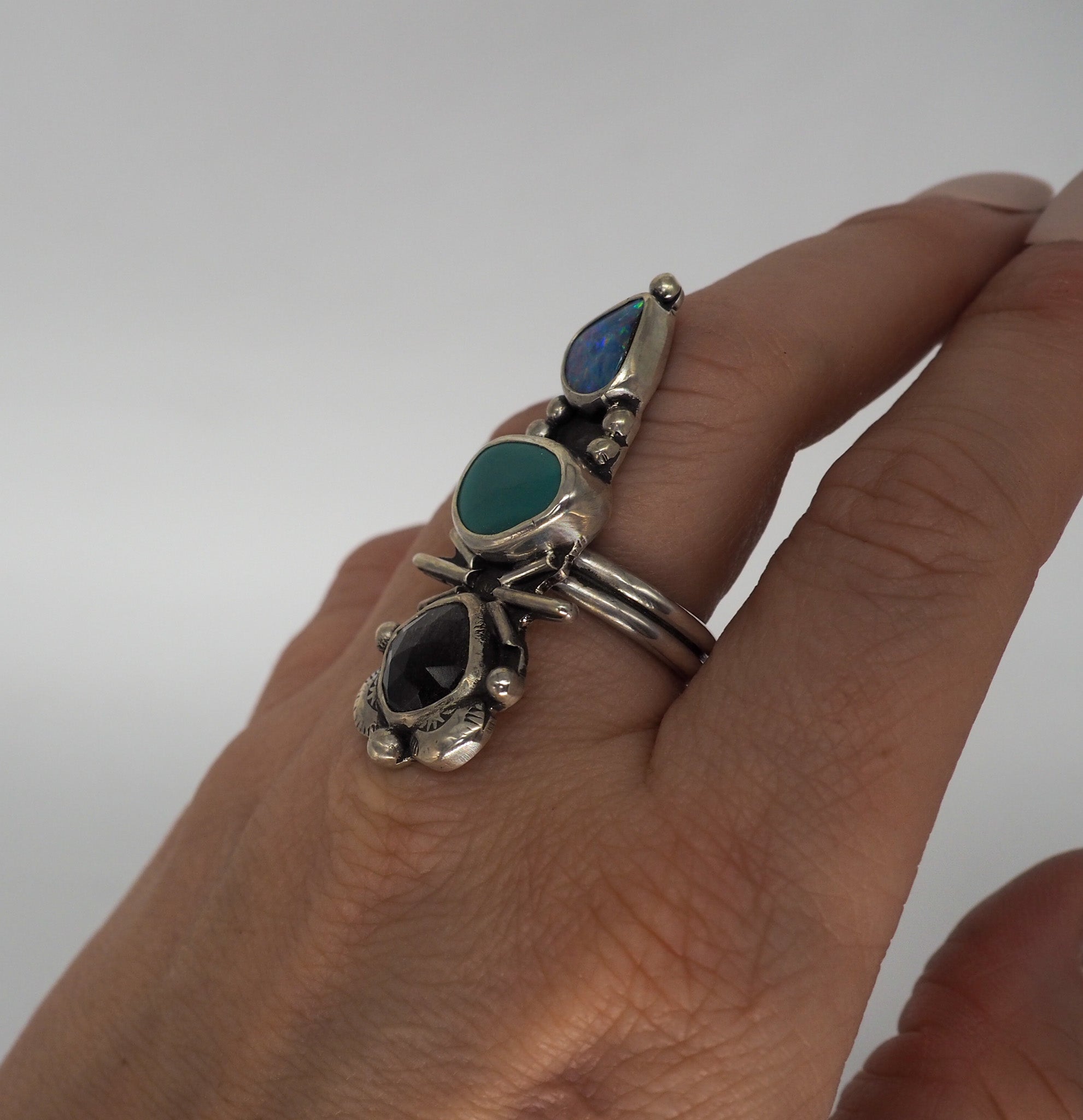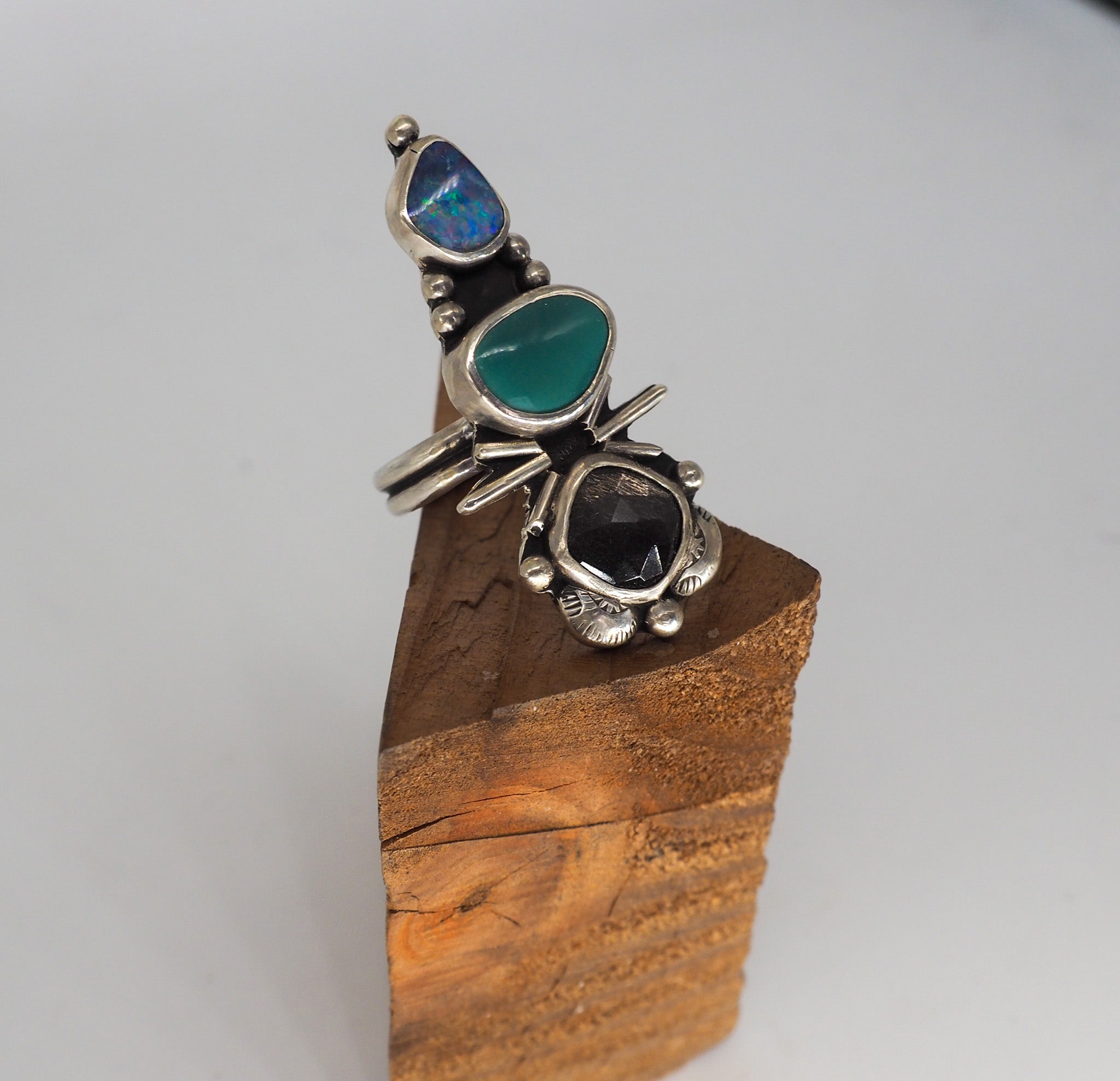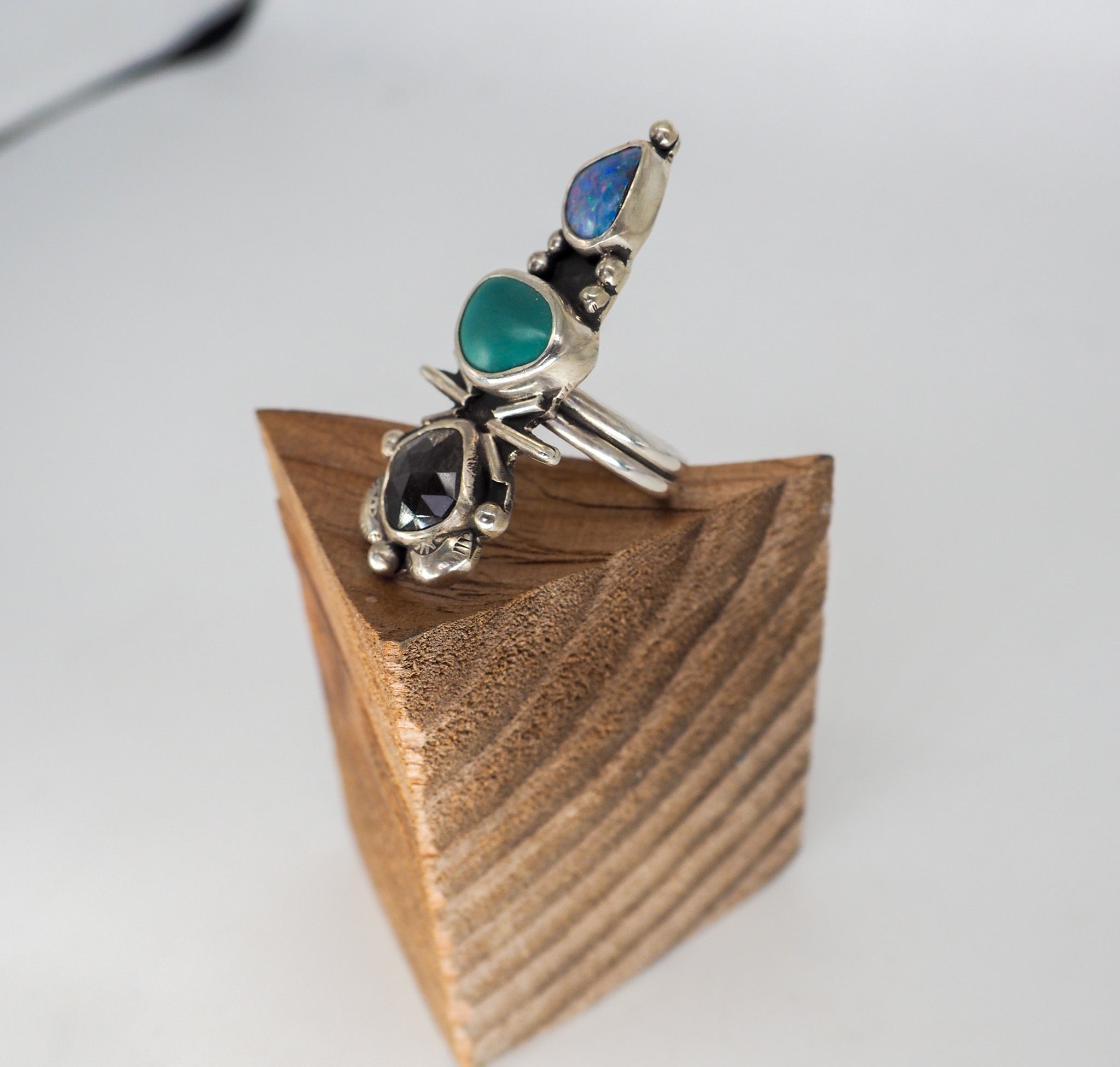 Made with a Natural Coober Pedy Opal, Turquoise, Chocolate Moonstone & Sterling Silver