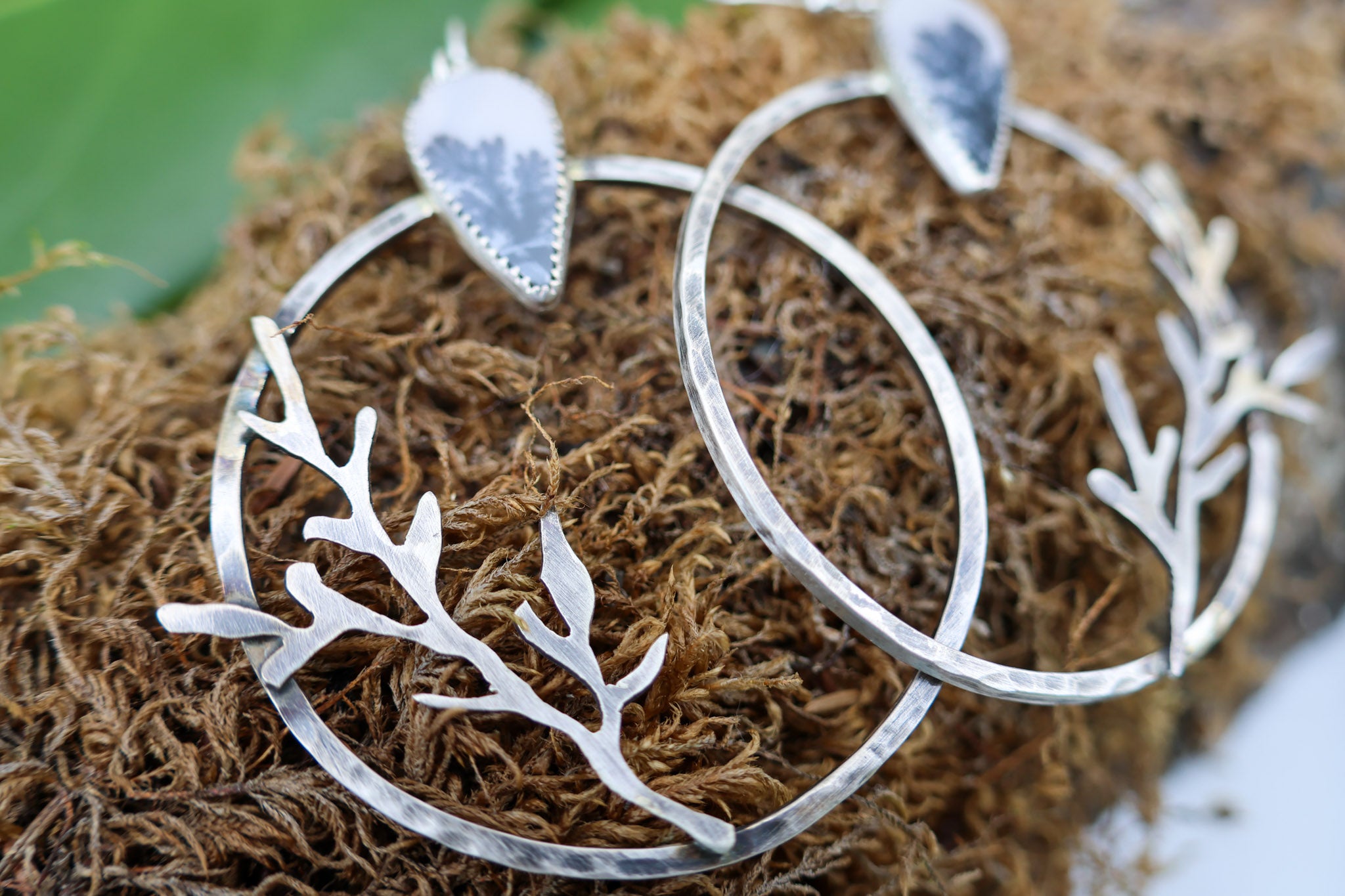 Handmade from sterling silver sheet and wire using traditional silversmithing methods. Products are not perfect, you may see a tool mark, and solder lines here and there, but that is what gives each piece its own unique charm.