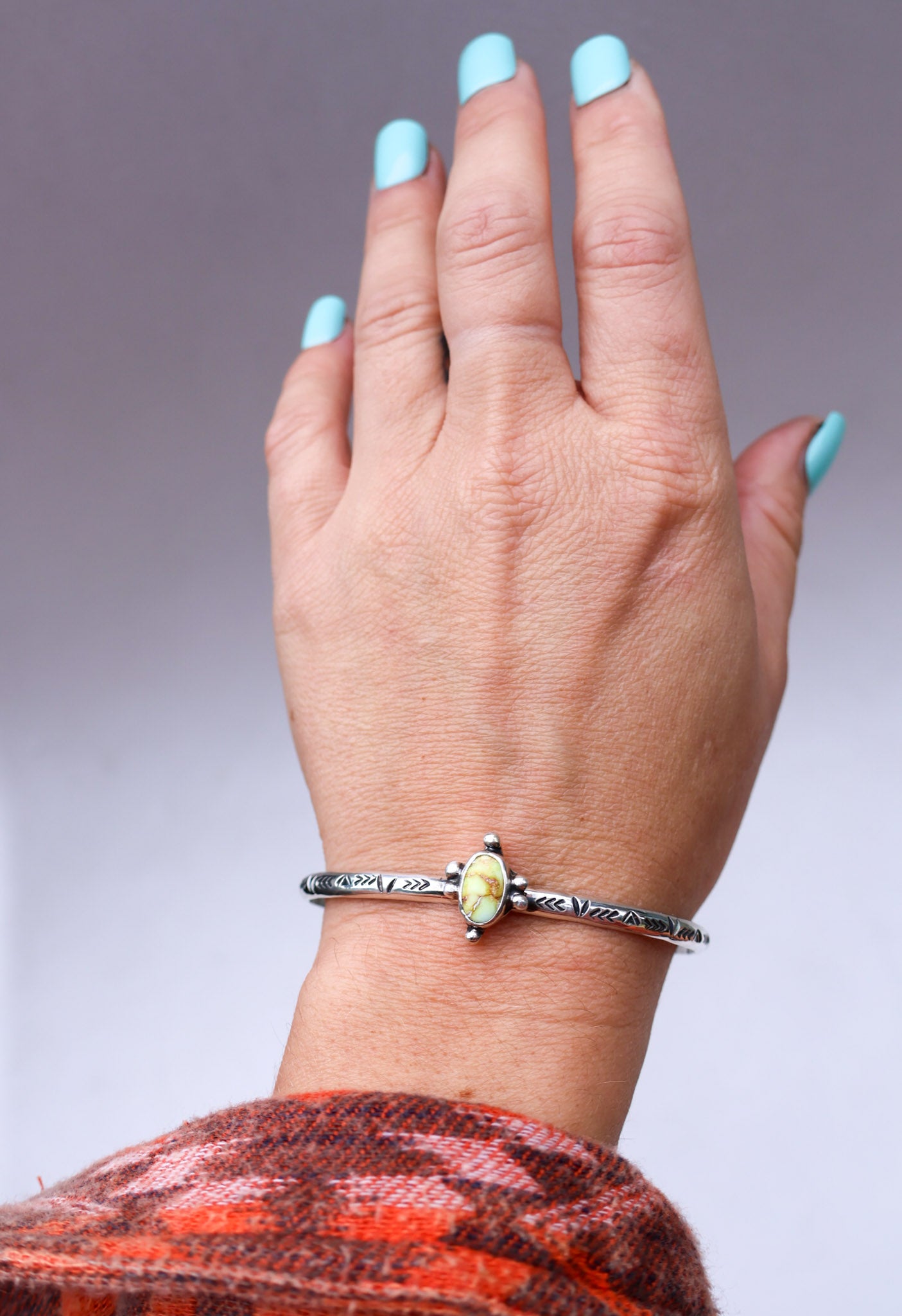 Made from 925 Sterling Silver and a 6 gauge thick sterling silver band. This cuff is a size medium , measuring 5.5” with a 1.5” gap. This will fit an ‘average’ typical women’s wrist size, and is slightly adjustable for a comfort fit.