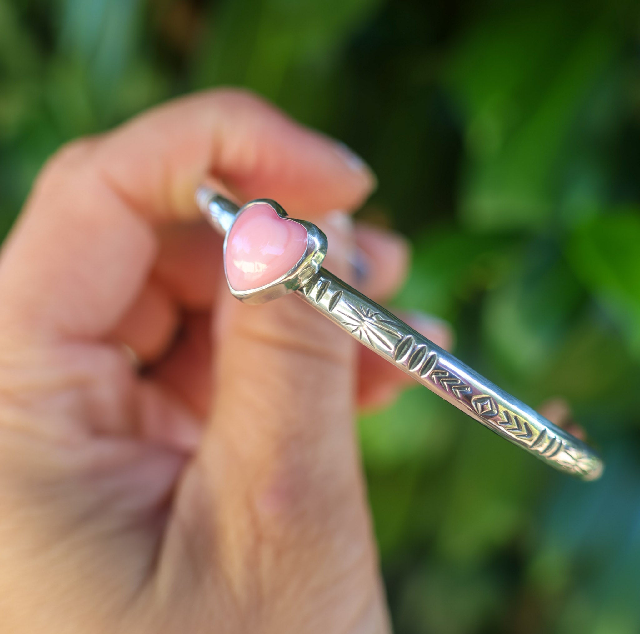 Made from 925 Sterling Silver and a 6 gauge thick sterling silver band. This cuff is a size medium , measuring 5.5” with a 1” gap. This will fit an ‘average’ typical women’s wrist size, and is slightly adjustable for a comfort fit.