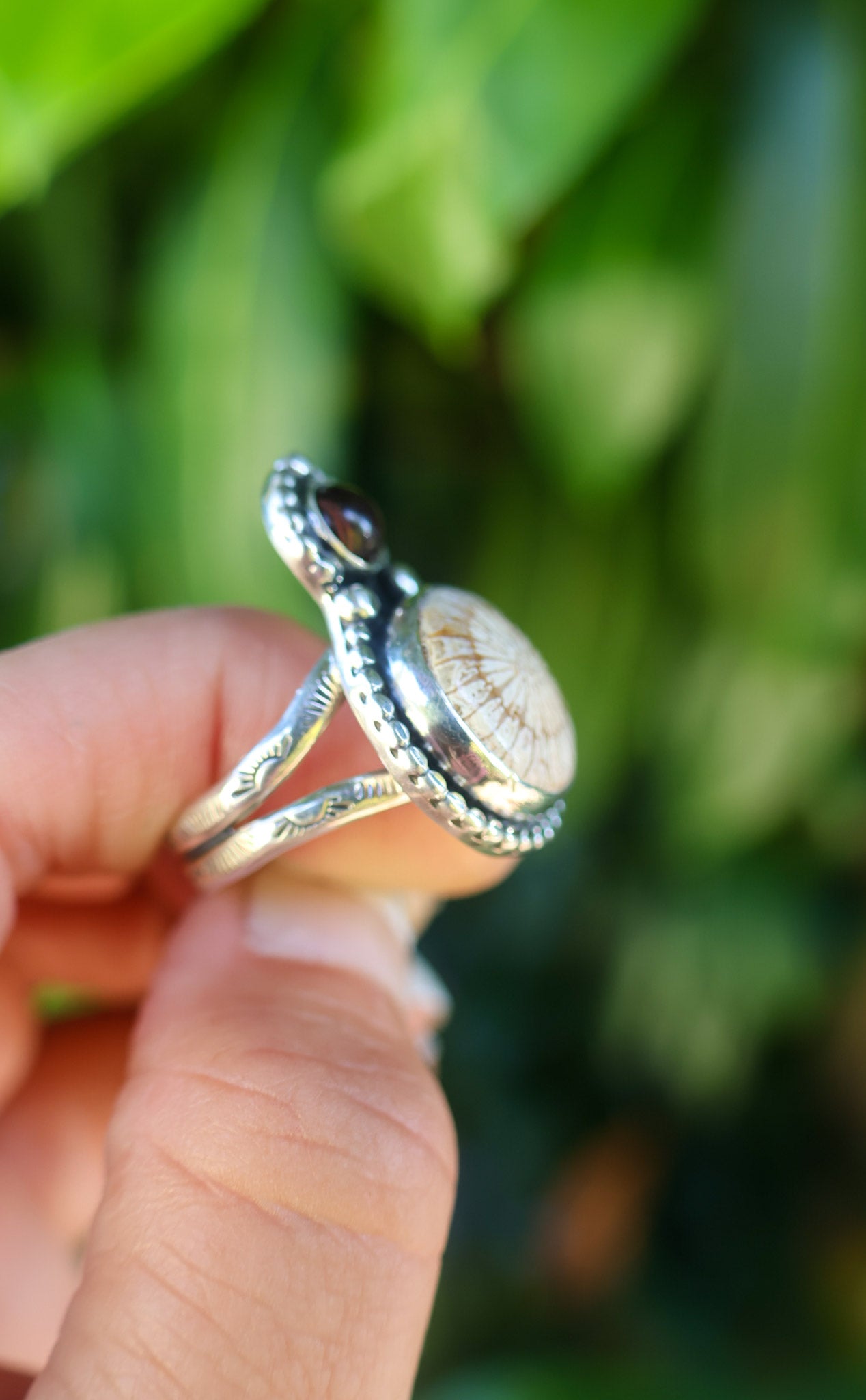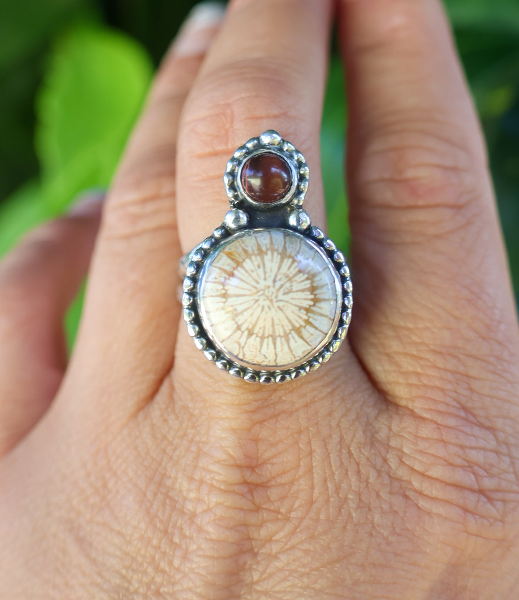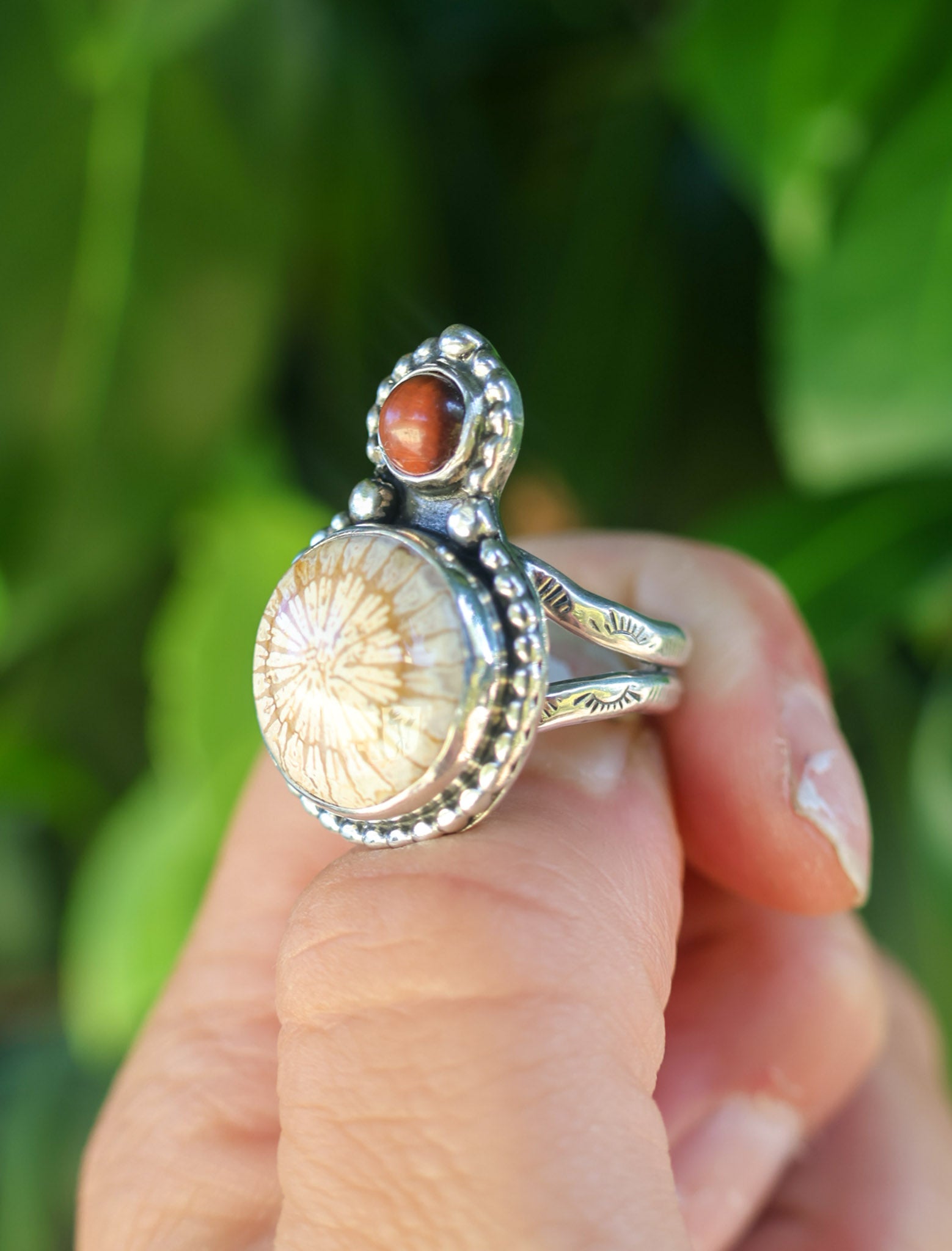 Made with a Coral Fossil, Tiger Eye  & Sterling Silver