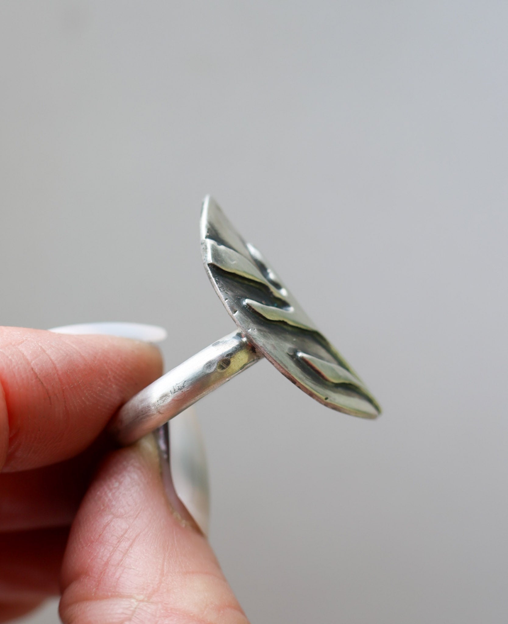 Handmade from sterling silver sheet and wire using traditional silversmithing methods. Products are not perfect, you may see a tool mark, and solder lines here and there, but that is what gives each piece its own unique charm.