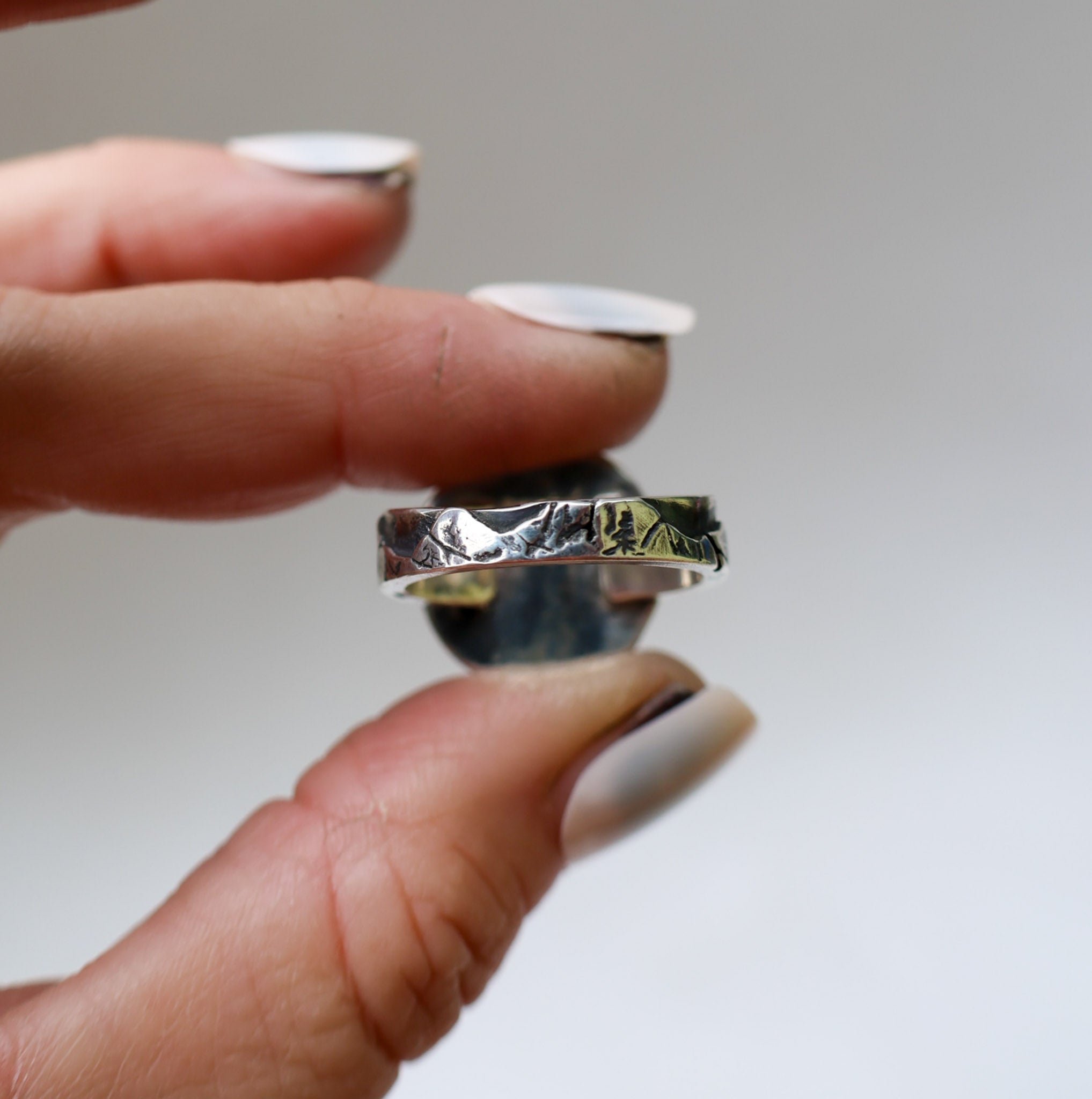 Dendritic Agate | Mountain Ring 4 | Size 8