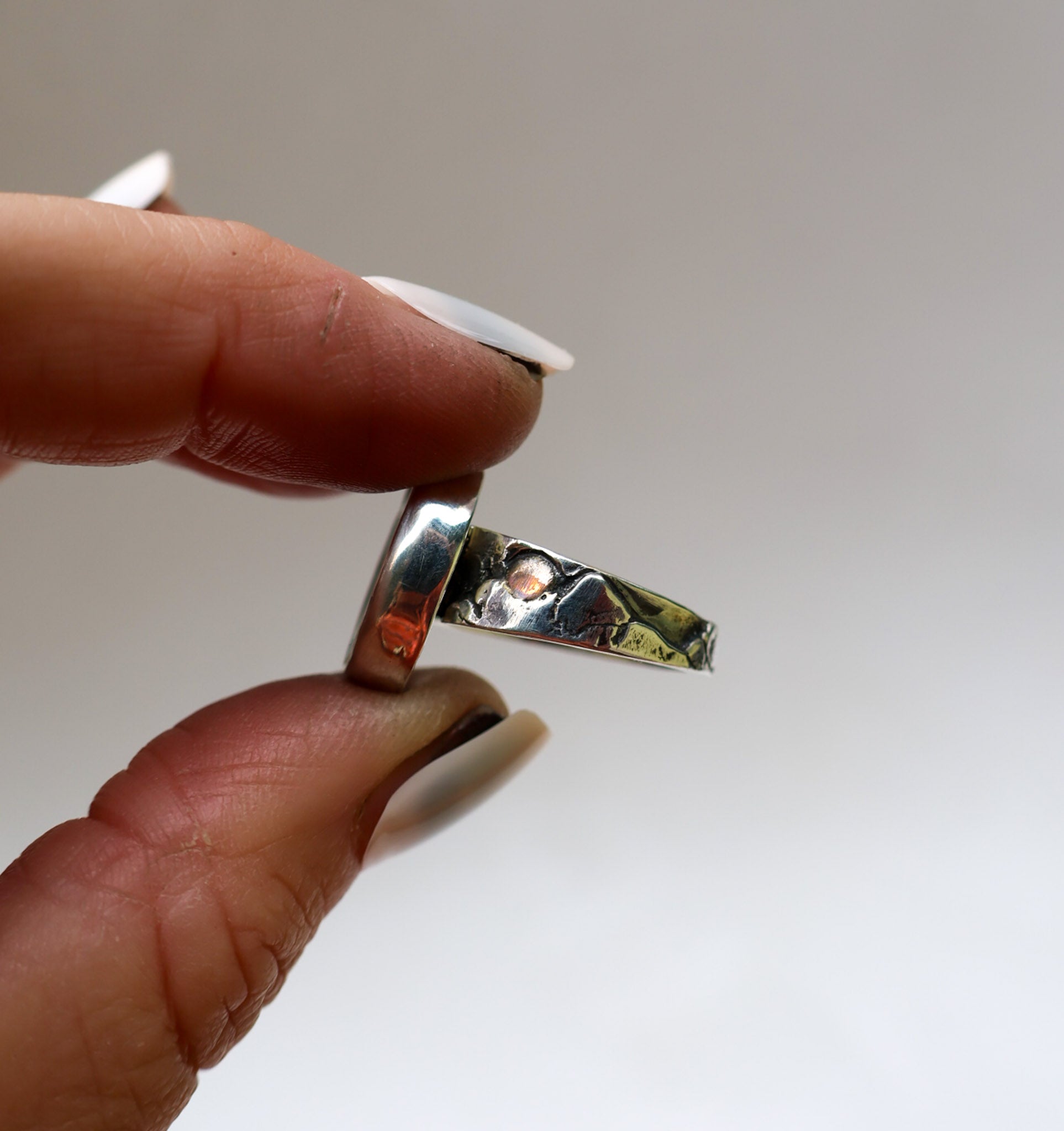 Handmade from sterling silver sheet and wire using traditional silversmithing methods. Products are not perfect, you may see a tool mark, and solder lines here and there, but that is what gives each piece its own unique charm.