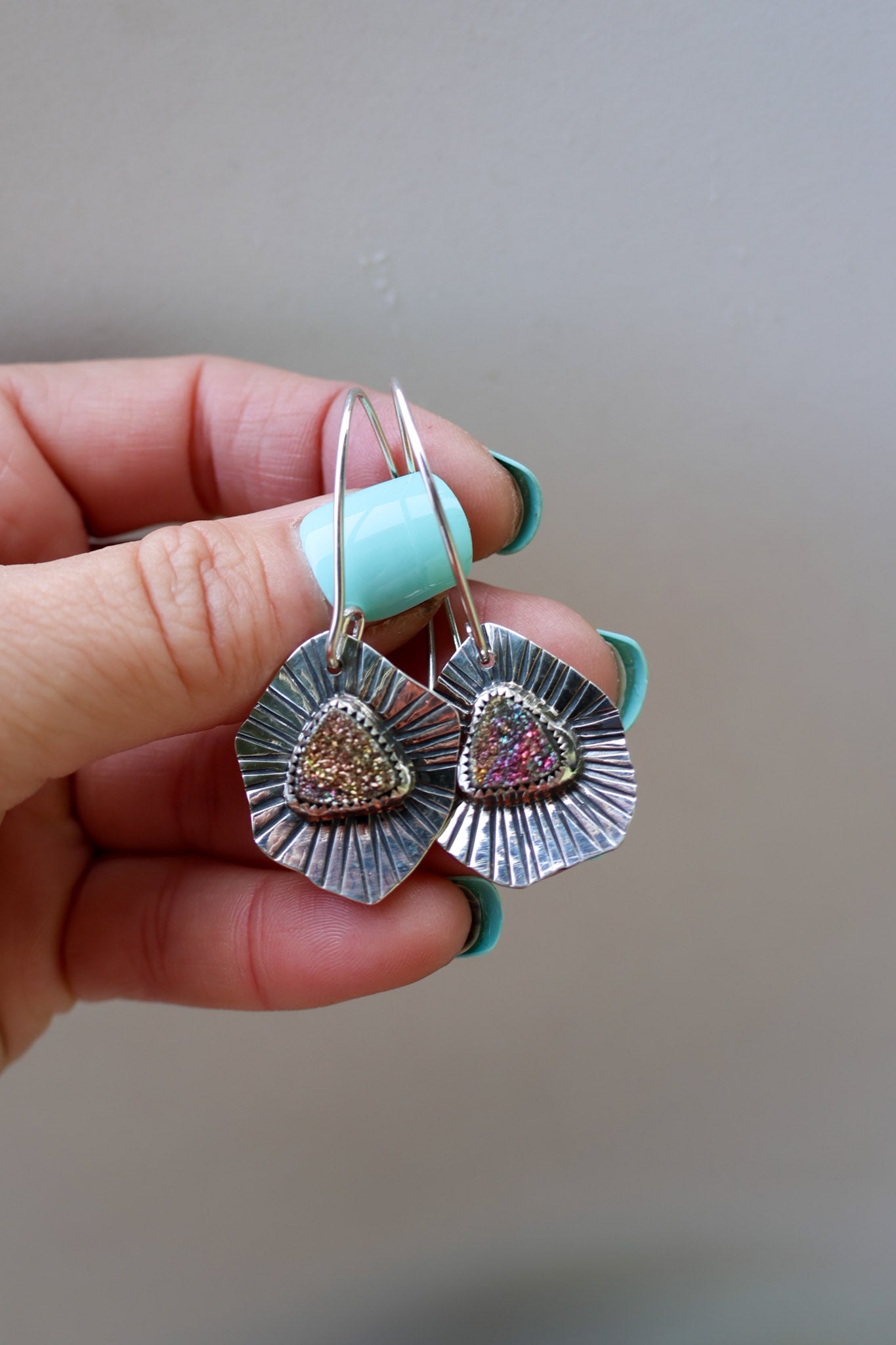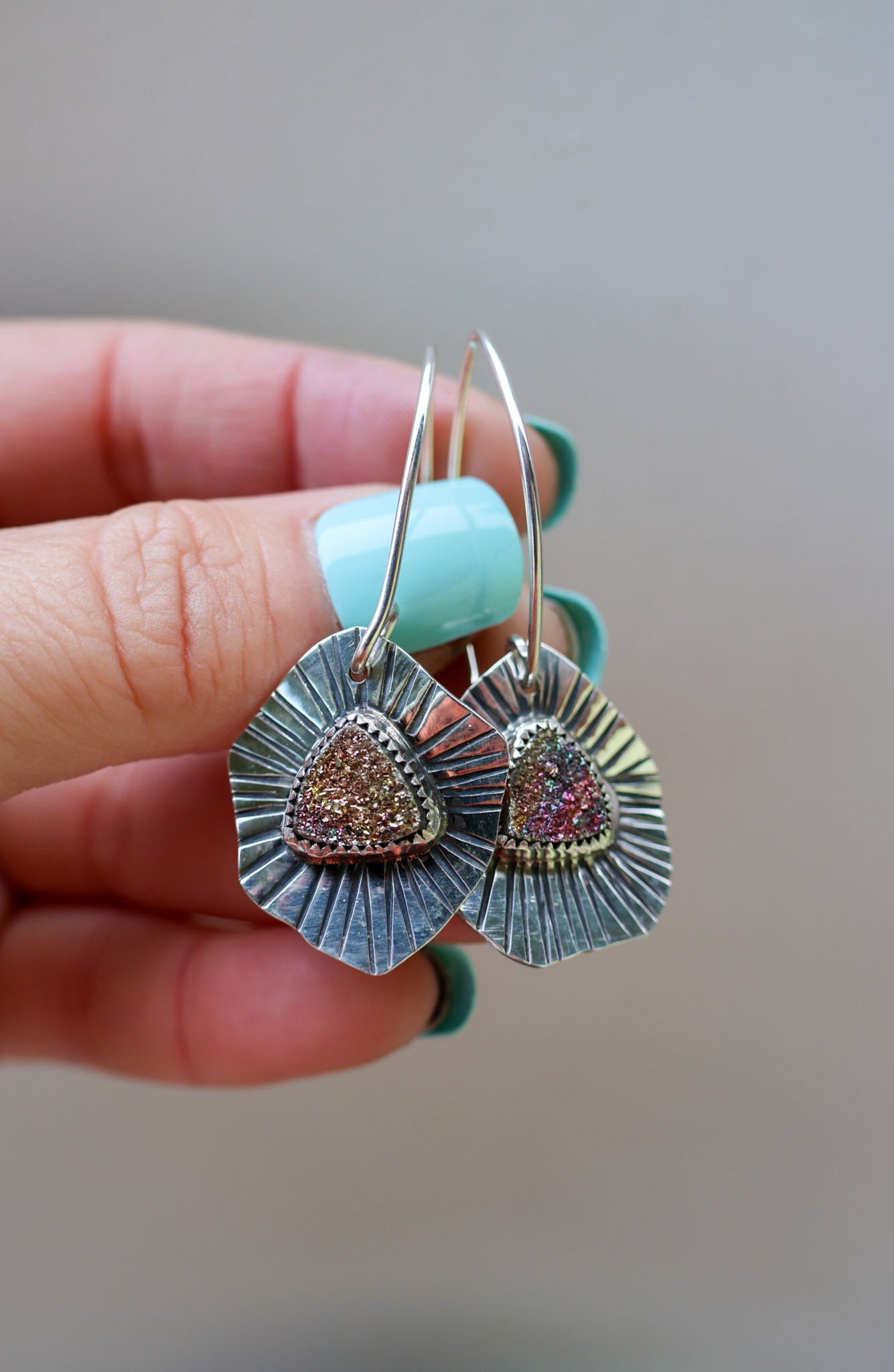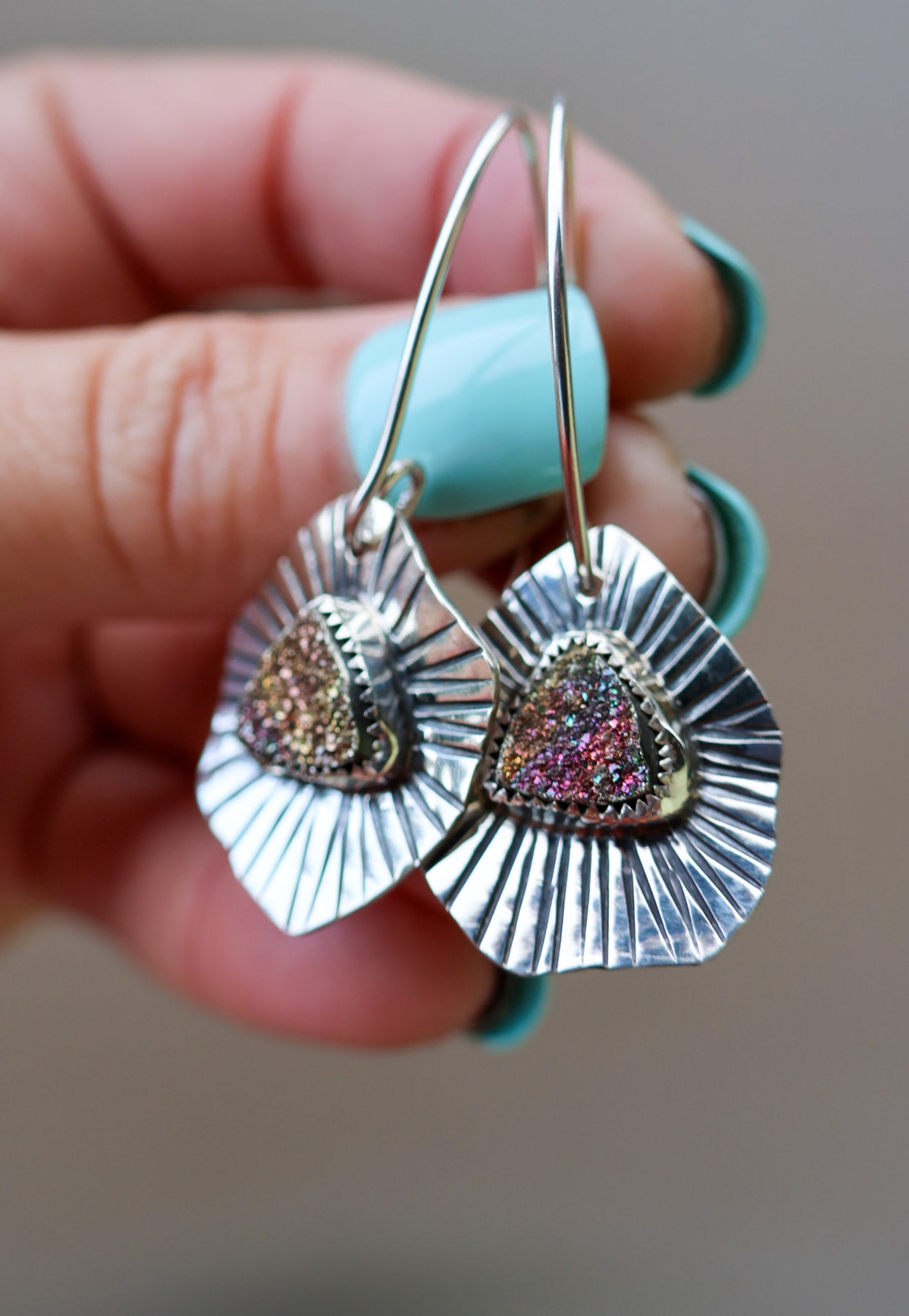 Handmade from sterling silver sheet and wire using traditional silversmithing methods. Products are not perfect, you may see a tool mark, and solder lines here and there, but that is what gives each piece its own unique charm.