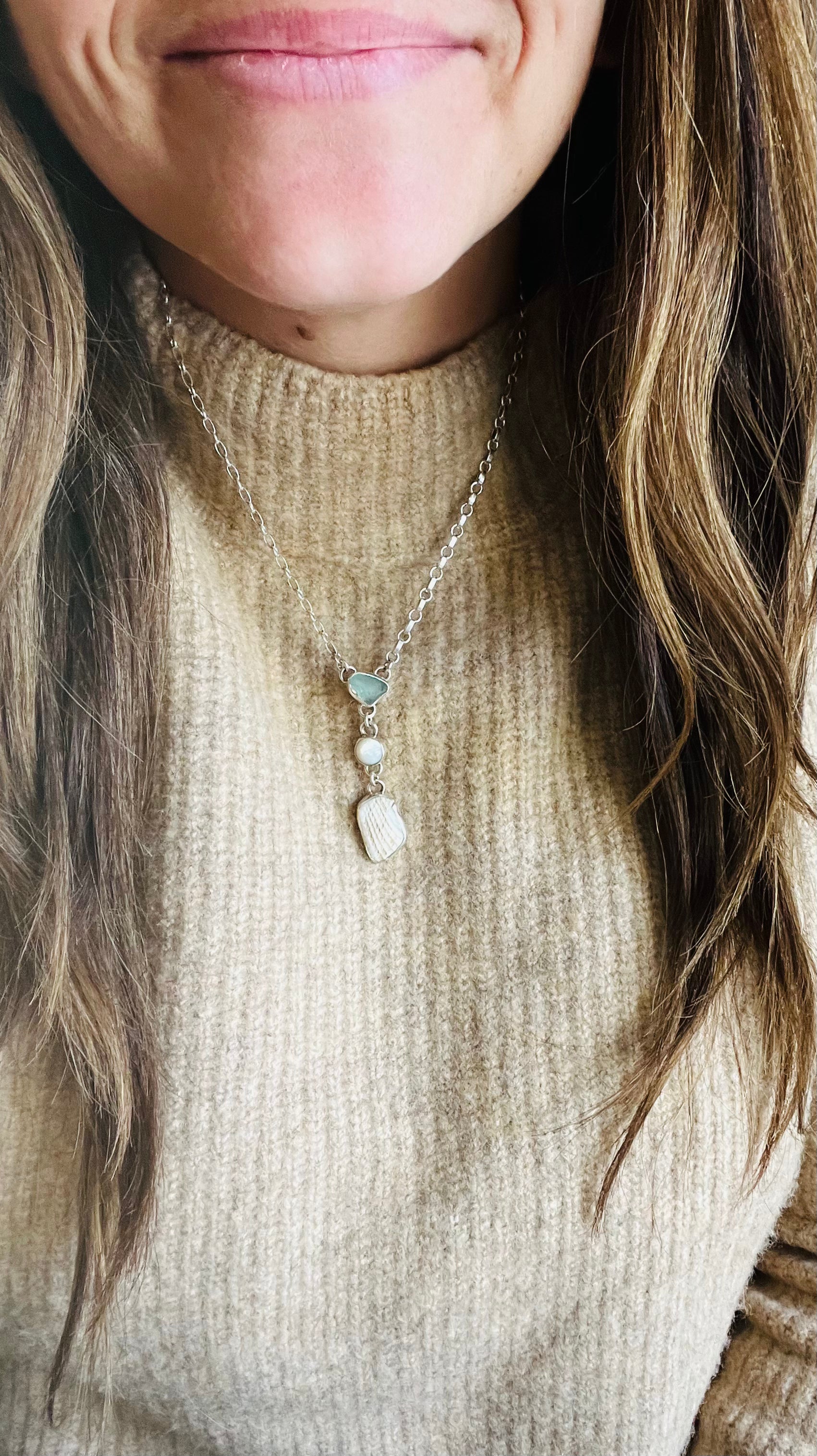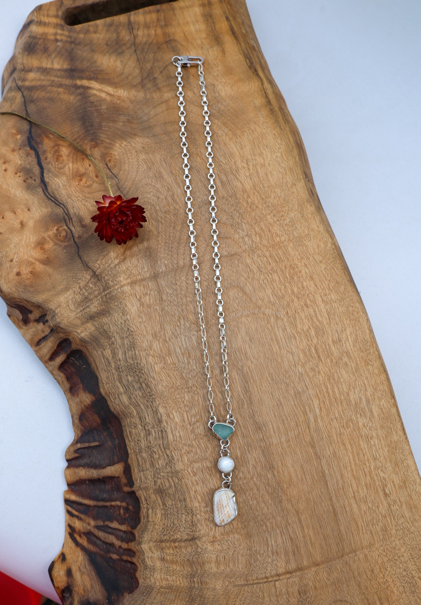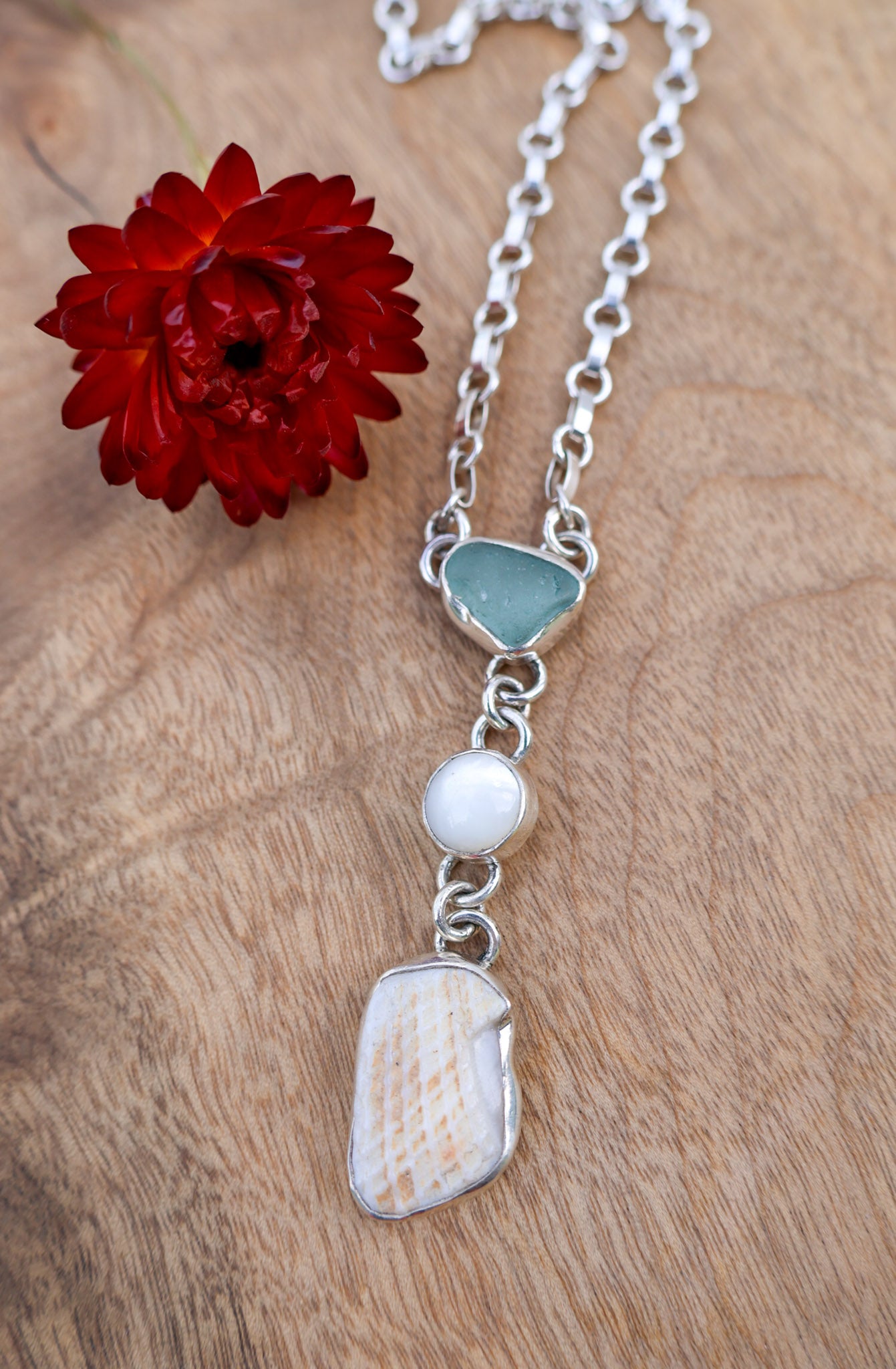 Made with Sea Glass, Mother of Pearl, Sea Shell & Sterling Silver
