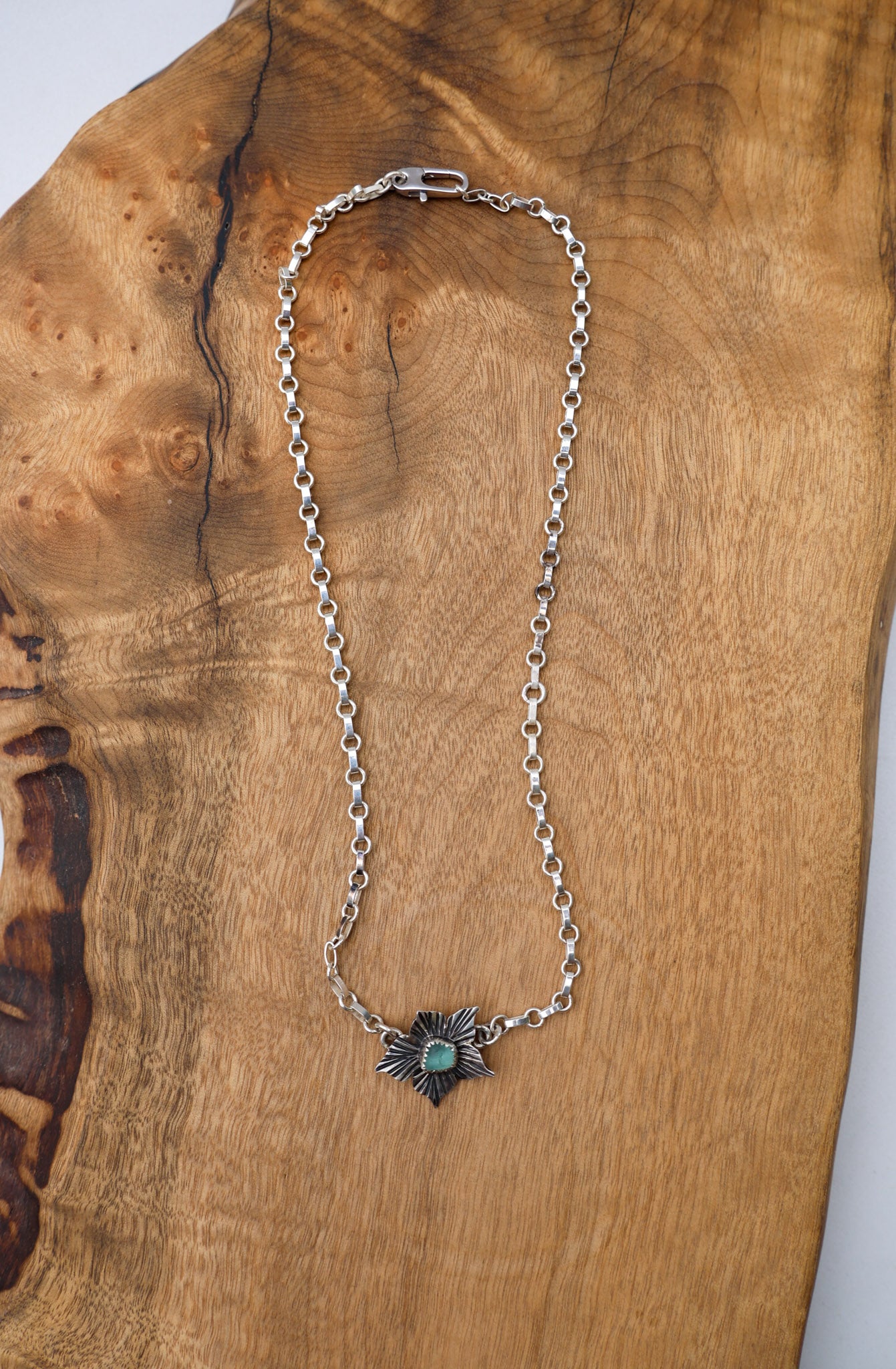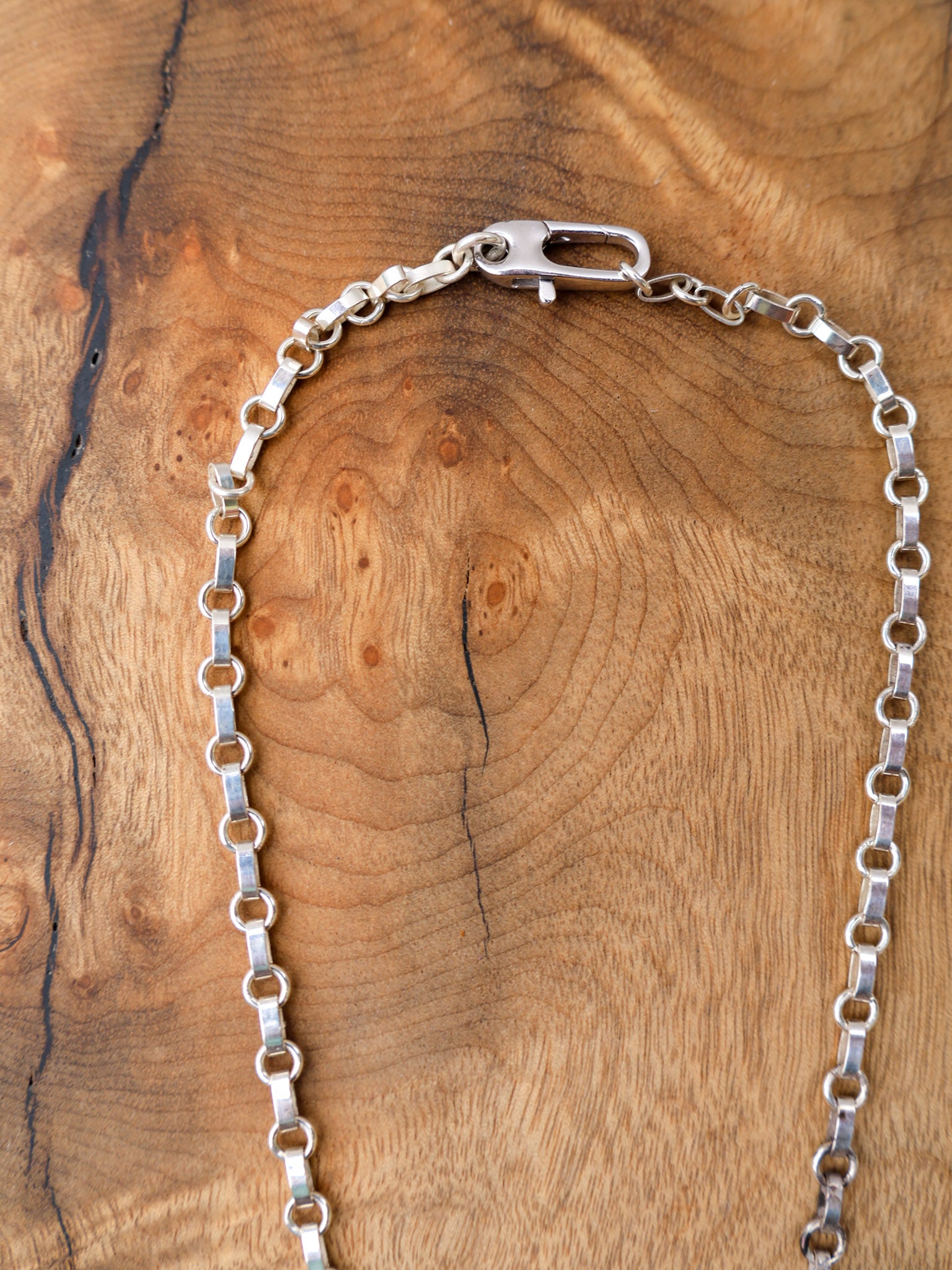 Handmade from sterling silver sheet and wire using traditional silversmithing methods. Products are not perfect, you may see a tool mark, and solder lines here and there, but that is what gives each piece its own unique charm.