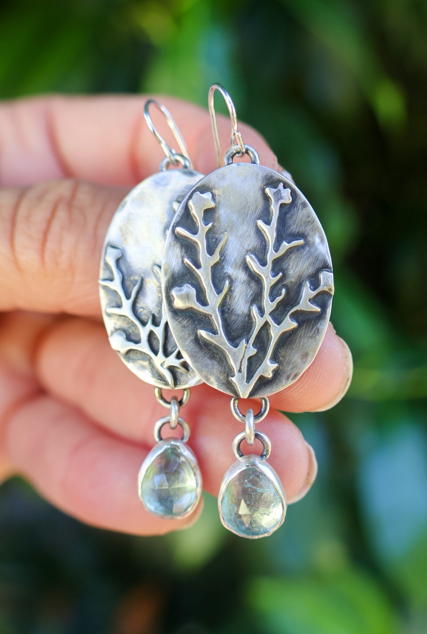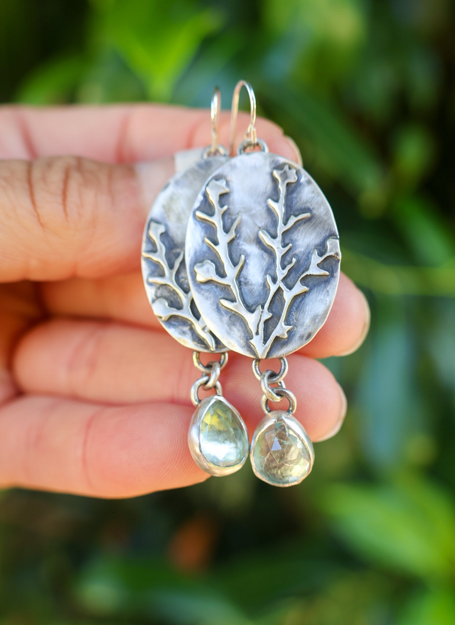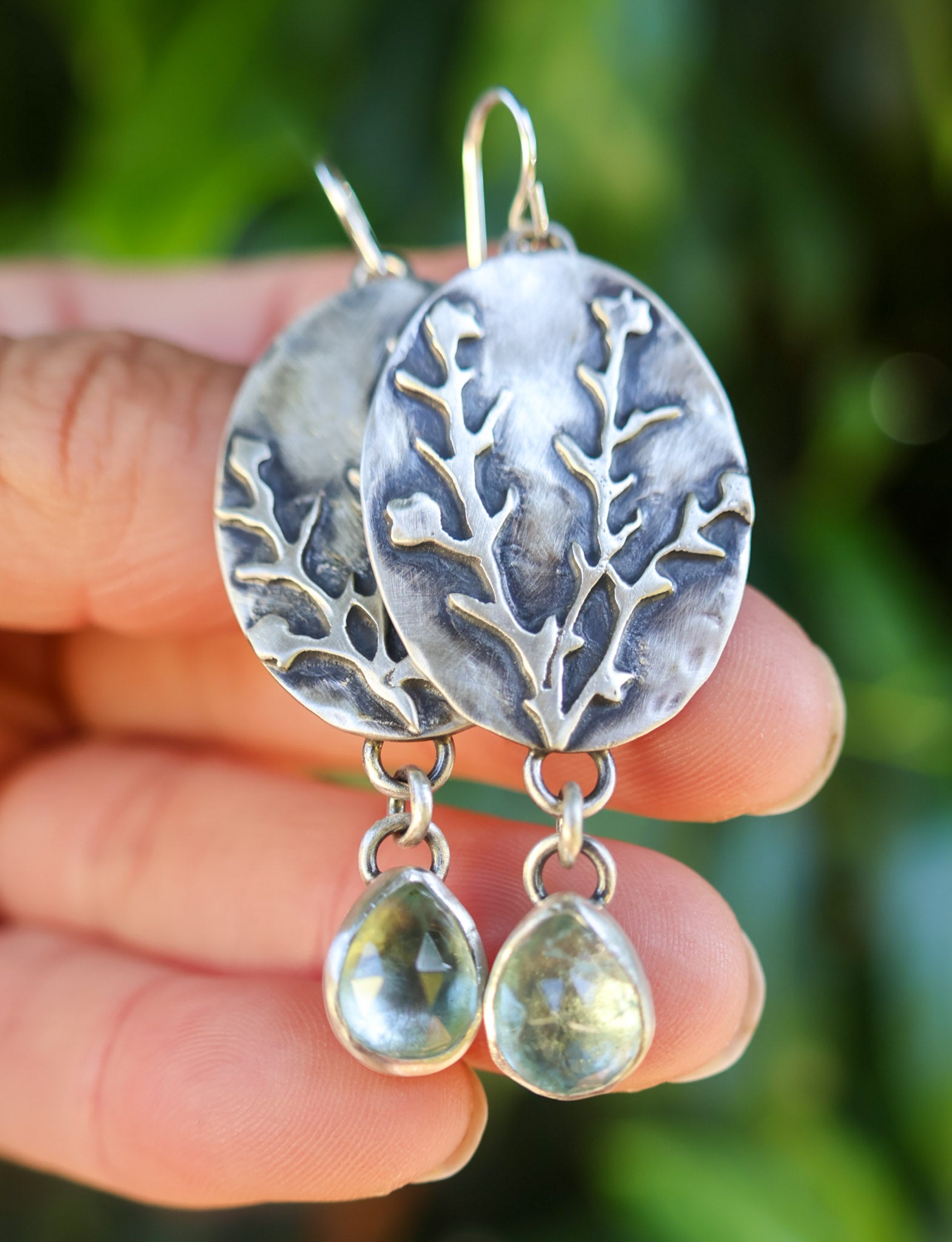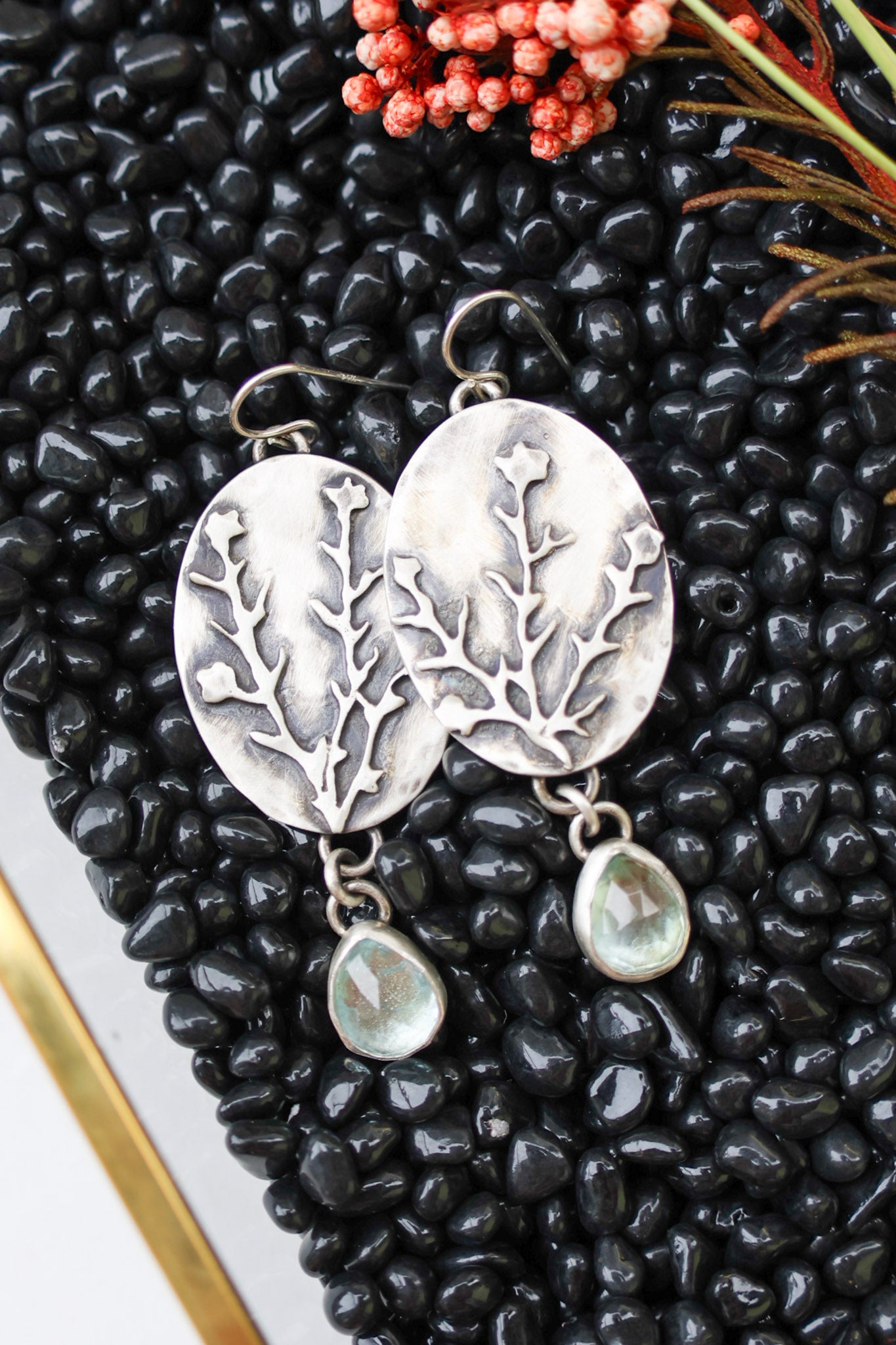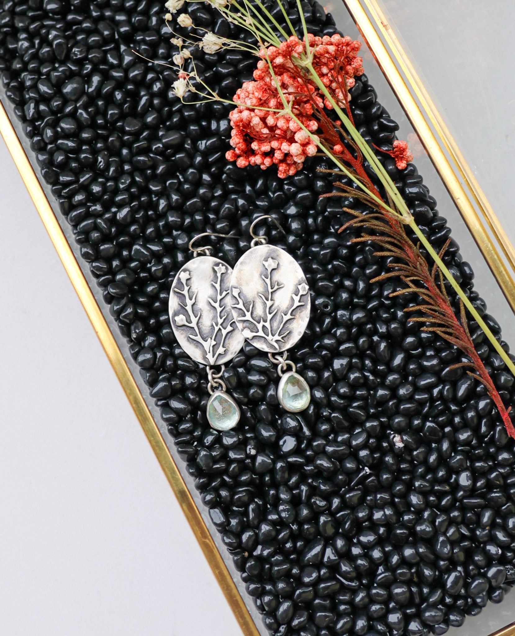 Made with two sister Aquamarine Rose Cuts & Sterling Silver