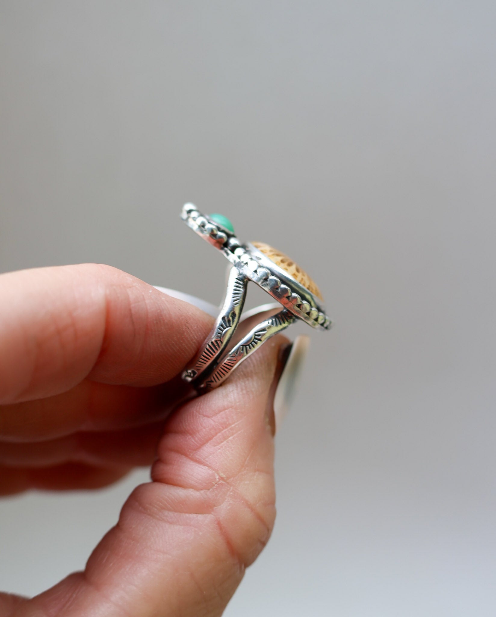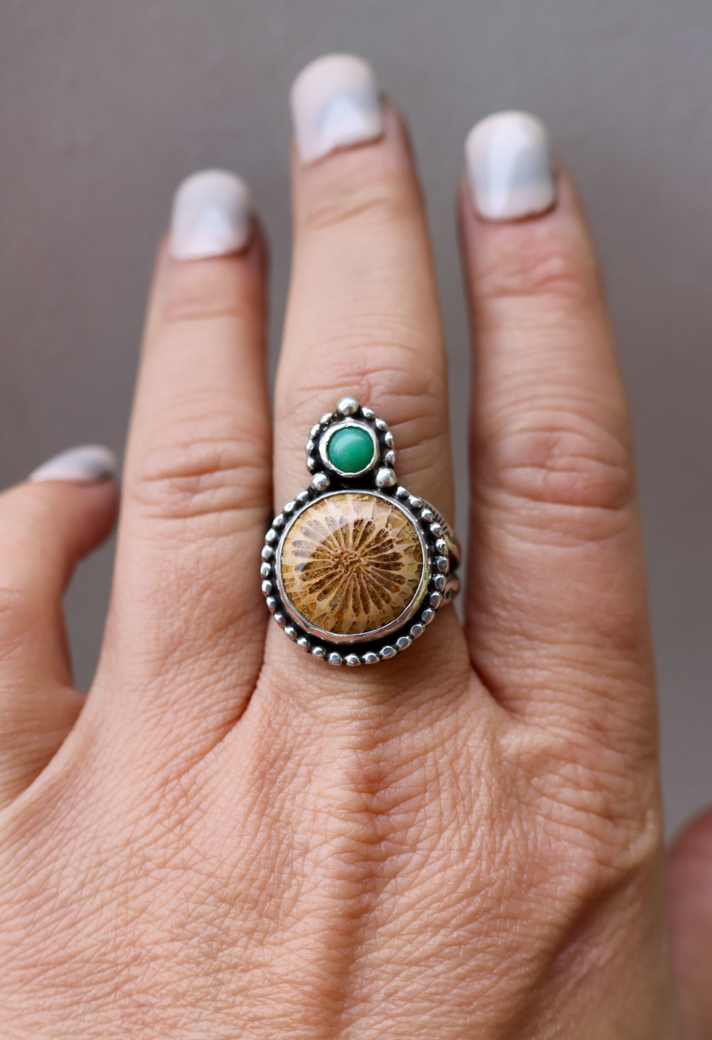 Made with a Coral Fossil, Chrysoprase  & Sterling Silver