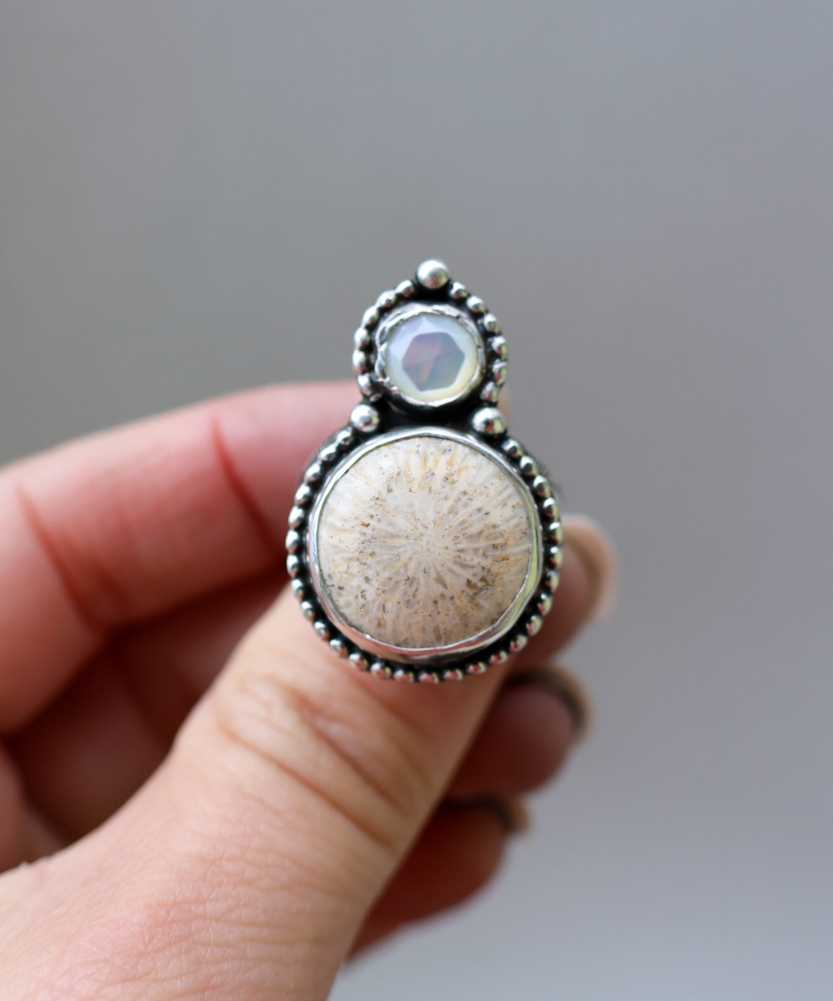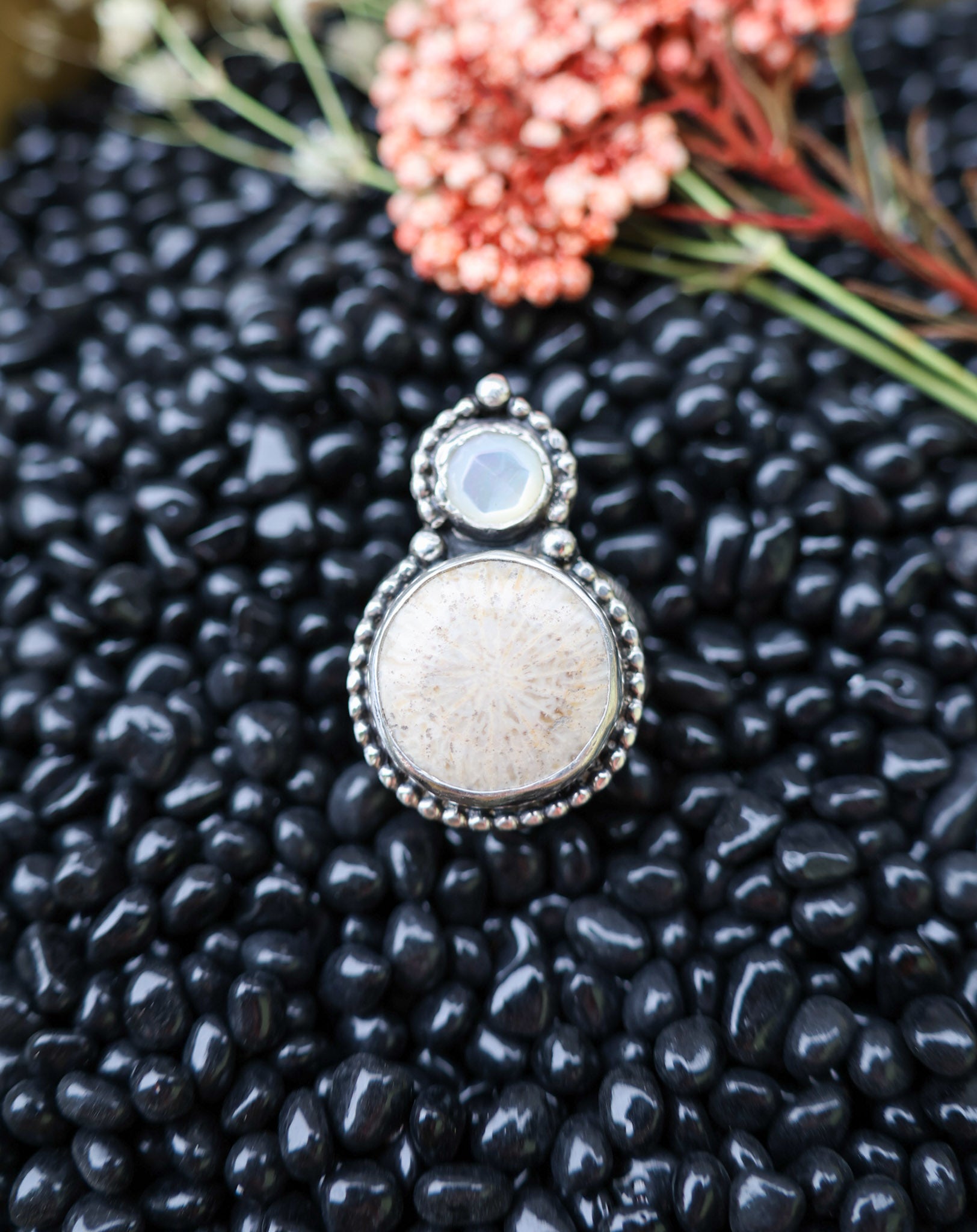 Made with a Coral Fossil, Mother of Pearl & Sterling Silver