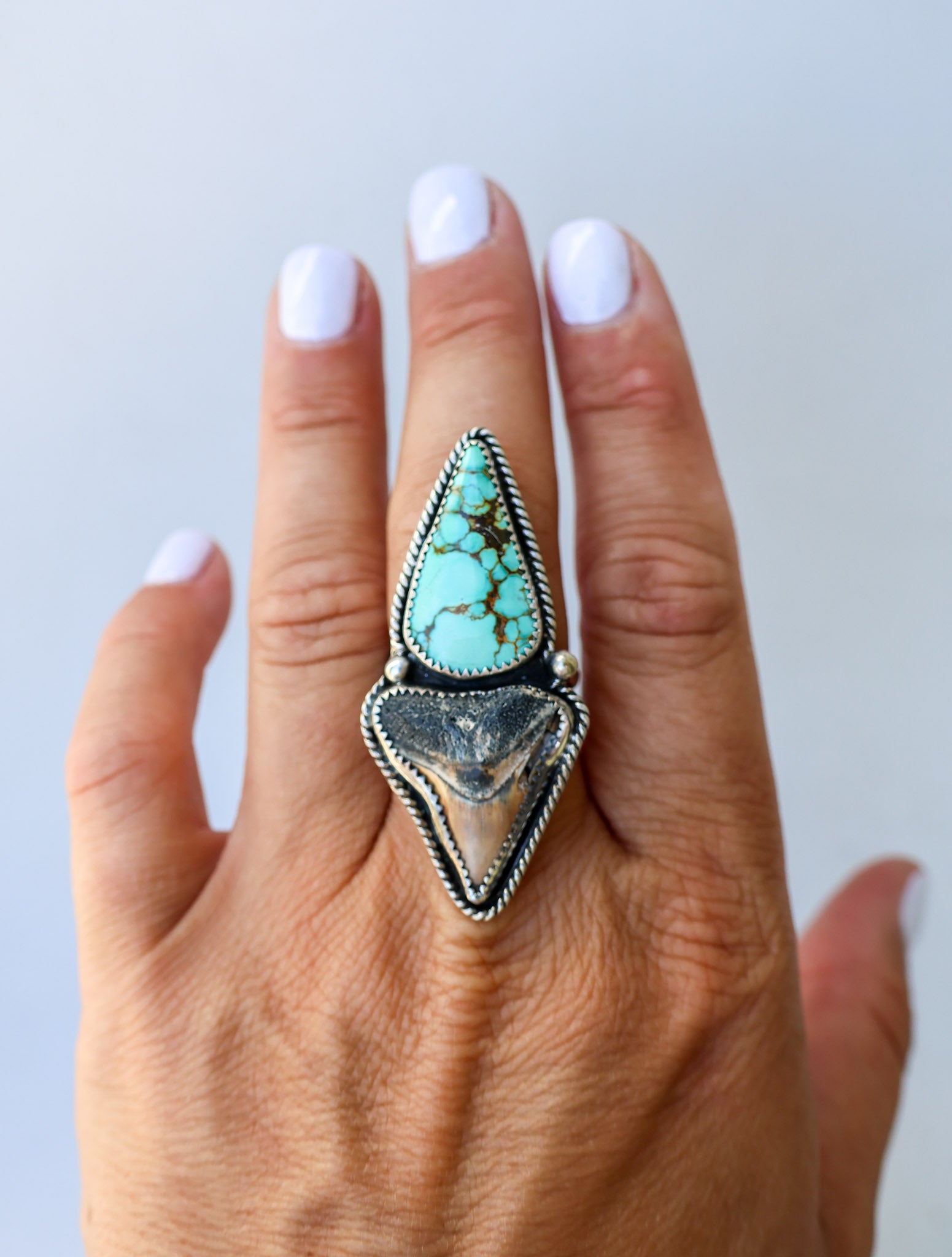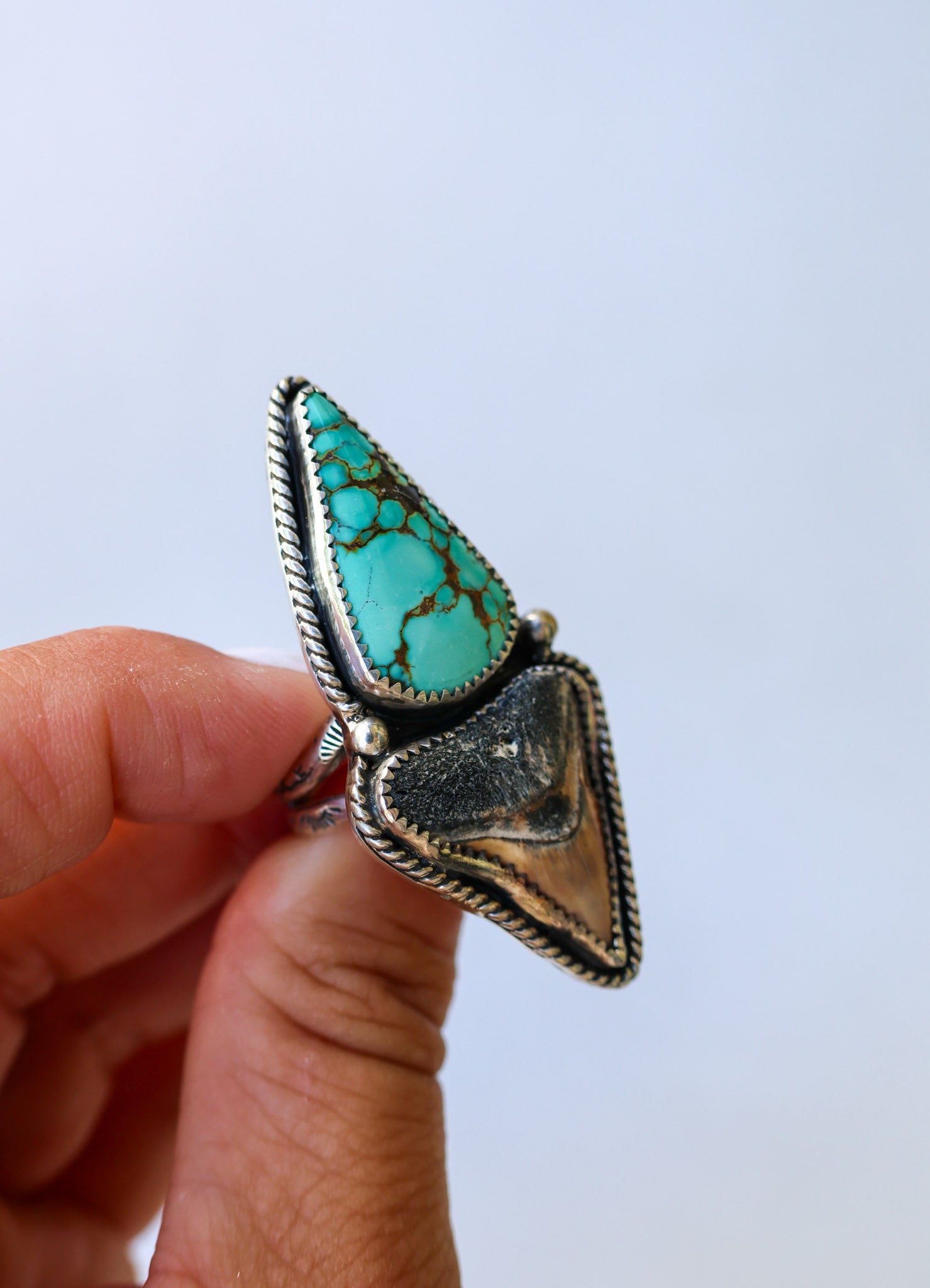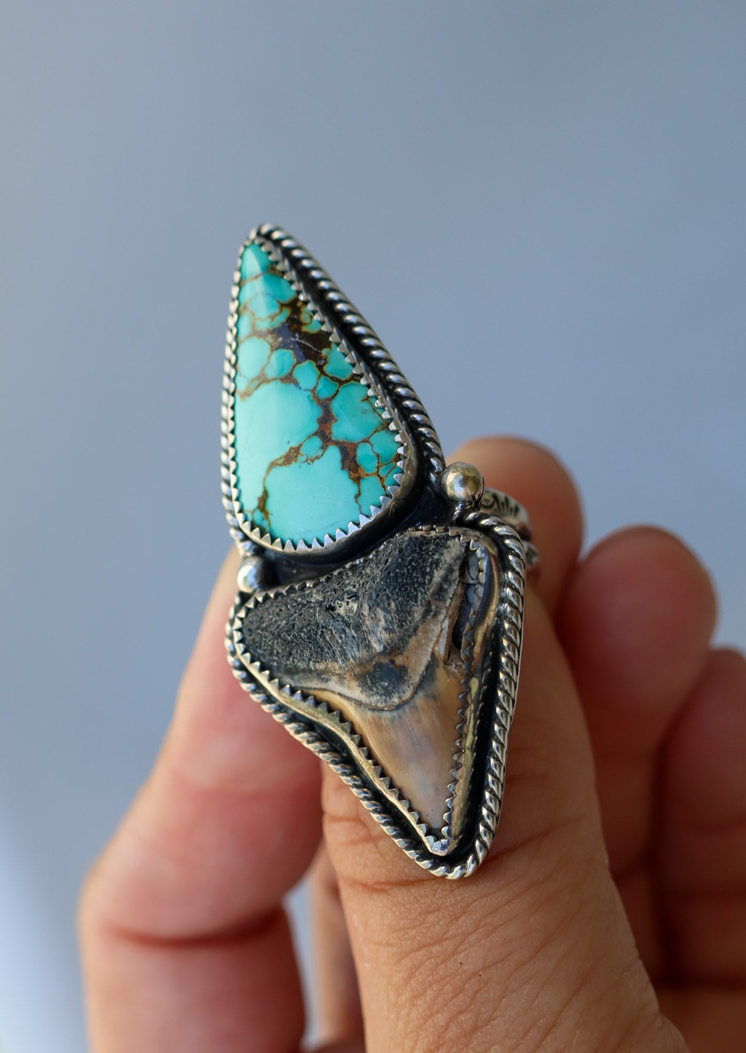 *Ring is discounted because of a crack in the shark tooth. It does not mess with the integrity of the ring, but do look at the photos to see the crack and chunk of tooth missing*