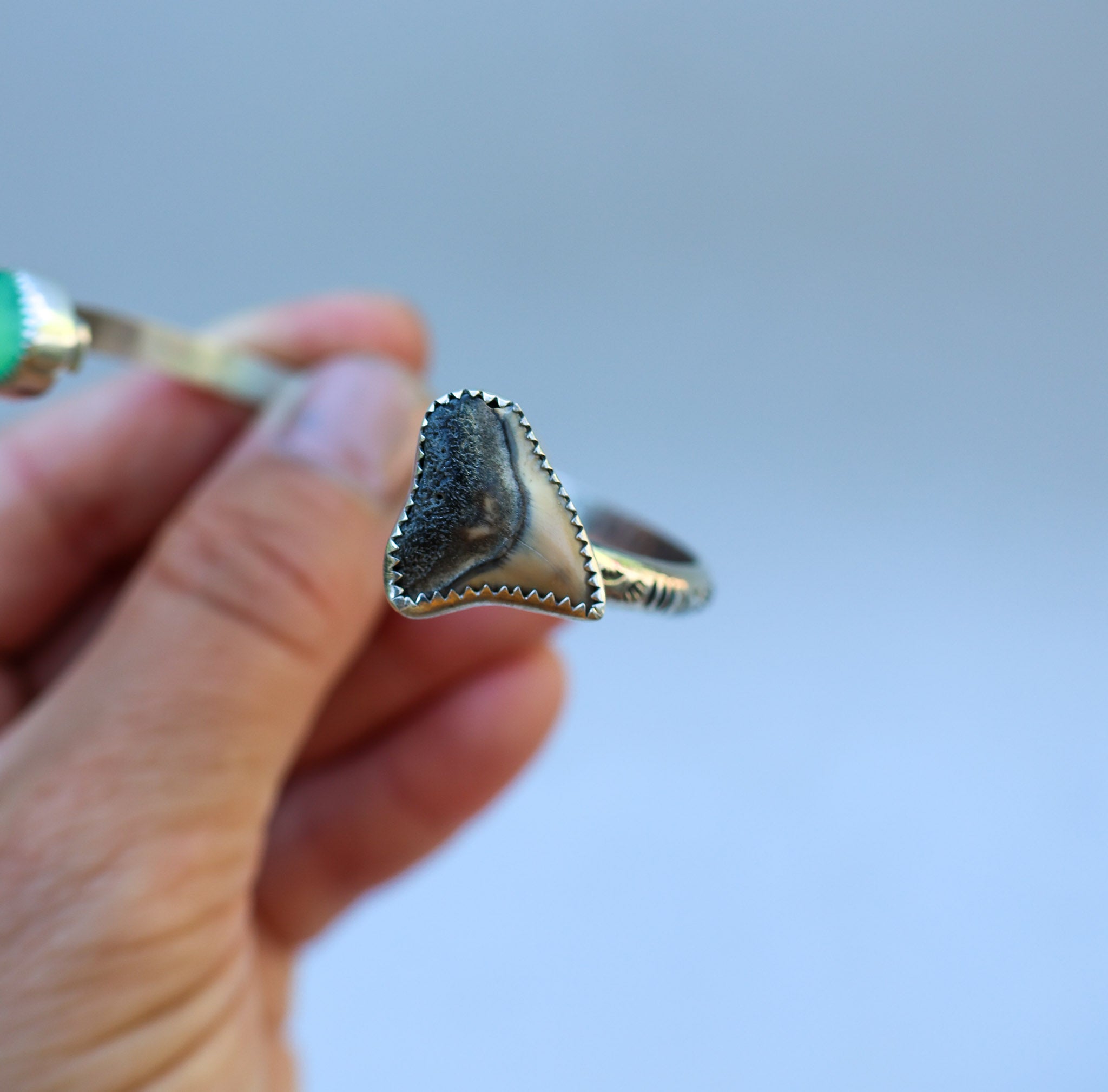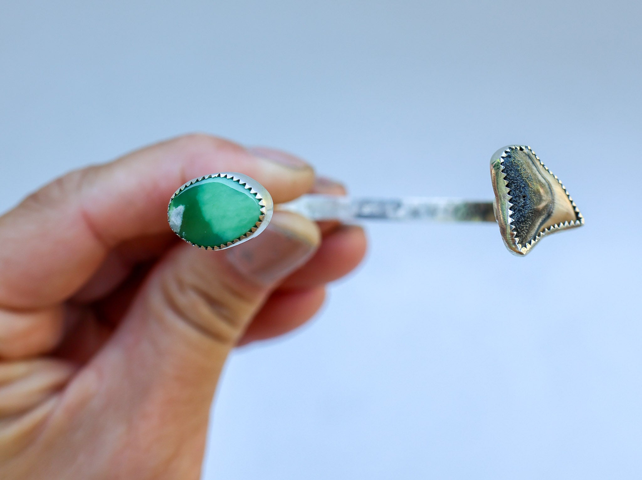 Made with a New Lander Variscite, real shark tooth & Sterling Silver