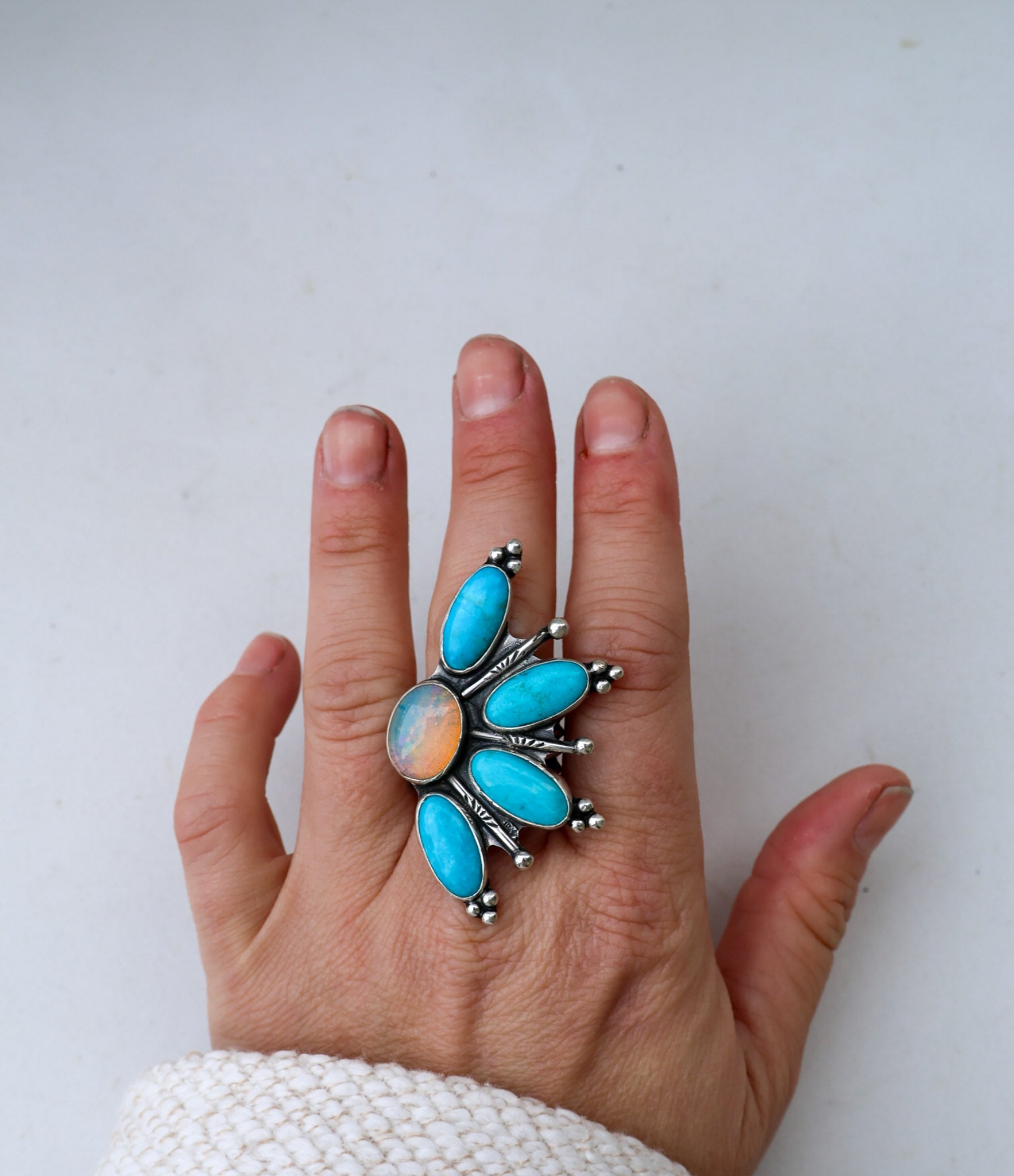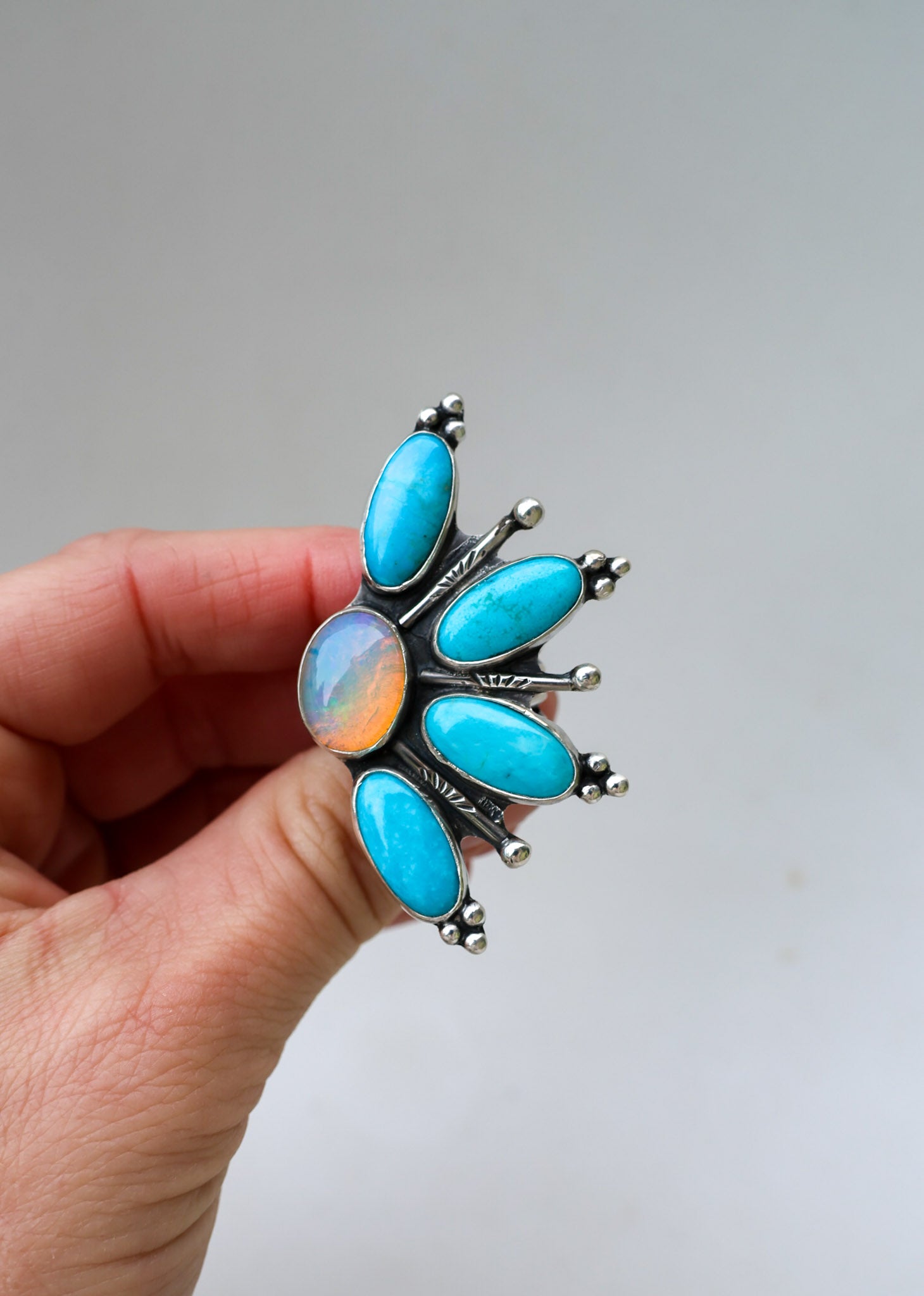 Made with an Australian Opal , Kingman Turquoise & Sterling Silver