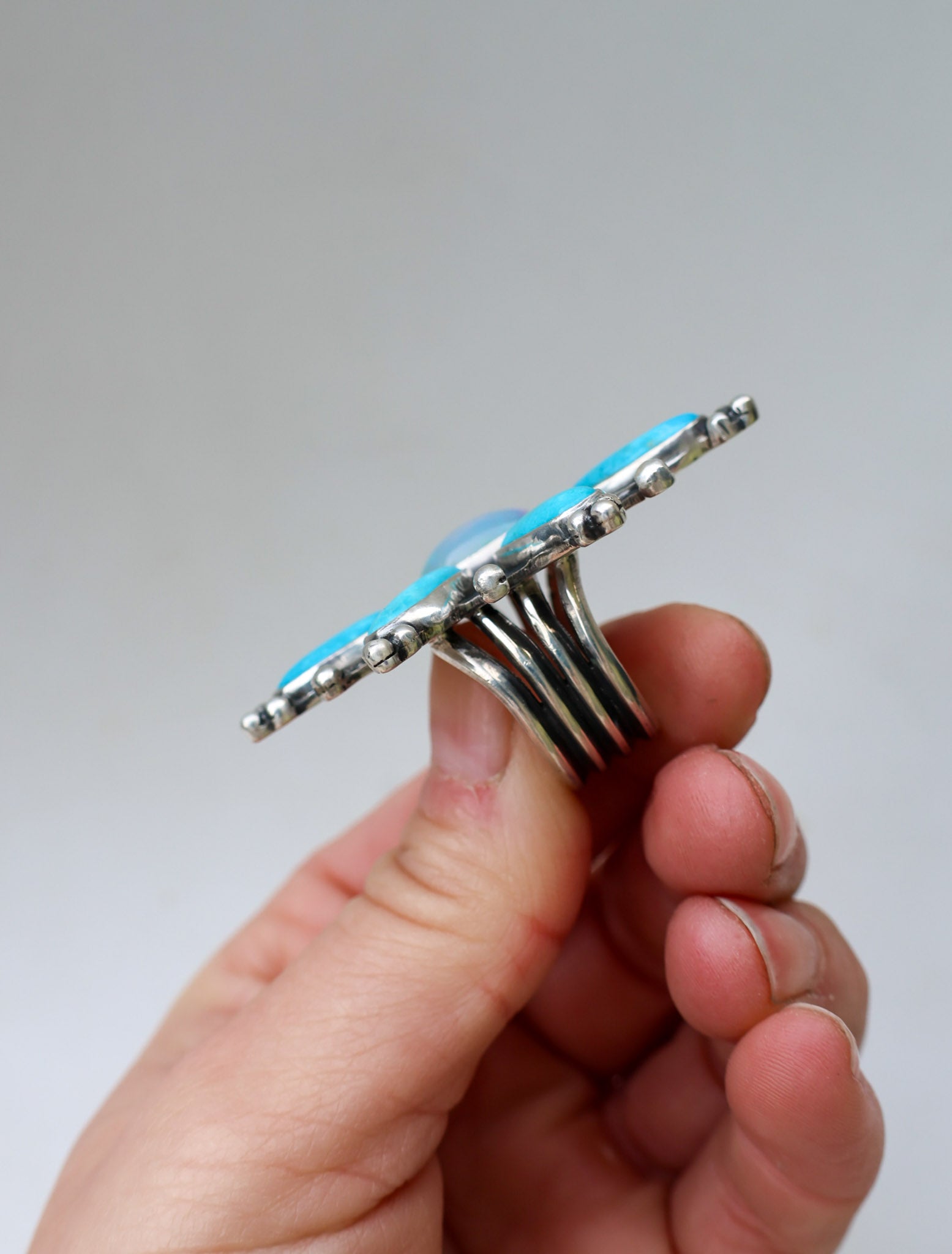 Handmade from sterling silver sheet and wire using traditional silversmithing methods. Products are not perfect, you may see a tool mark, and solder lines here and there, but that is what gives each piece its own unique charm.