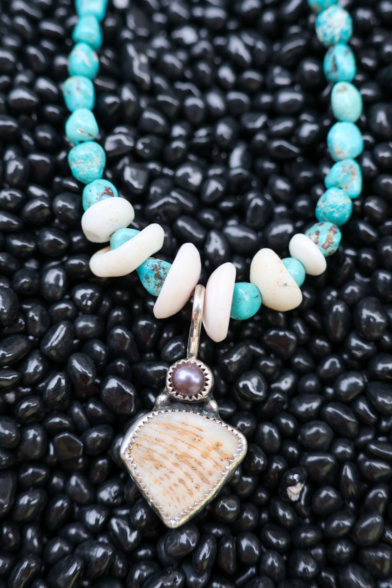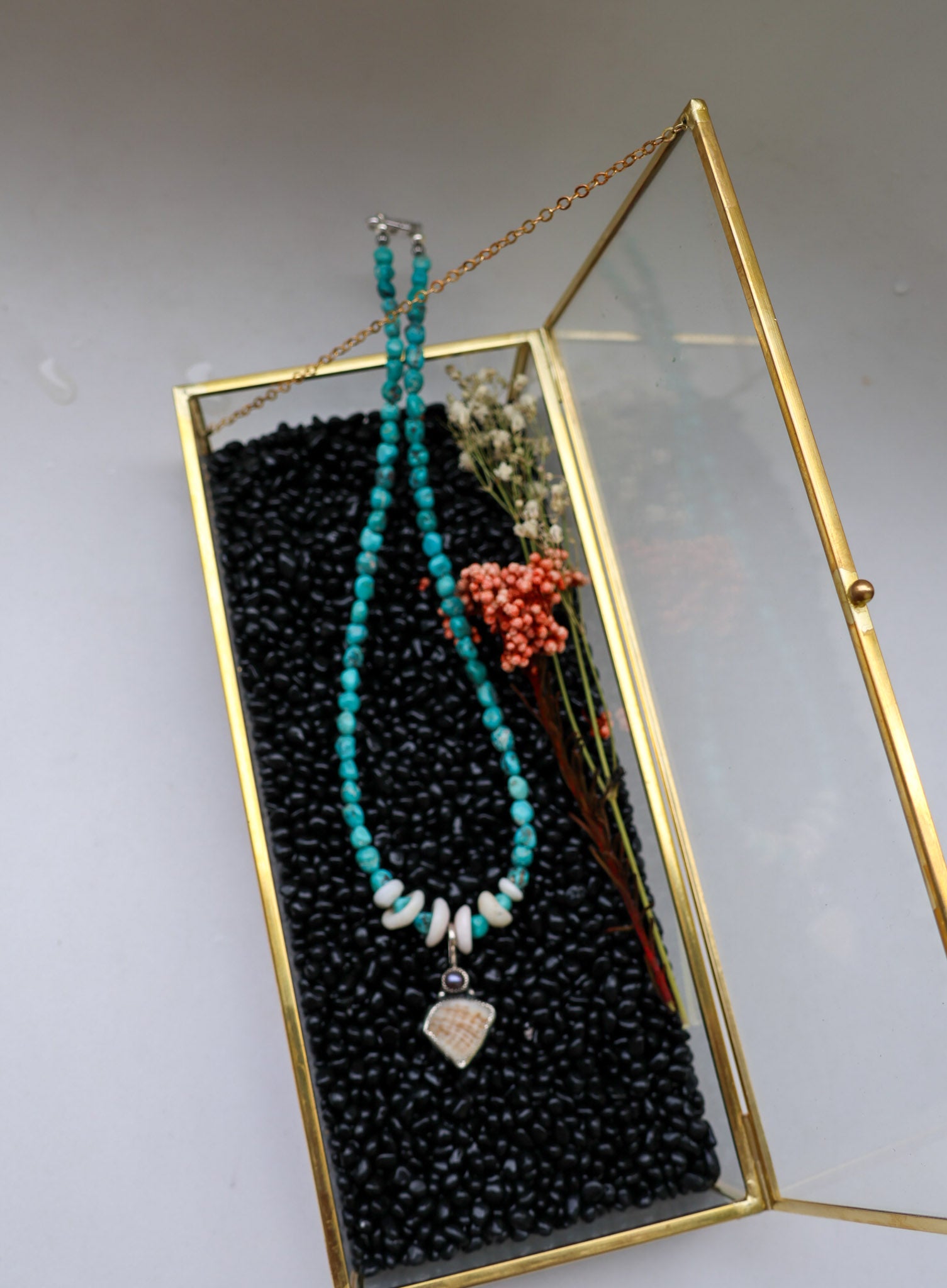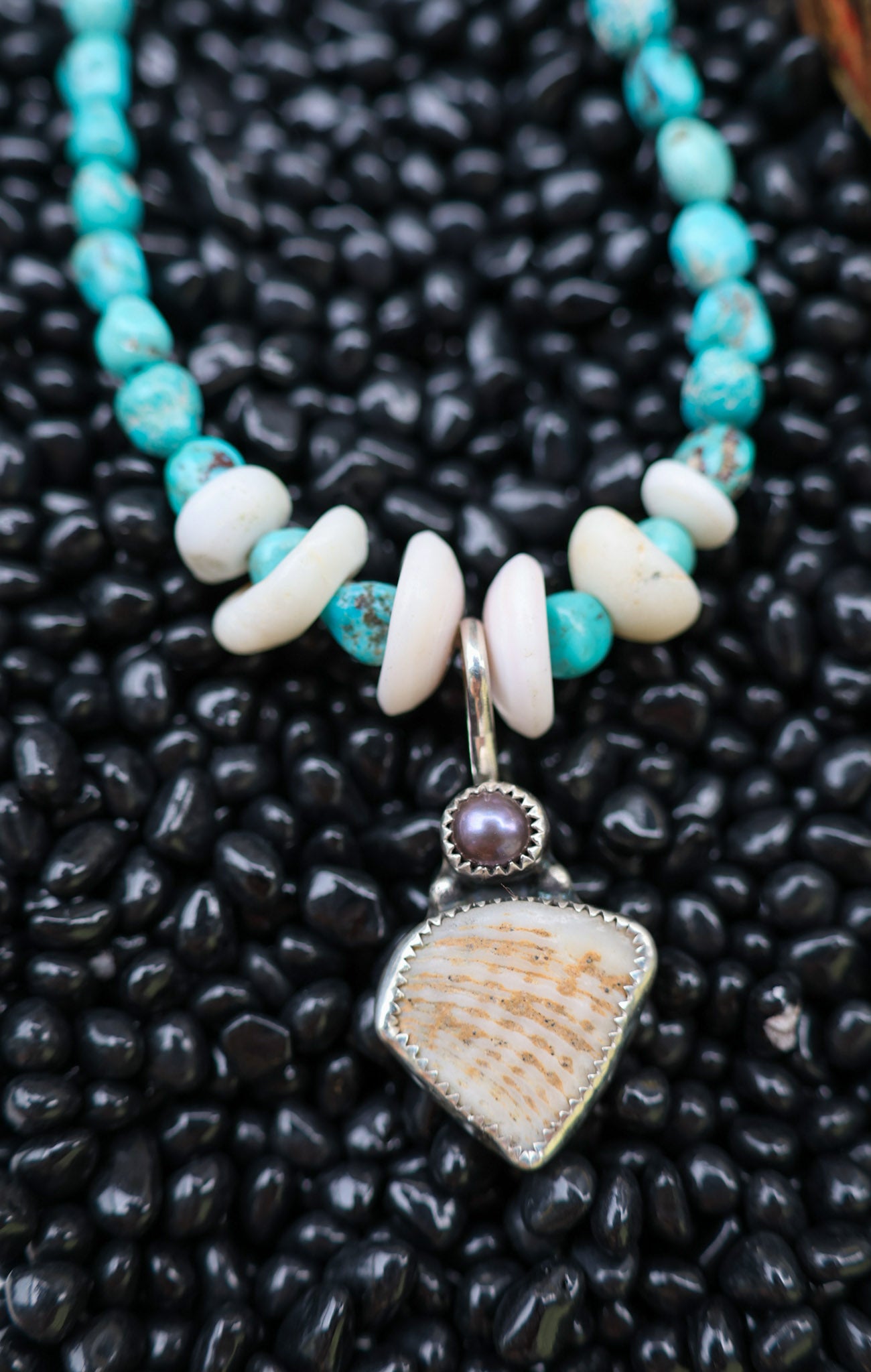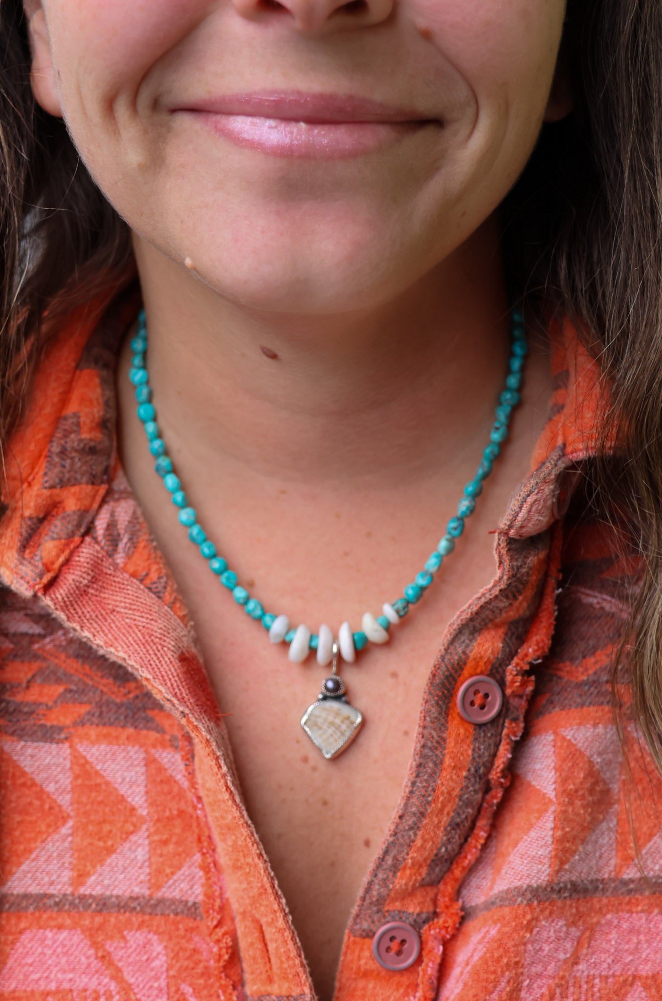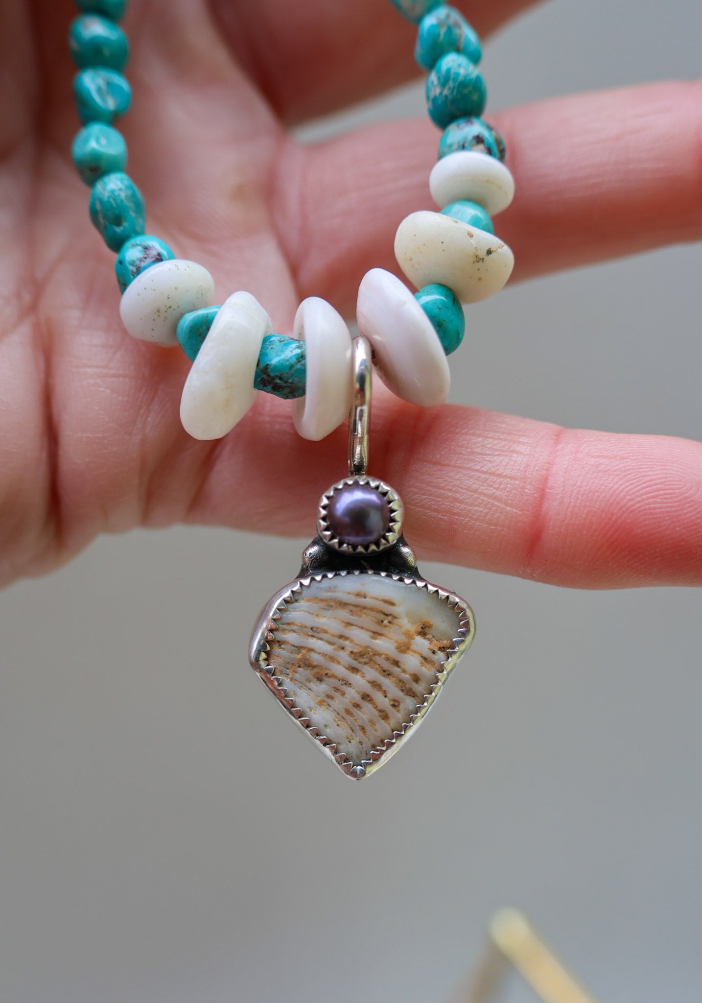 Made with a real shell found in Kauai, Chinese Turquoise Nuggets & Sterling Silver