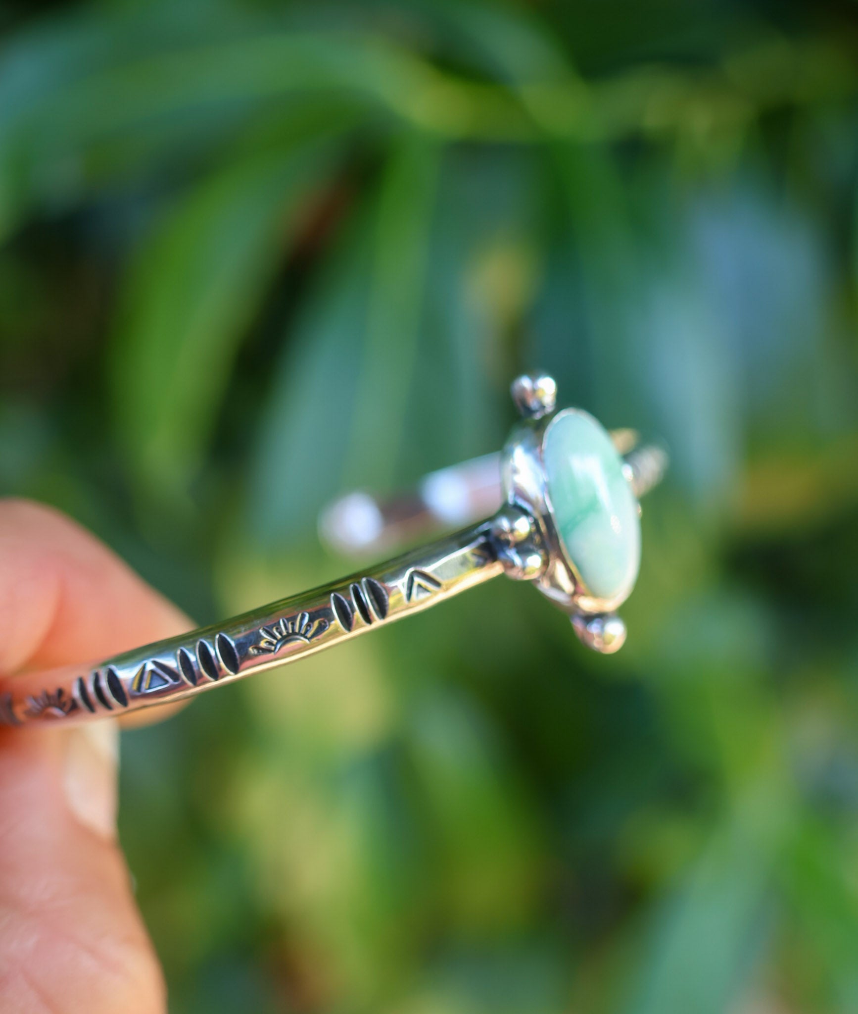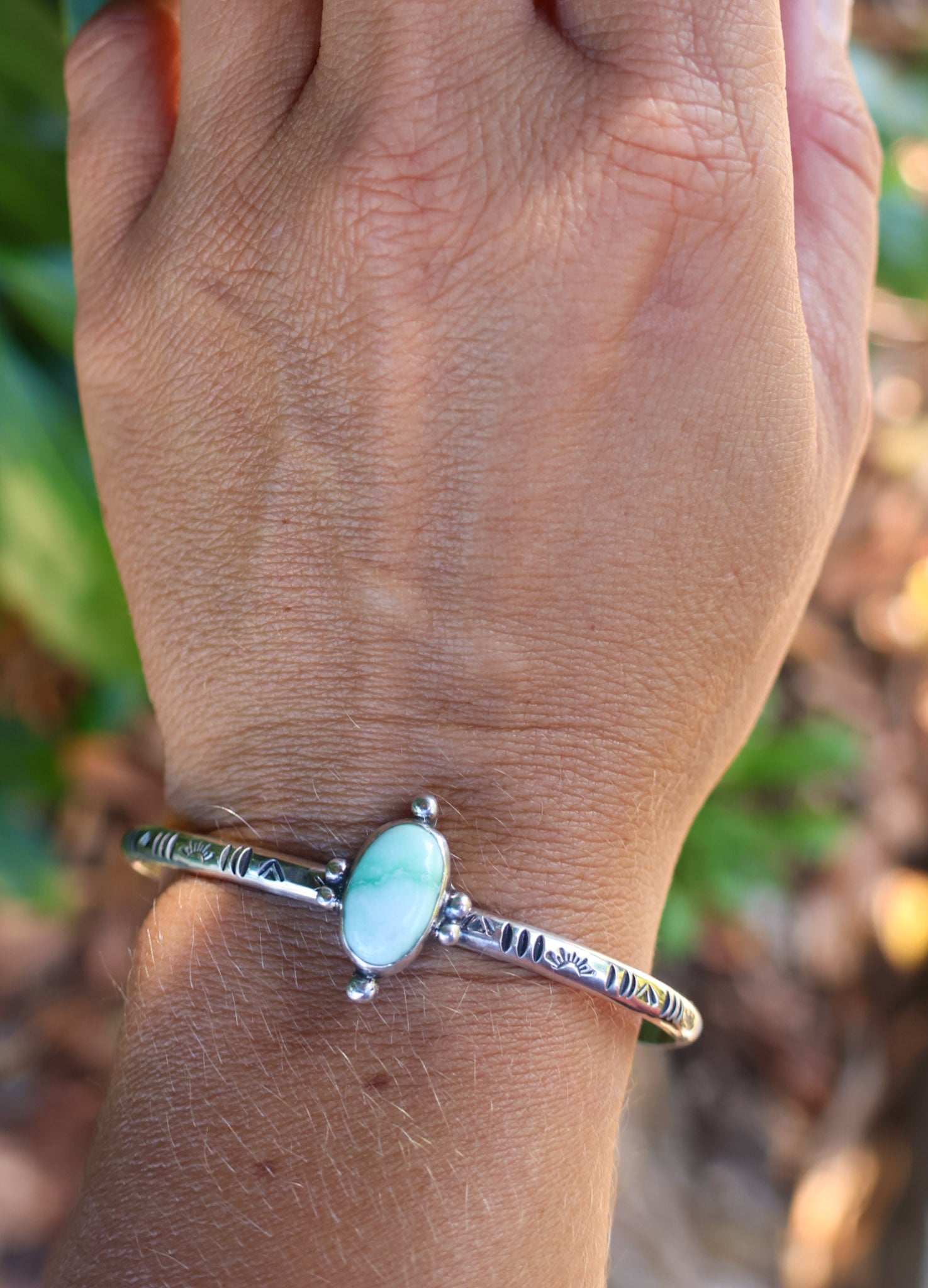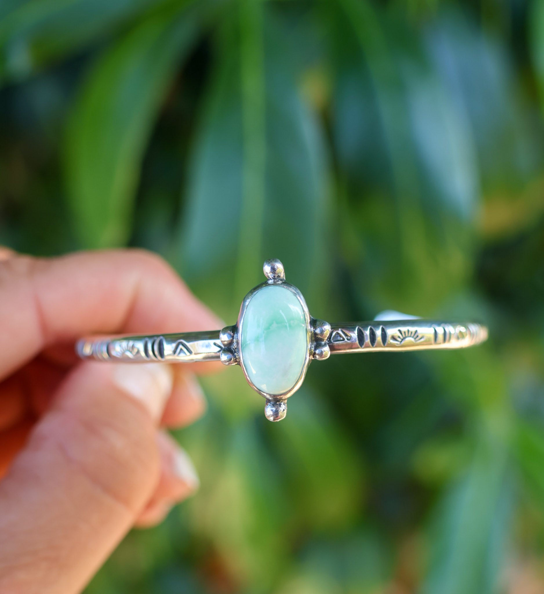 Made from 925 Sterling Silver and a 6 gauge thick sterling silver band. This cuff is a size medium , measuring 5.5” with a 1” gap. This will fit an ‘average’ typical women’s wrist size, and is slightly adjustable for a comfort fit.