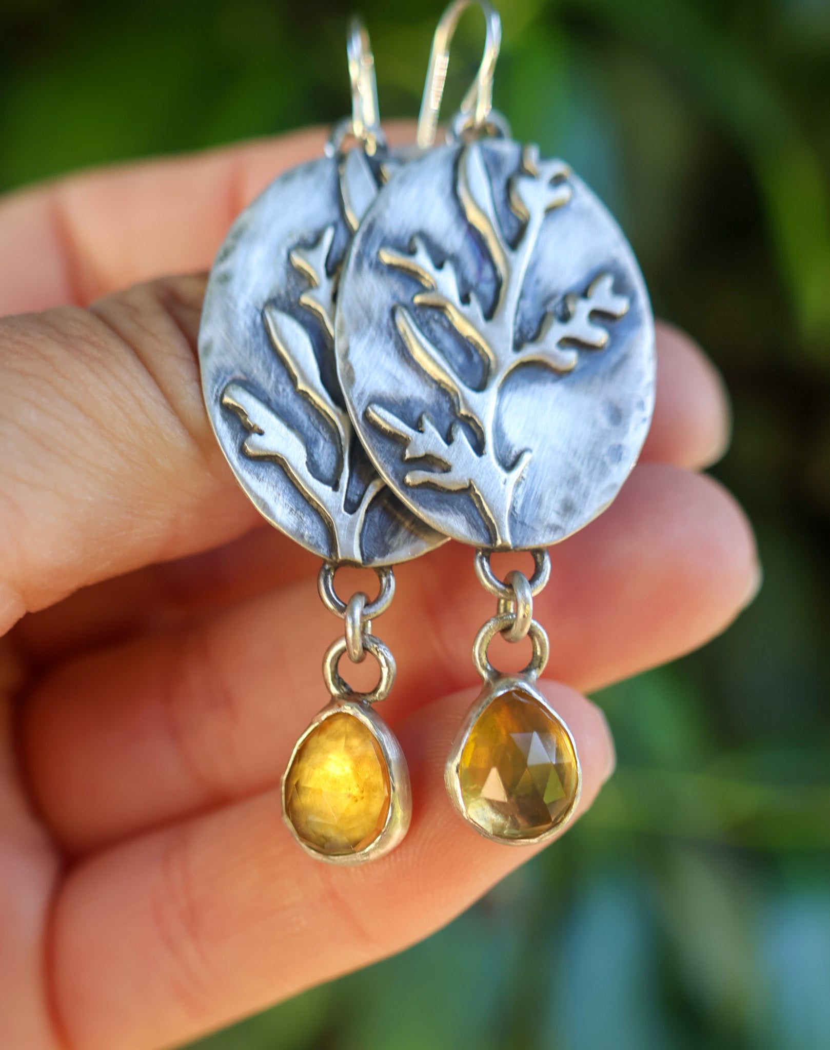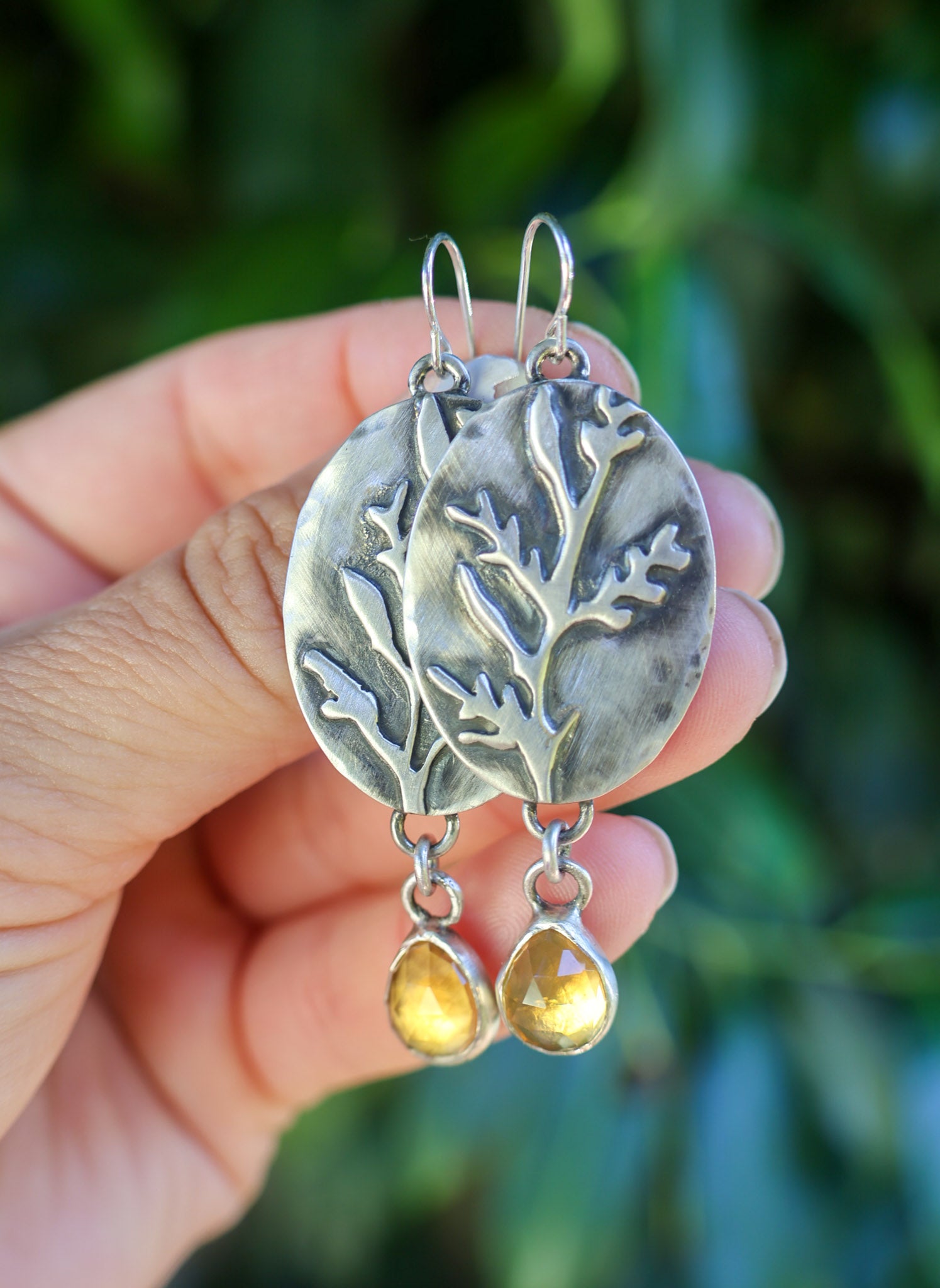 Made with two sister Yellow Citrine Rose Cuts & Sterling Silver