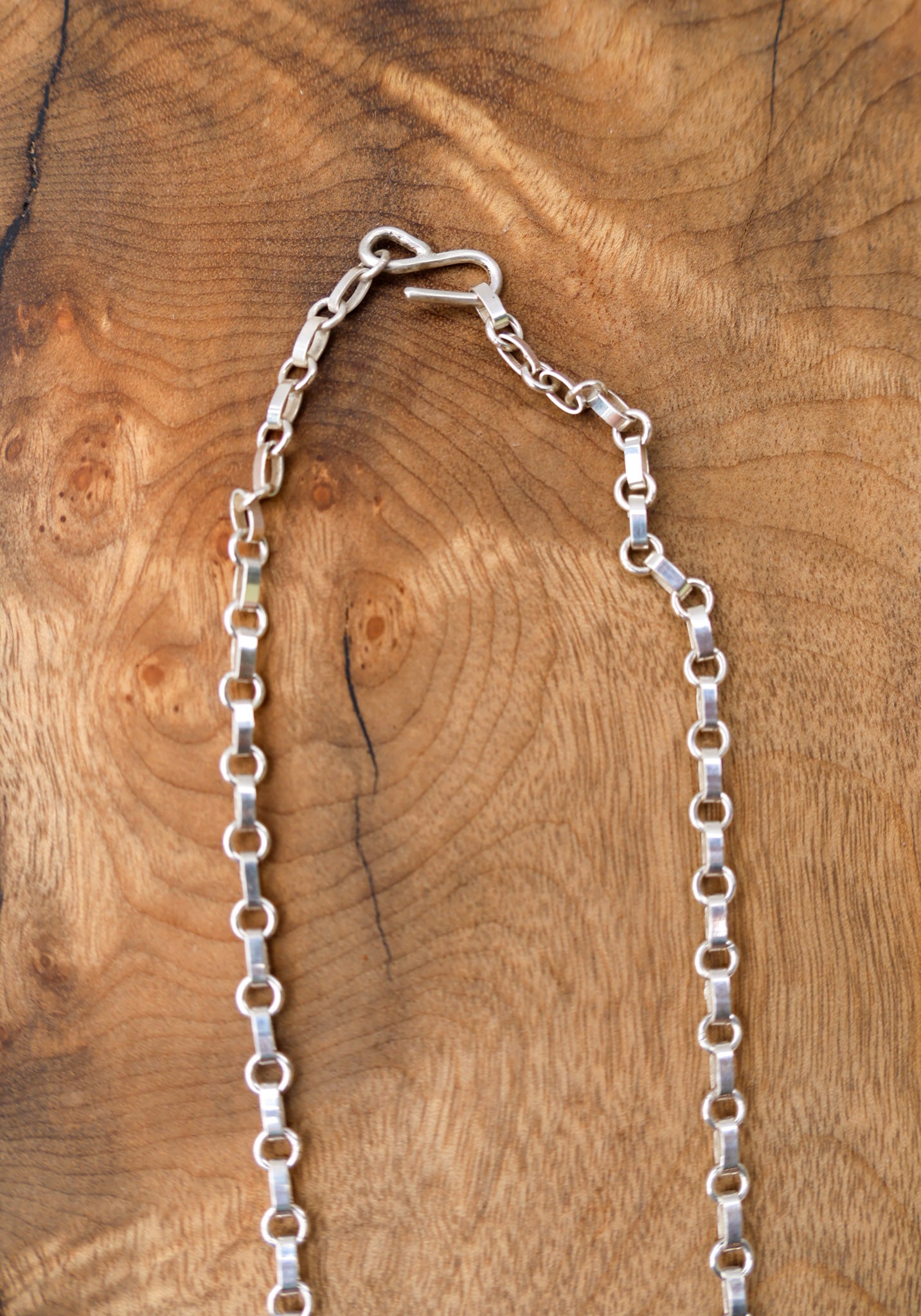Handmade from sterling silver sheet and wire using traditional silversmithing methods. Products are not perfect, you may see a tool mark, and solder lines here and there, but that is what gives each piece its own unique charm.